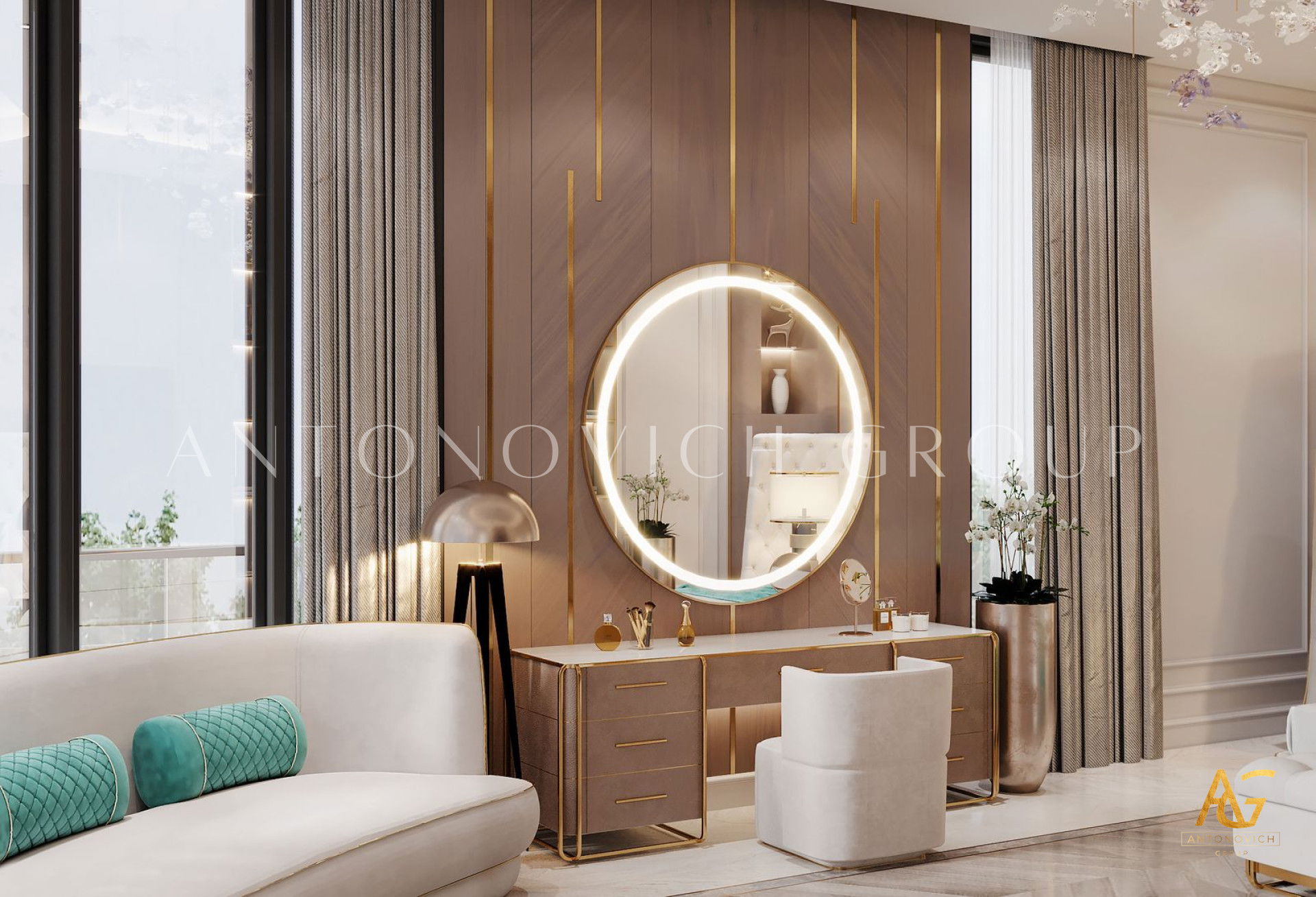 The use of high-quality materials is key to achieving a sophisticated bedroom interior. Antonovich Group sources the finest materials, including premium marble, rich wood, plush textiles, and bespoke furniture, to create a space that exudes exclusivity. Intricate wall paneling, elegant ceiling designs, and soft ambient lighting further enhance the luxurious feel of the bedroom, making it a true retreat for relaxation. Efficient space planning is essential in luxury bedroom design. Antonovich Group carefully optimizes layouts to ensure a spacious and airy feel, integrating smart storage solutions and ergonomic furniture arrangements. Customized walk-in closets, built-in wardrobes, and multifunctional furniture pieces enhance the practicality of the space while maintaining a refined aesthetic.