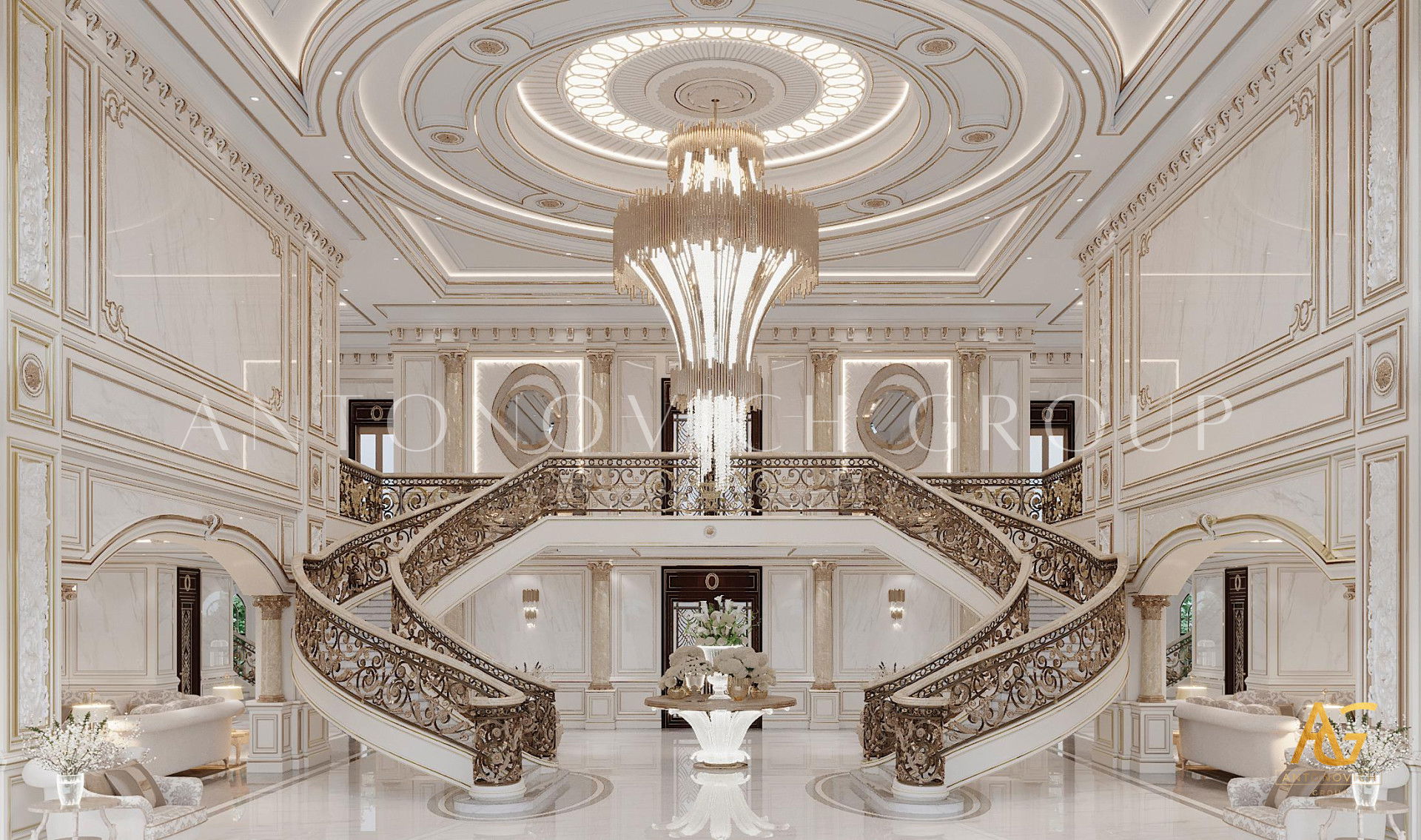 The pleasant palette of cream colors very profitable emphasizes the softness and ease of the interior. A significant role in the creation of artistic expression image plays lighting.Soft lines of illumination distinguish each rung of the ladder, furniture and, of course ceilings. Decisions in the ceiling decor is closely associated with the ladder configuration. Multilevel niches with rounded outlines have become the completed basis for a harmonious ladder portal. The central axis of the hall interior defines a niche with light and elegant chandelier. To make these items more bright and saturated, the interior designers Nairobi offered to design the wall decor with cream-colored decorative plaster with a matte effect. beautiful house plans from Luxury Antonovich Design is always unique solutions, which are devoted to each individual family.