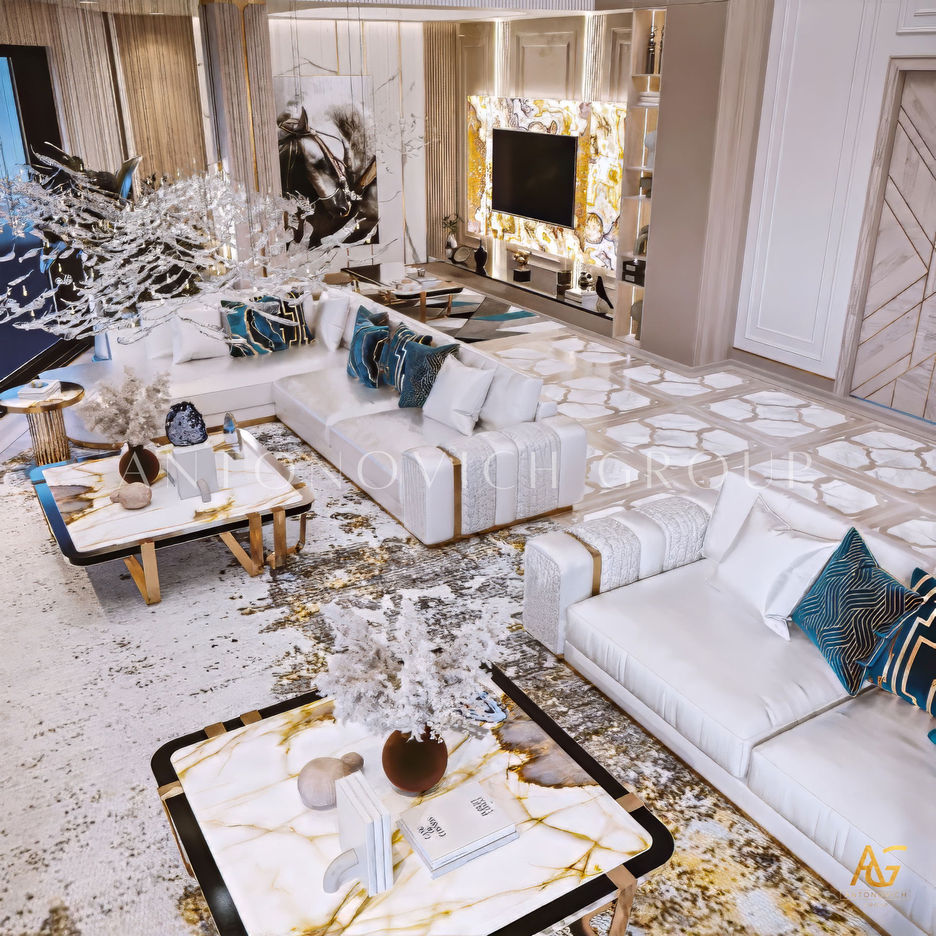 The mood of the luxury living room interior design has a great sight with its gold and maroon sensations. The color scheme complements each other nicely. Every aspect of the space has been intended to provide you with the most enjoyable experience possible. Its like staying in a five-star hotel. Luxury interior design is an area of competence for Luxury Antonovich Design. This is the ideal interior design for you and your way of life. The luxury living room interior design, together with the luxury lighting, complement one other nicely. You will enjoy a luxurious room like this!