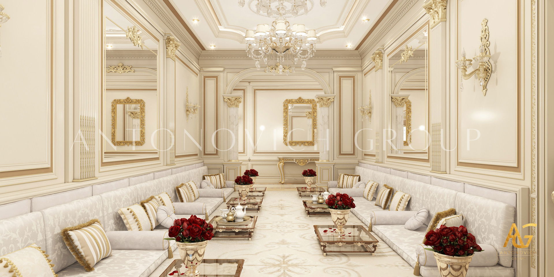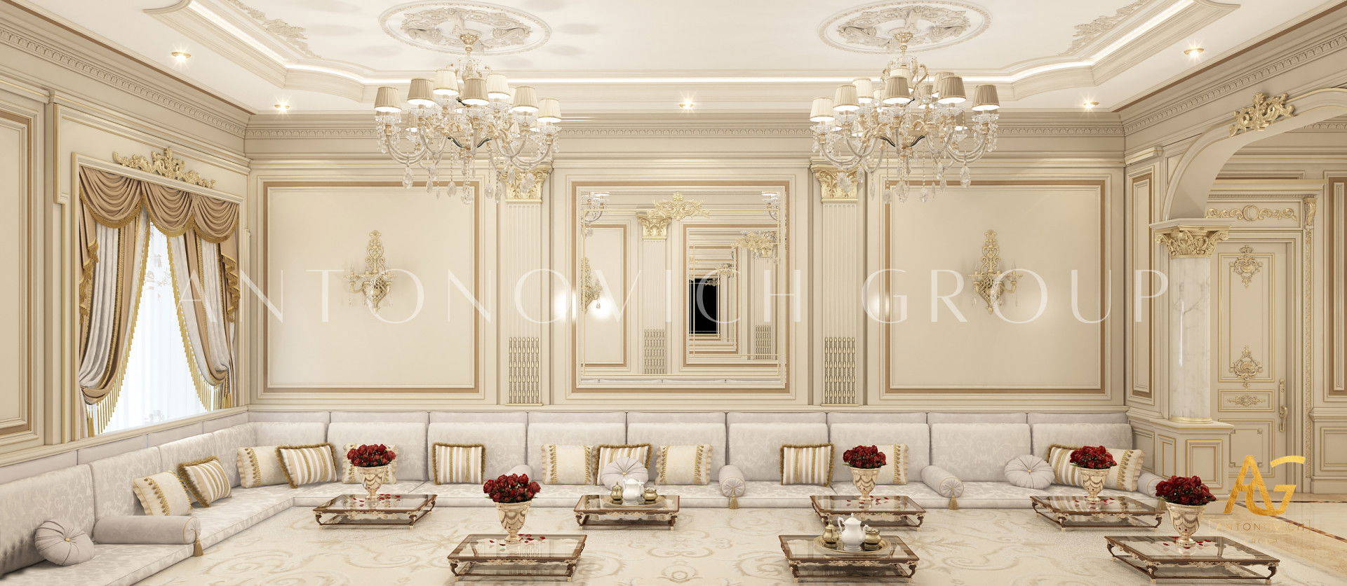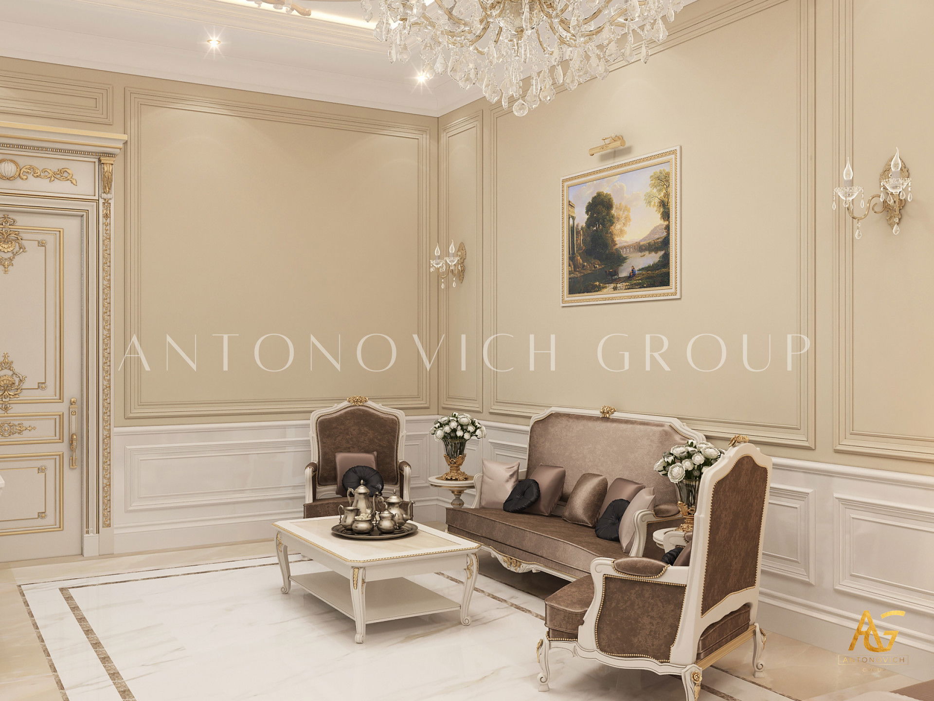 Antonovich Group used the most strategic approach of fit-out solutions and refurbishment to match the greatest design requirements, completing this magnificent property in Abu Dhabi. The gorgeous house design reflects the richness of the lifestyle. The contemporary interior of this property is filled with high-end furnishings and décor. A magnificent and exquisite villa interior design in Abu Dhabi allows you to take your daily life to new levels of refinement, enjoyment, comfort, and inspiration.