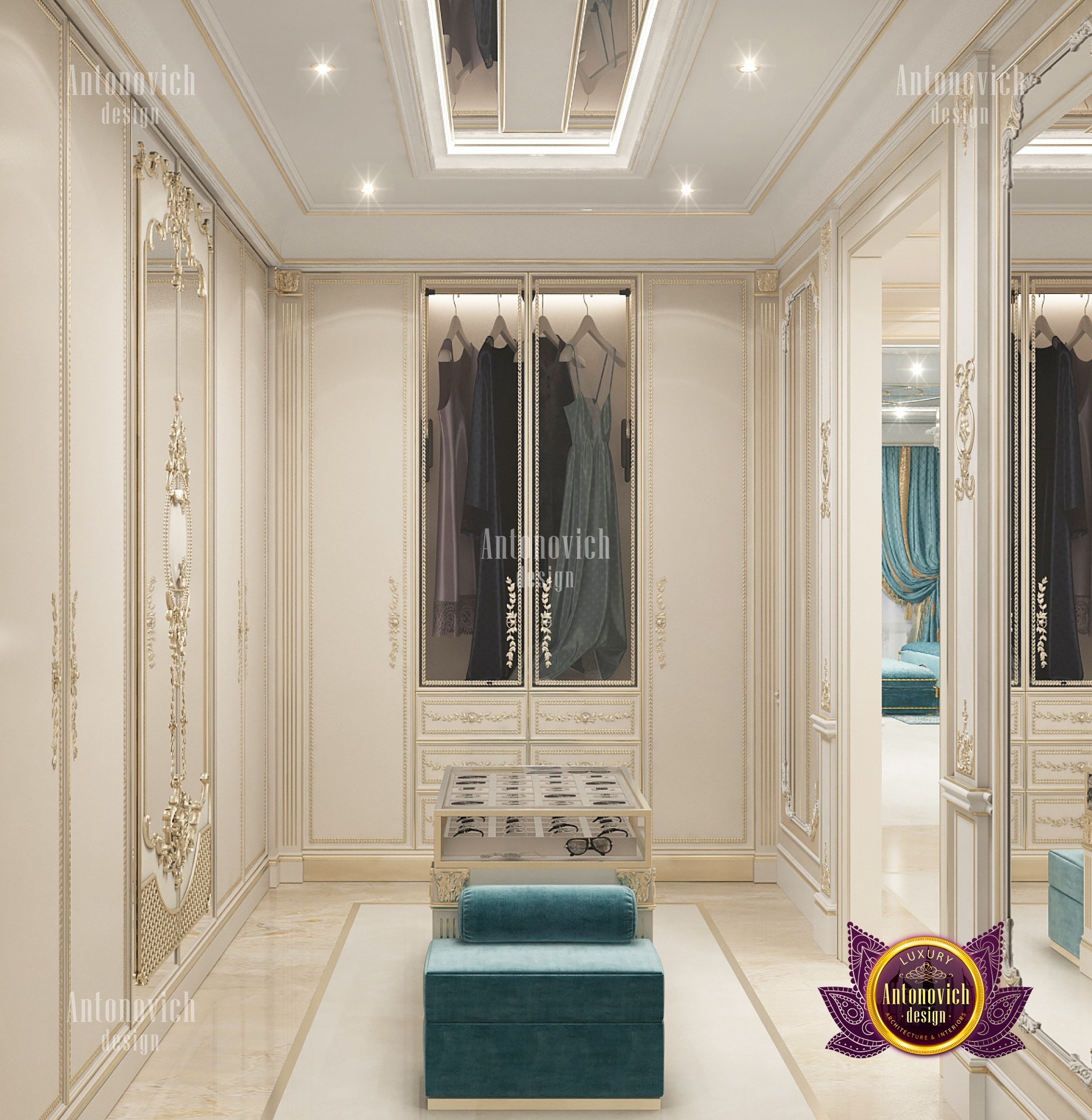 One of the most stunning dressing rooms you will ever see is the luxury interior design. Its finished off with beautiful details. The luxury dressing room interior design has an elegant and contemporary ambience. With this interior design idea by Luxury Antonovich Design, youll feel like youre living in an immaculate home. From floor-to-ceiling decors, premium furniture designs, spacious areas, and more, the interior design offers a rich feel. In addition to the large cabinets, there is a lovely rack set that can fit your entire closet.