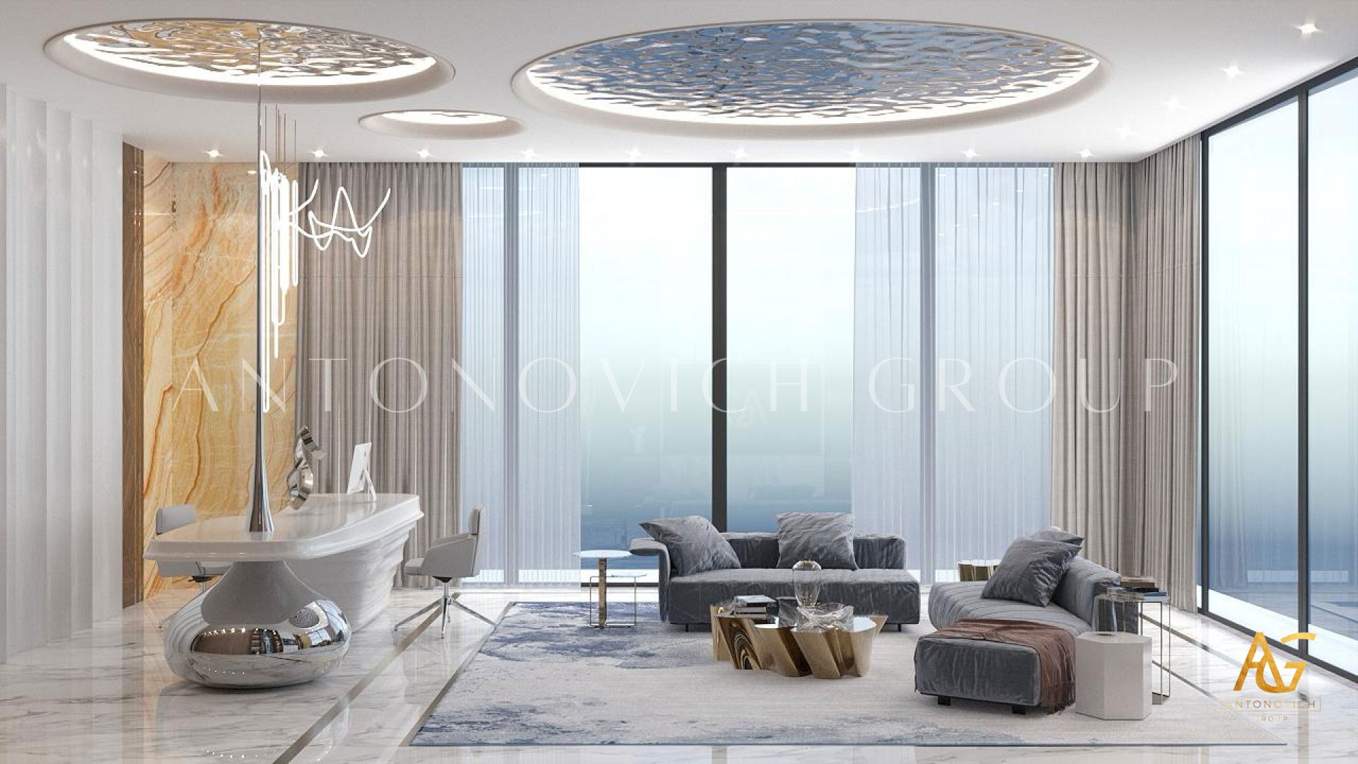 By collaborating closely with clients, Antonovich Group ensures that the final design not only meets aesthetic expectations but also addresses the practical requirements of a modern office. The result is a luxurious workspace that goes beyond conventional office design, setting a new standard for opulence, innovation, and functionality.
