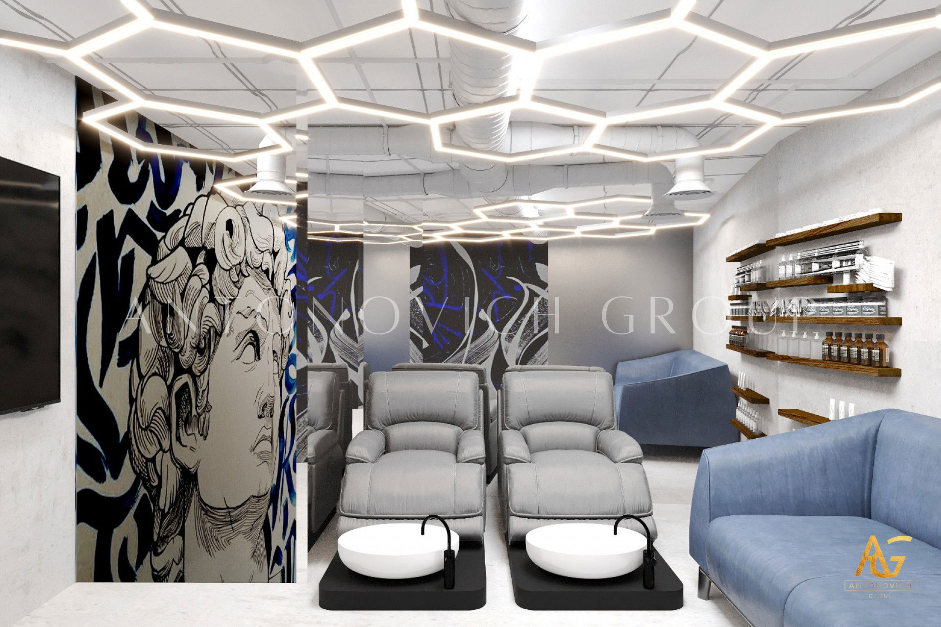 Antonovich Group understands that a barbershop or hair salon is more than just a place of business; it’s a representation of the brand. With this project, they’ve succeeded in creating a space that not only serves its functional purpose but also enhances the brand identity of the barbershop. By incorporating high-end materials, luxurious fixtures, and a meticulously planned layout, Antonovich Group has helped craft a space that clients will associate with quality, professionalism, and exclusivity.