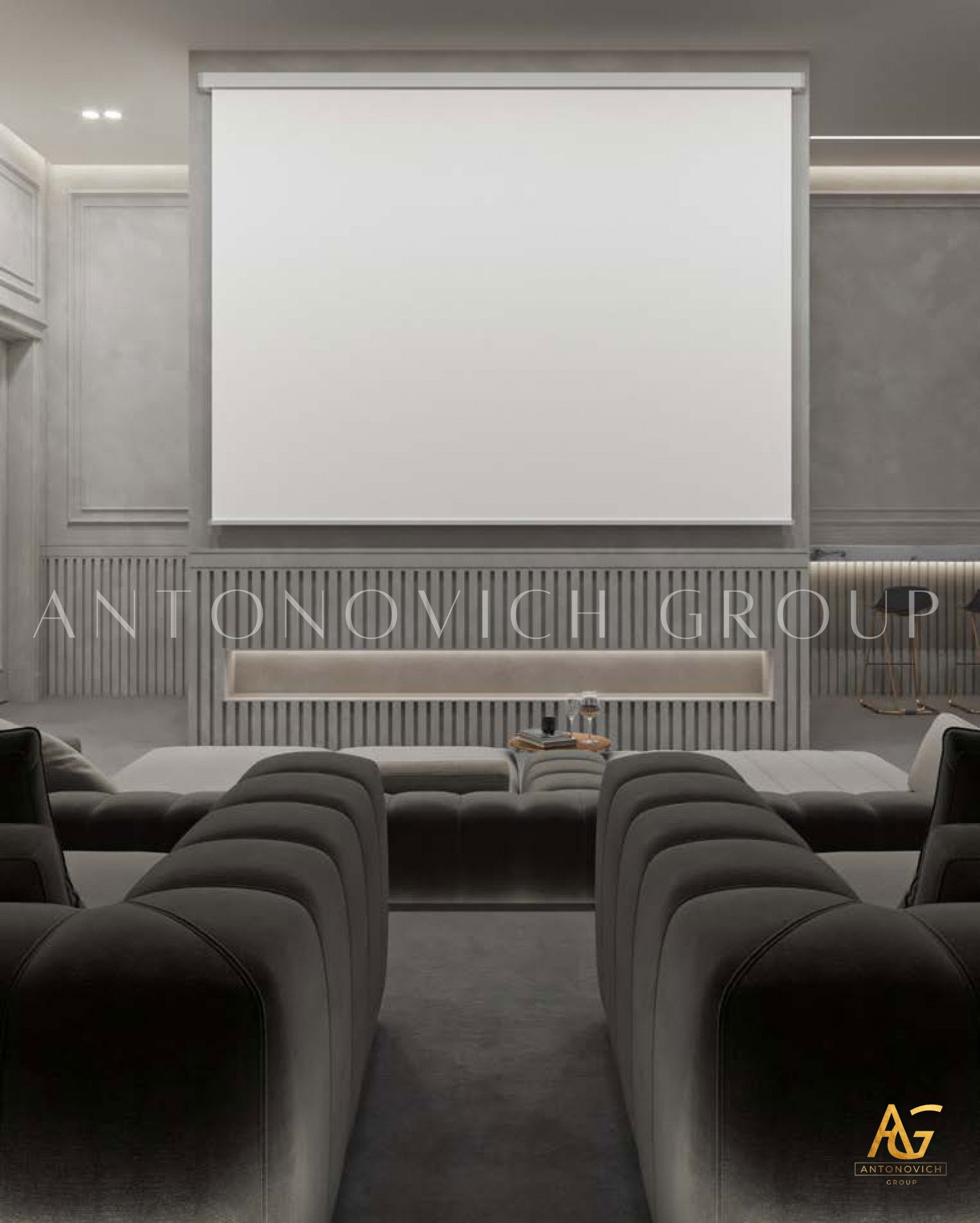 Minimalism is an art form that thrives on the "less is more" philosophy. It's about distilling design to its purest form, where every element serves a purpose and carries significance. Antonovich Group understands the profound impact of this concept and seamlessly applies it to home cinema interiors.