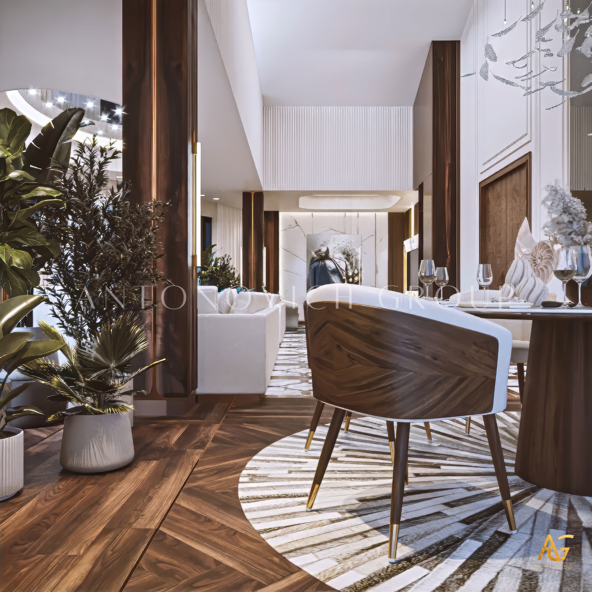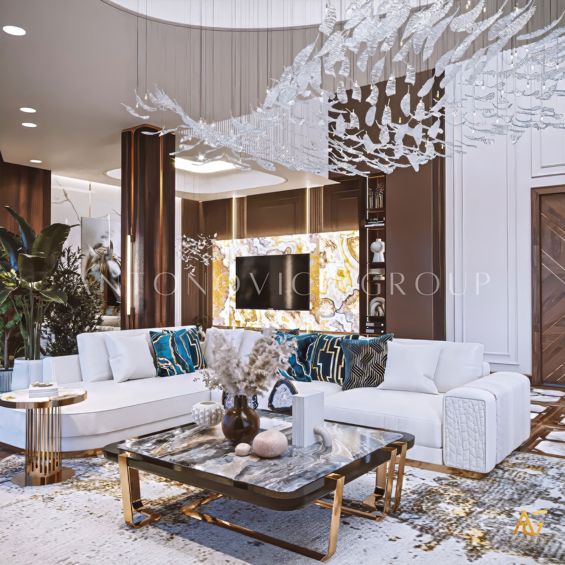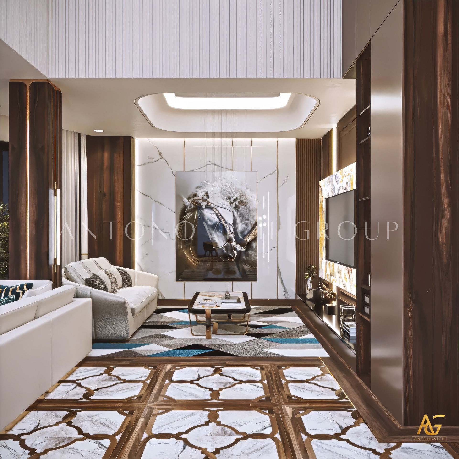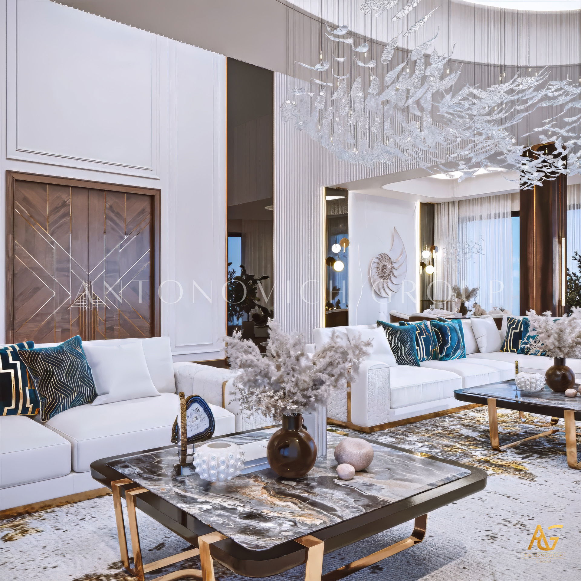 Antonovich Group is not only a design firm but also a full-service fit-out company, offering complete solutions from concept to completion. Its fit-out services for living rooms include flooring, wall finishes, ceiling works, lighting systems, and decorative elements — all executed with precision by an in-house team of professionals.