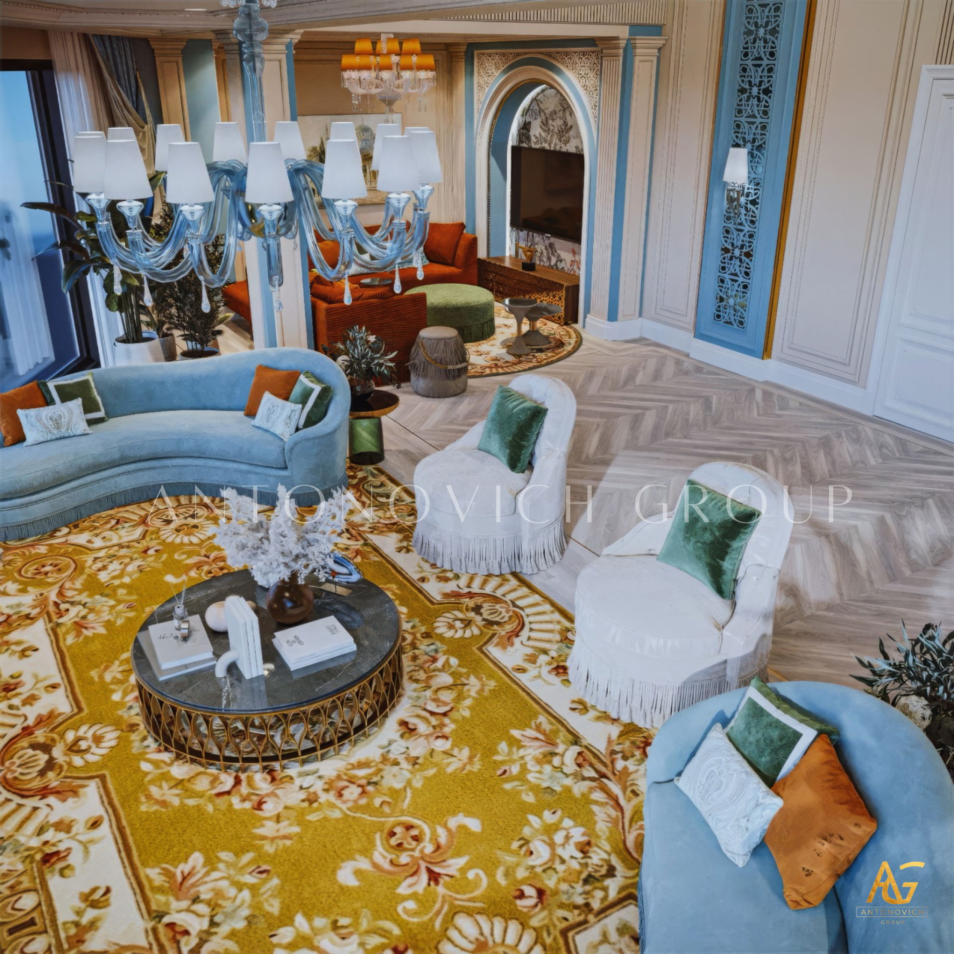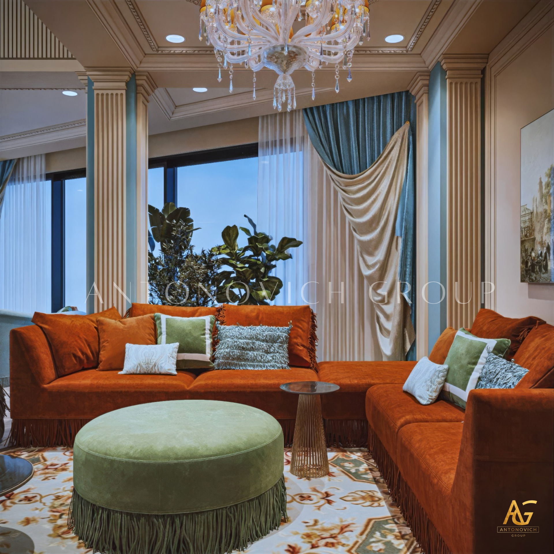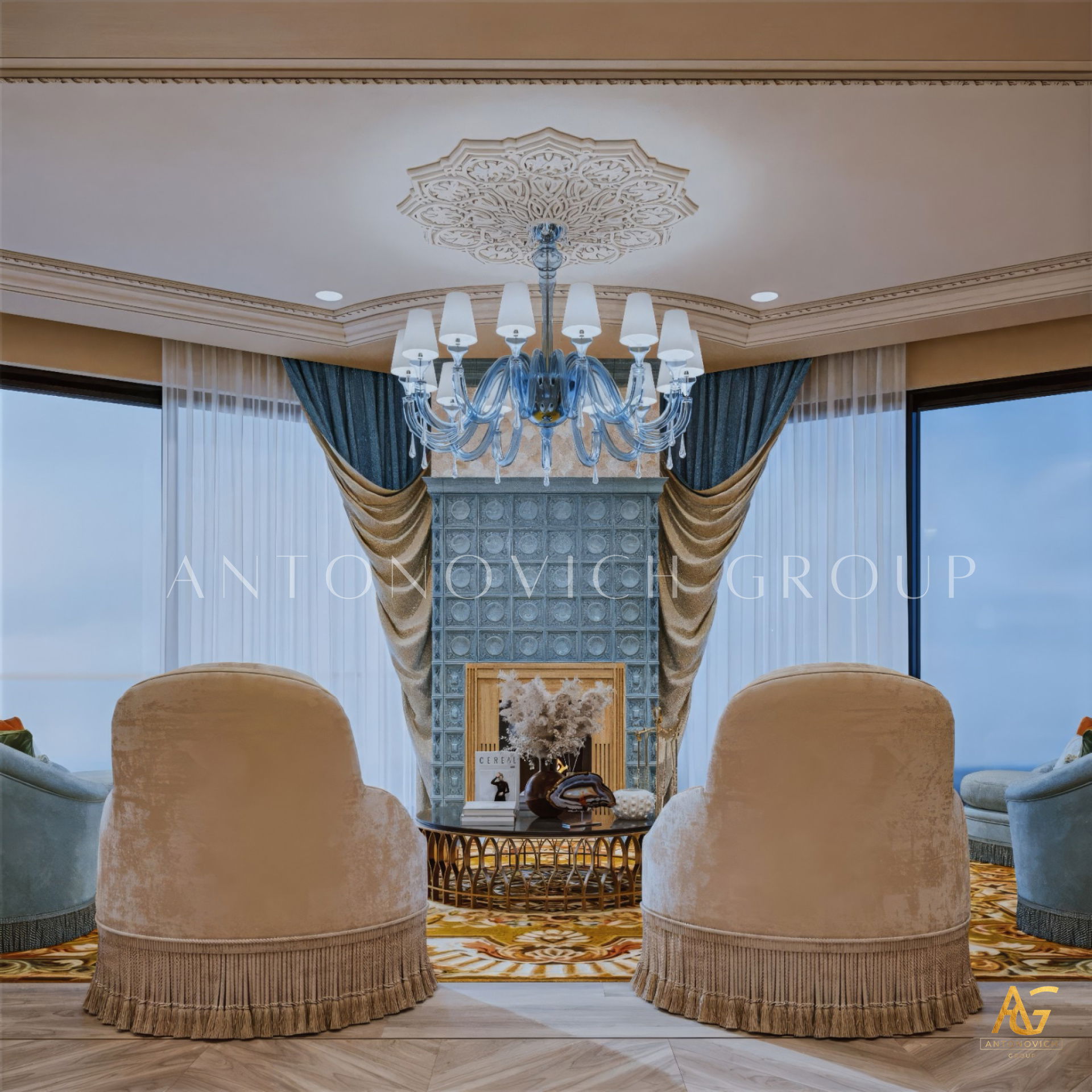 Antonovich Group begins each project with a personalized design concept, aligning the living room interior with the architectural character of the home and the client’s lifestyle. Whether designing a luxury villa living room or a contemporary apartment space, the team focuses on spatial clarity, proportion, and refined detailing.