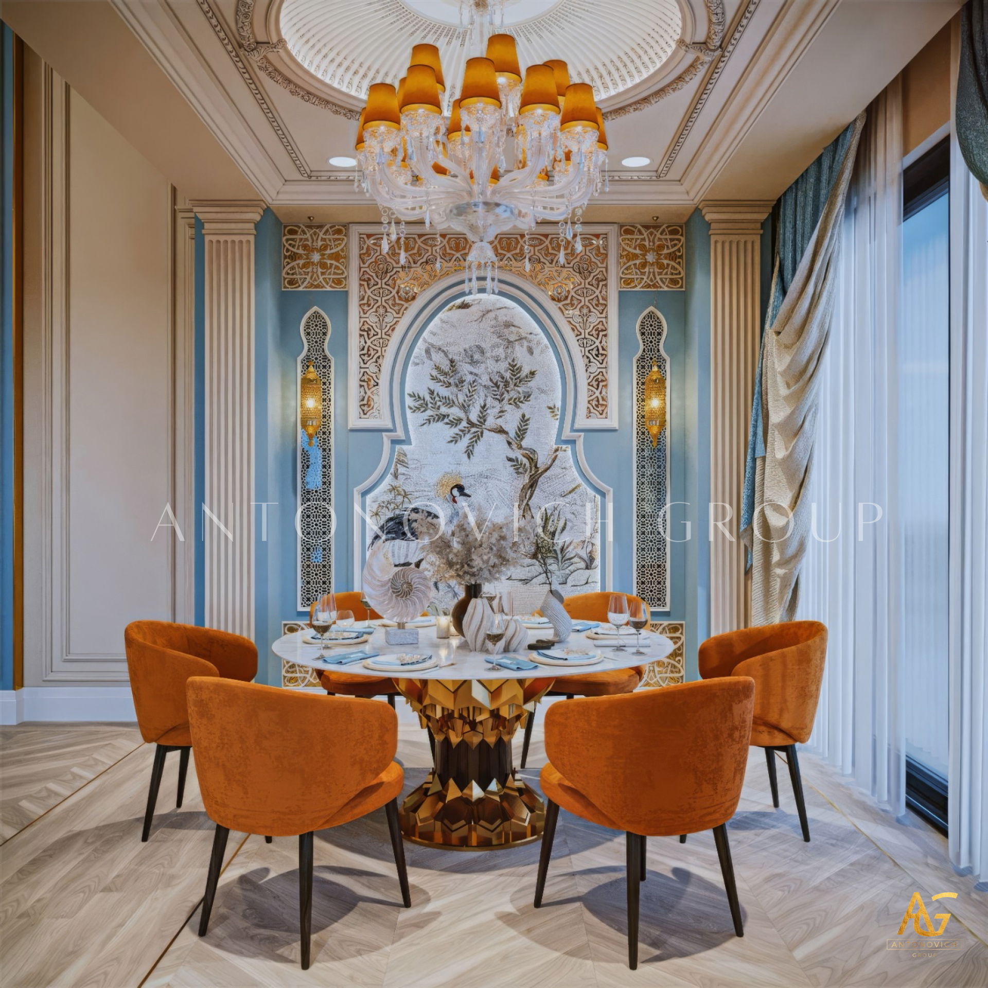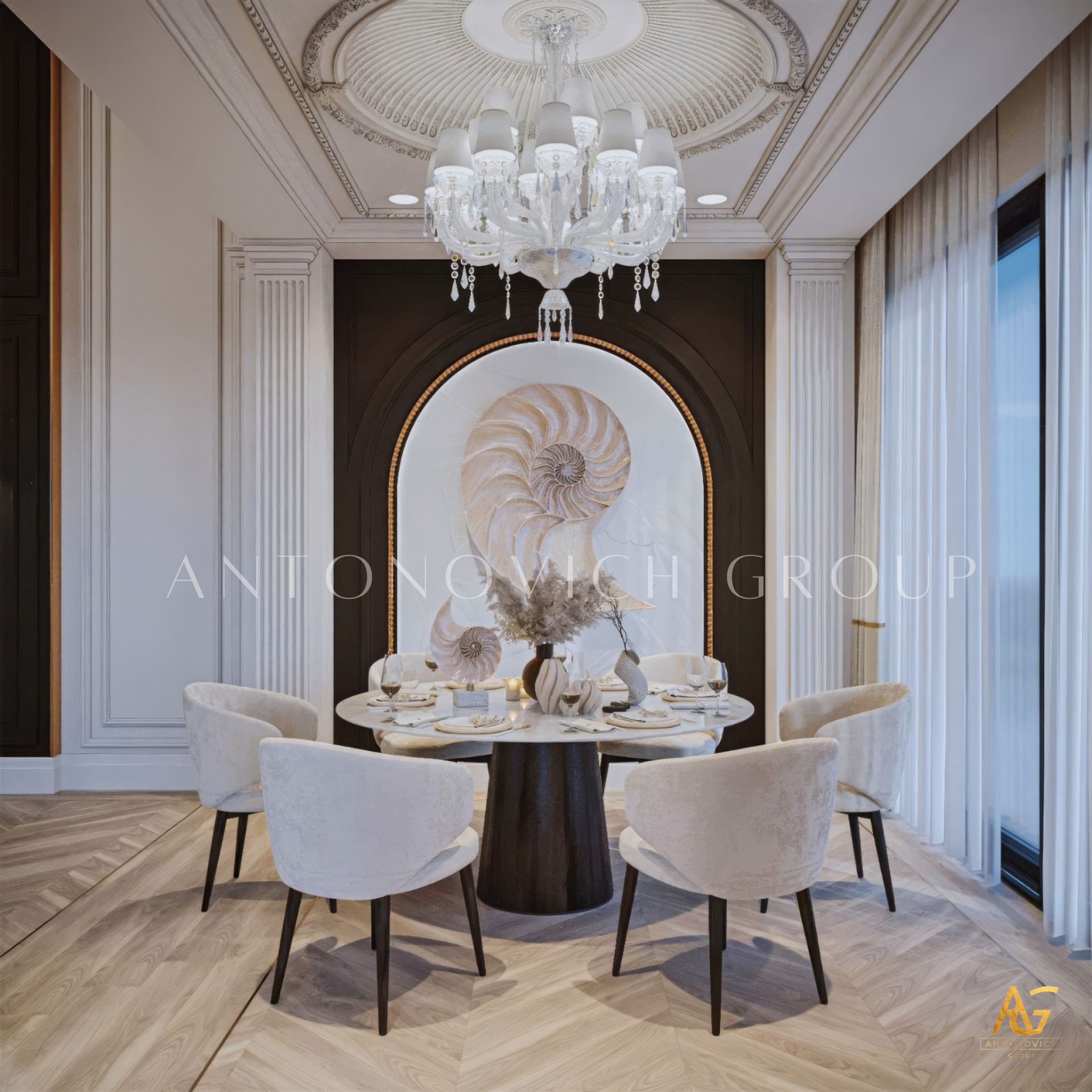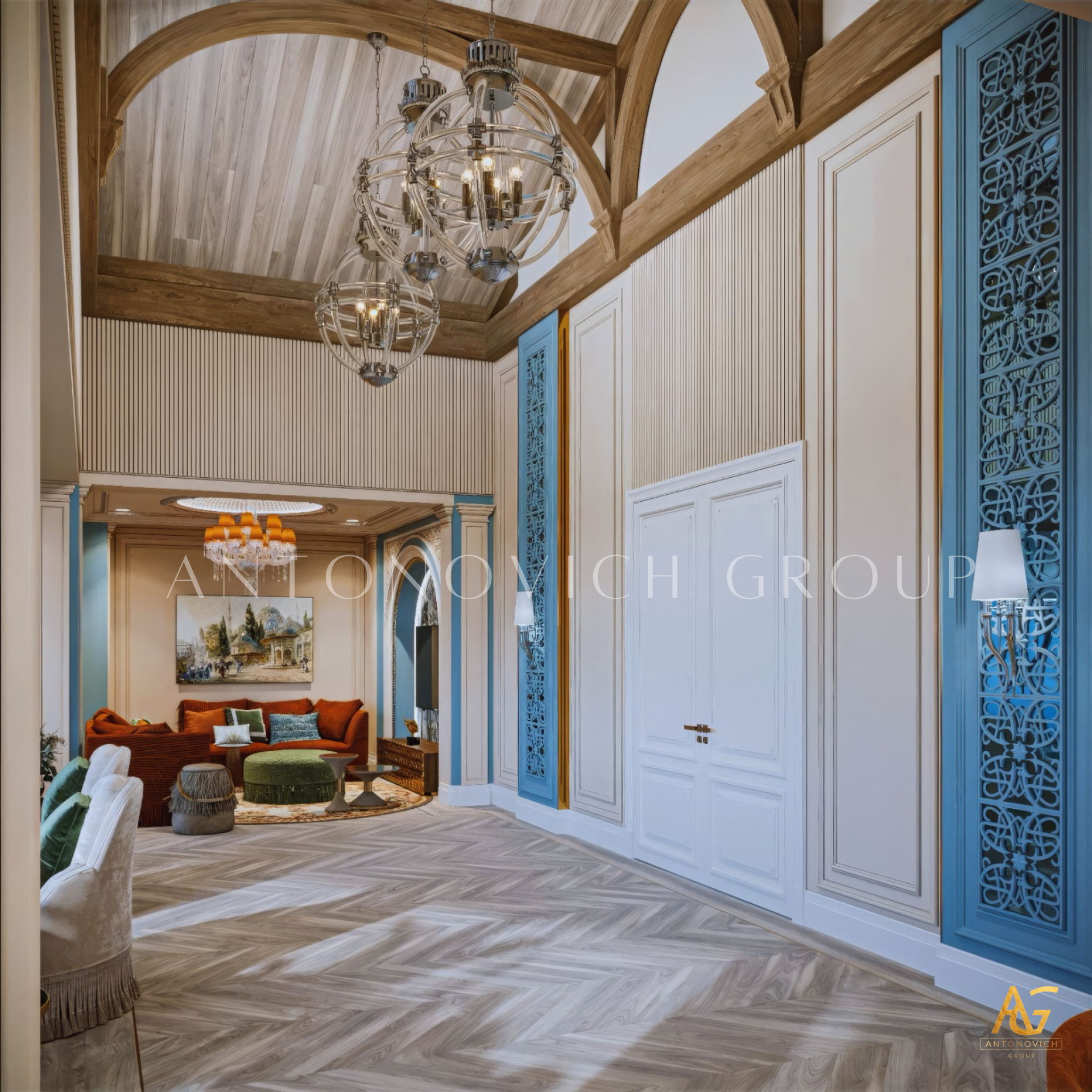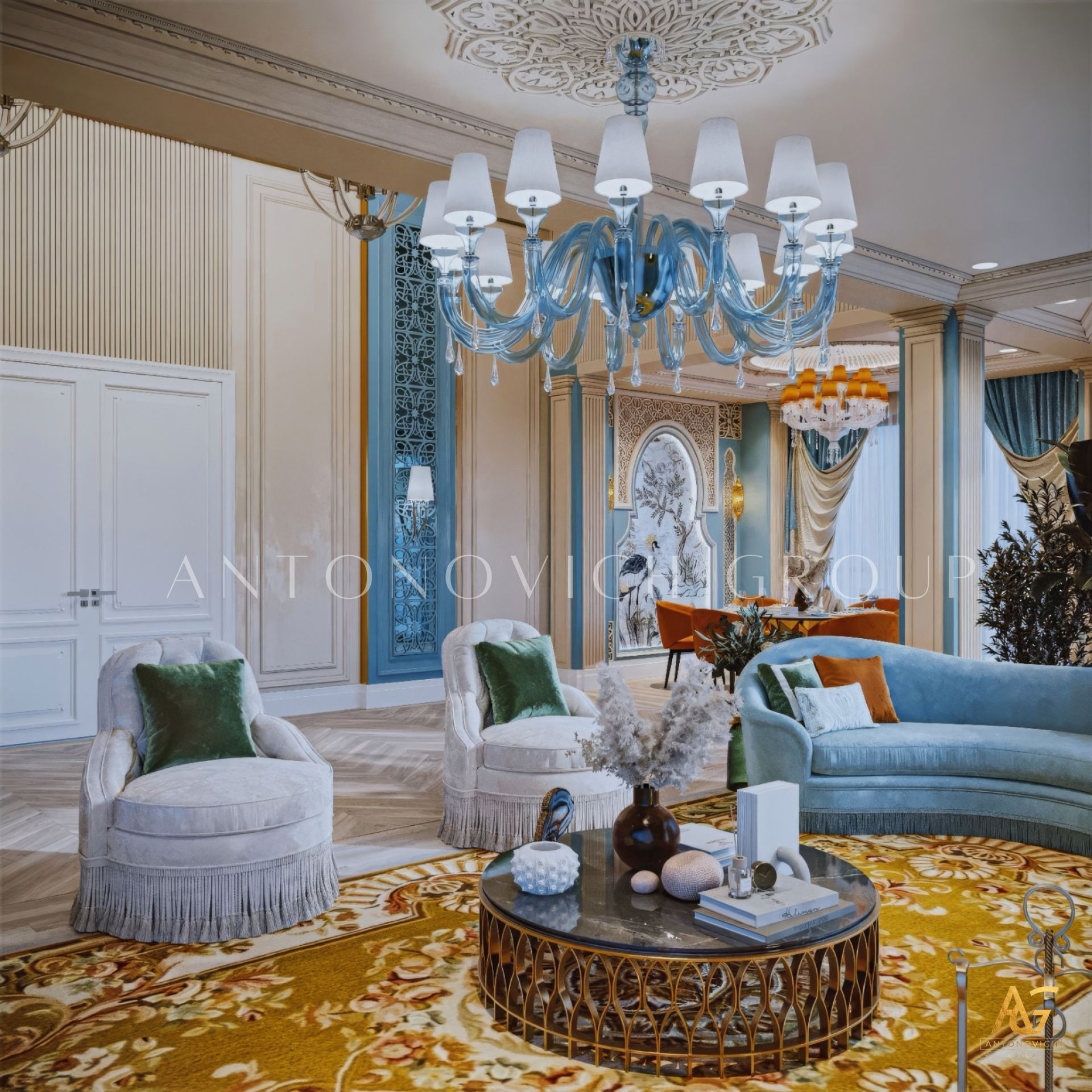 Antonovich Group begins each project with a personalized design concept, aligning the living room interior with the architectural character of the home and the client’s lifestyle. Whether designing a luxury villa living room or a contemporary apartment space, the team focuses on spatial clarity, proportion, and refined detailing.