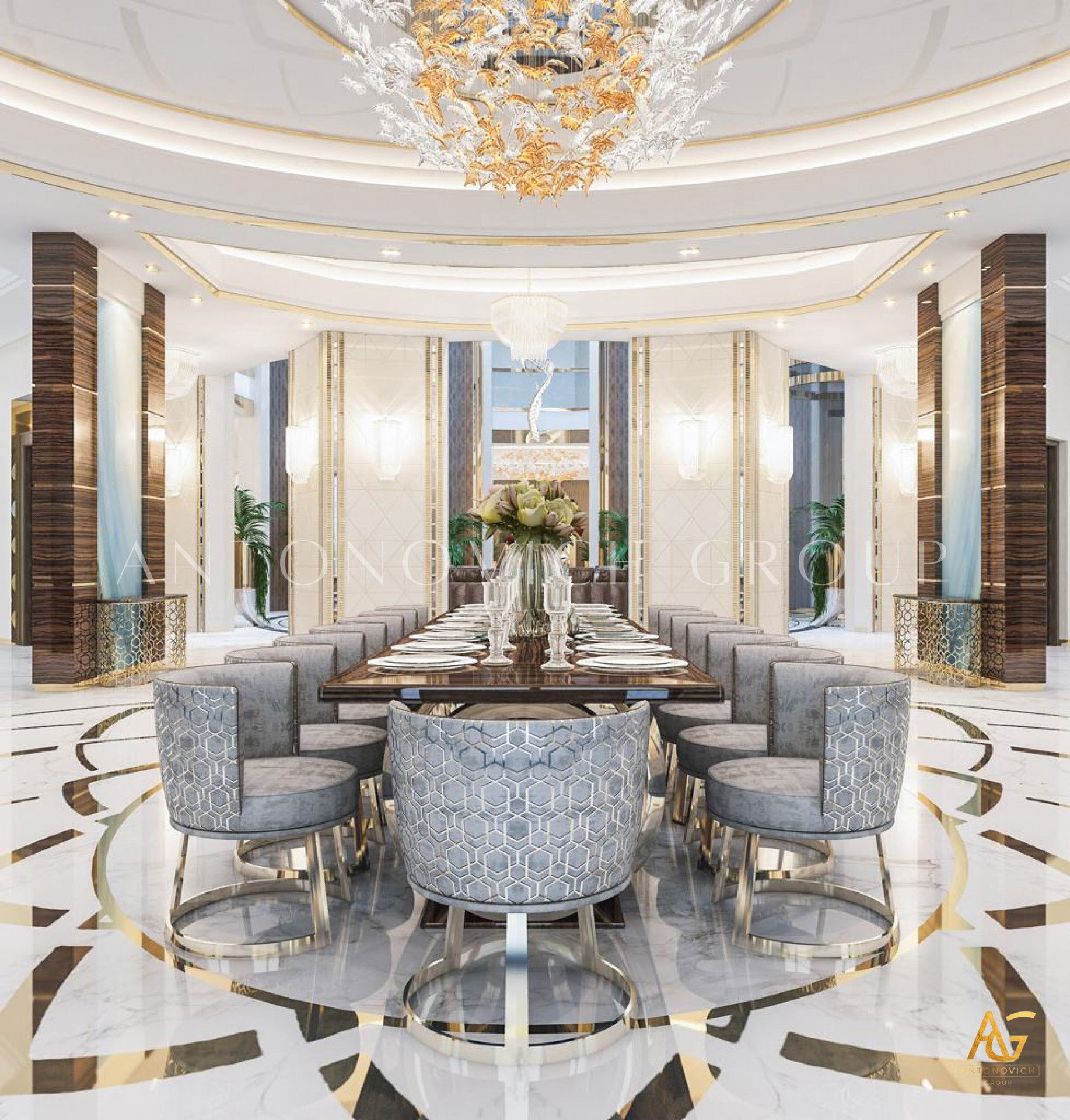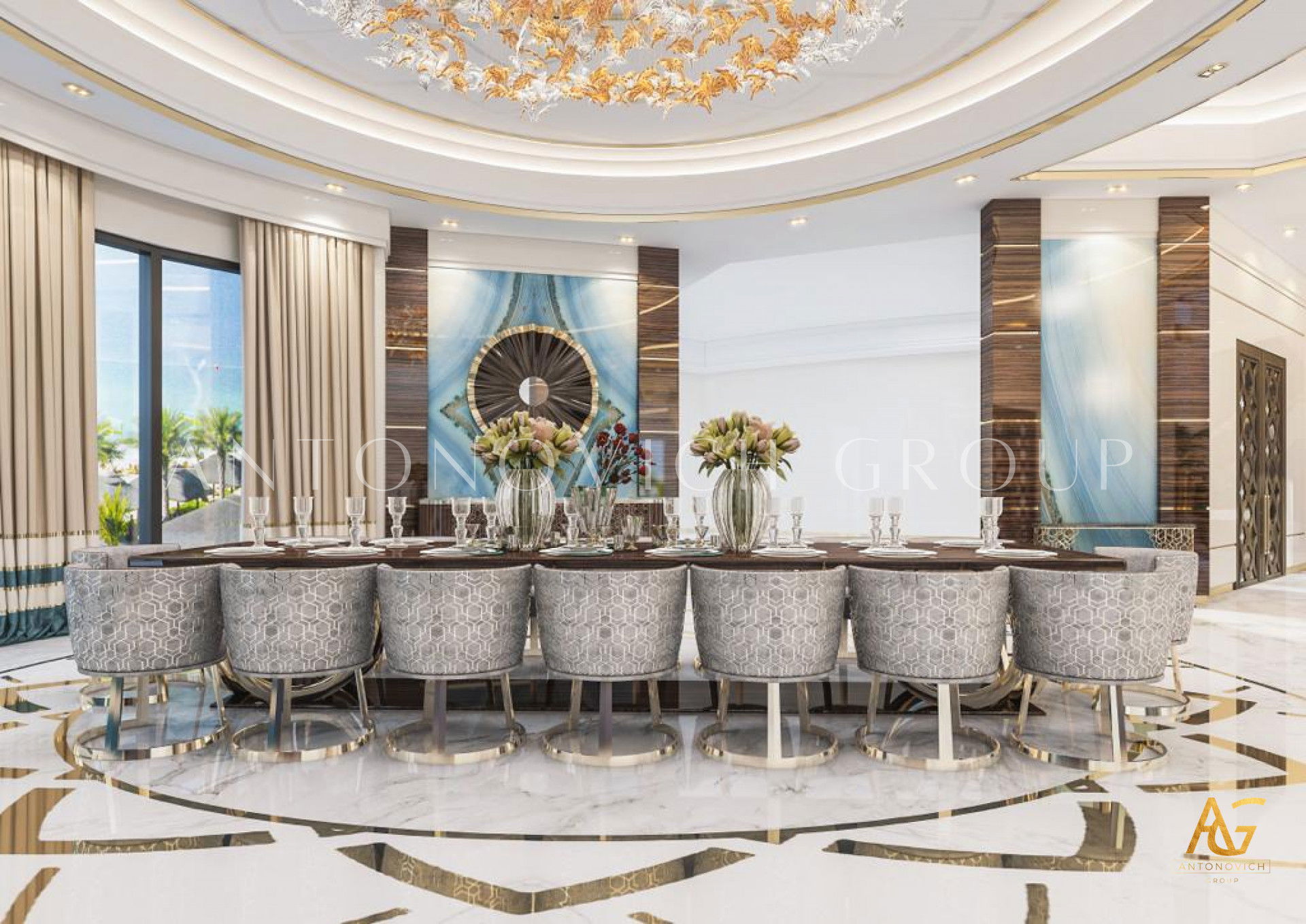 This Modern villa with outstanding detailing may be found in one able and modern home! The layout of this area is well-organized without appearing cramped. The lightings brown color is vital for producing a good ambiance in the Doha interior design, and this luxury villa interior design in Qatar has all of the characteristics youll need to achieve that cheerful mood. The stunning lighting in the luxury Modern villa interior design Qatar is enhanced by superbly crafted tables and a one-of-a-kind ceiling. This Villa project Doha Qatar is the epitome of grandeur. It has a vibrant color that pervades the entire space. The accents are gorgeous, and they run the entire length of the space. Your Modern villa is a meeting spot for important occasions. It needs to be relaxing and peaceful. Cool walls were one of the features used in the finishing of this premium Modern villa interior design Qatar. Many wealthy people have always preferred luxury decors because of their class and elegance. The interior design of Qatars big layout completes the rooms whimsical feel. The patterns are quite well-made and appealing to the eye.