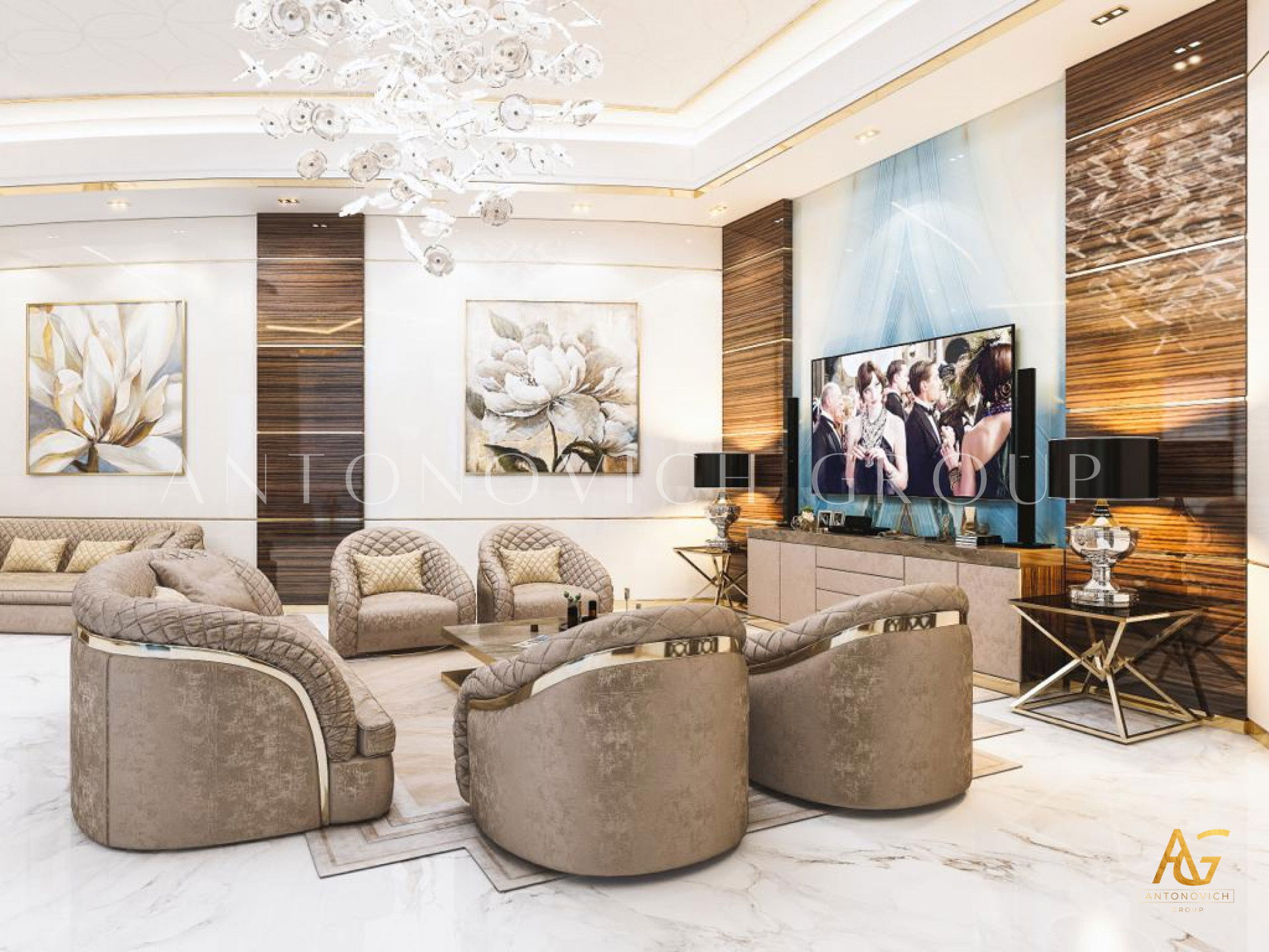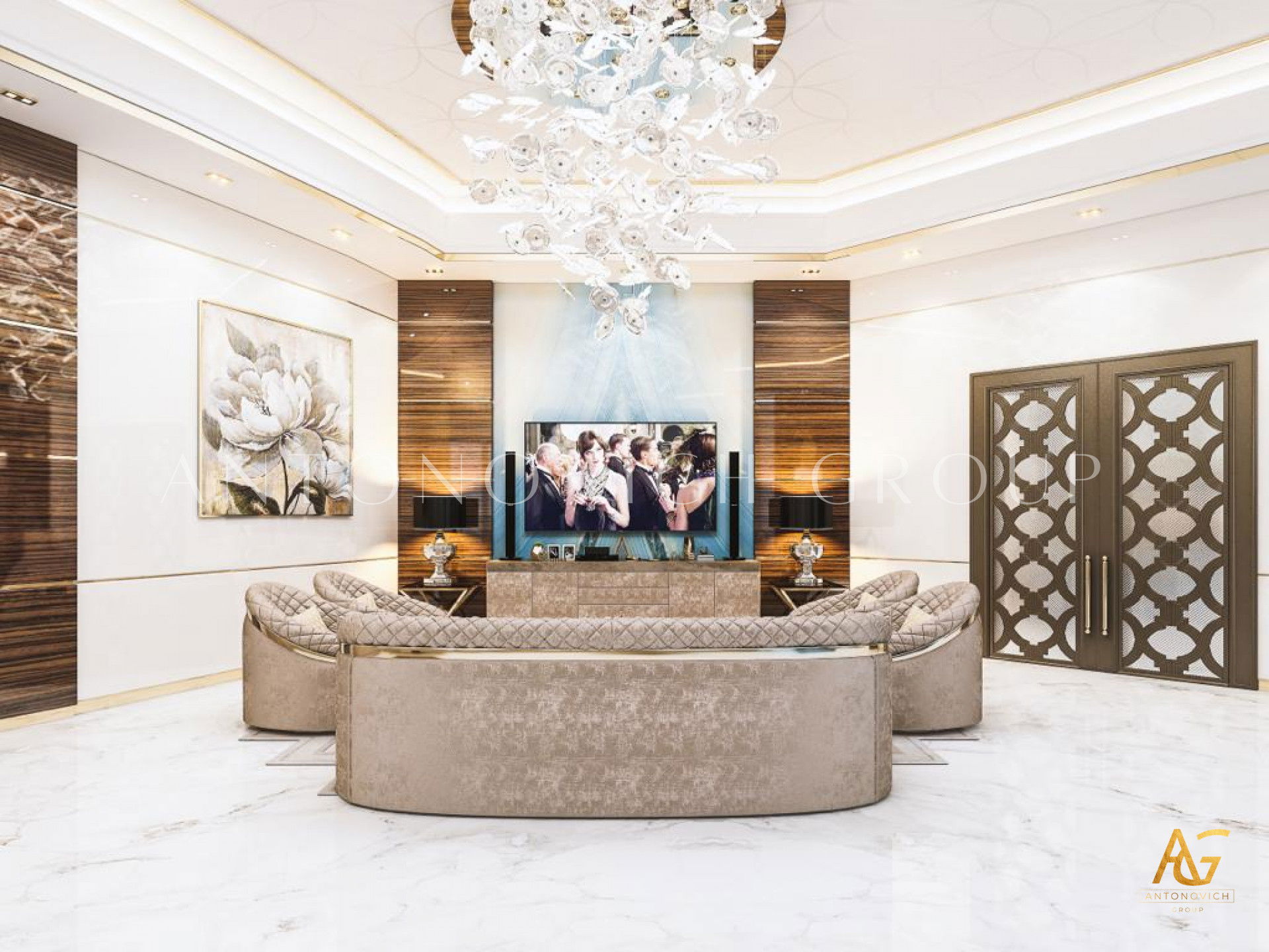 The Modern villa room emits a modern vibe with its cool brown color palette that stretches from the ceiling to the floors. Every piece of furniture has been positioned with care to ensure that the luxury Modern villa interior design Qatar has enough space. In every detail, the interior design Qatar of this luxury Modern villa is modern and sumptuous. Elegant accents and decors were used to embellish this trendy indoor Modern villa. This Design house interiors Doha exudes peace due to its exceptionally pure tone. There are several notable ascents in the wall décor. Its one-of-a-kind, beautiful, and pricey. The chair is designed to assist you in relaxing as much as possible when sitting. The clean colors complement one other, giving this the perfect interior design Qatar for a luxury Modern villa with a clean theme. This lovely soft modern Modern villa room is oozing with grace and charm. The accents and details are beautifully gorgeous. Many families seek this luxury Modern villa home design because of its polished look and delicate accents. A great fantasy accent may be found in the room. The exquisite and delicate color scheme of the interior design of Qatar emanates class, beauty, and refinement. The chandelier and lights add to the luxury modern Modern villa refined interior design Qatar.
