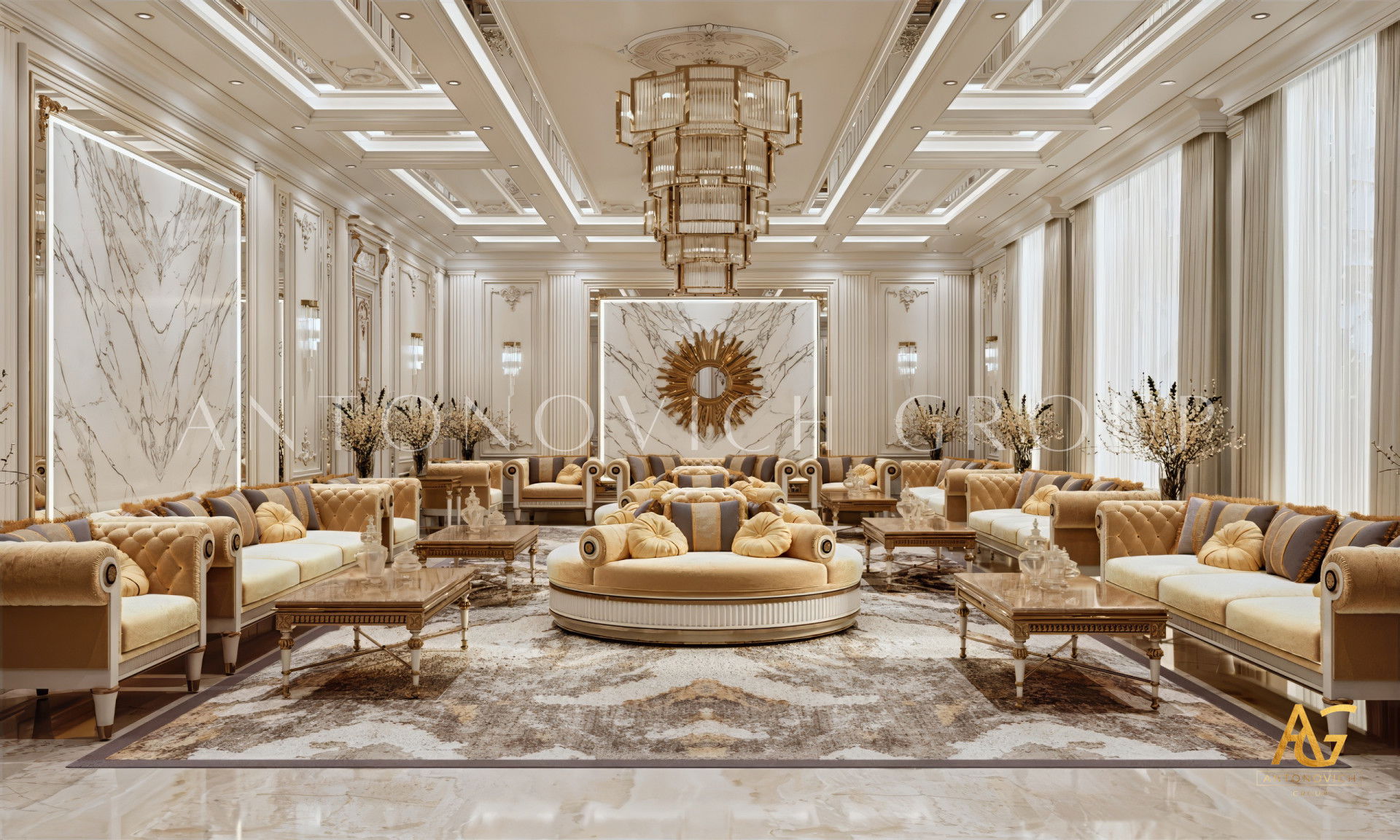 Every Majlis designed by Antonovich Group begins with a carefully developed concept. The team collaborates closely with each client to understand their vision, preferences, and lifestyle. From classical palatial designs to modern luxury settings, each project is meticulously planned to achieve harmony between architecture, functionality, and refined aesthetics.