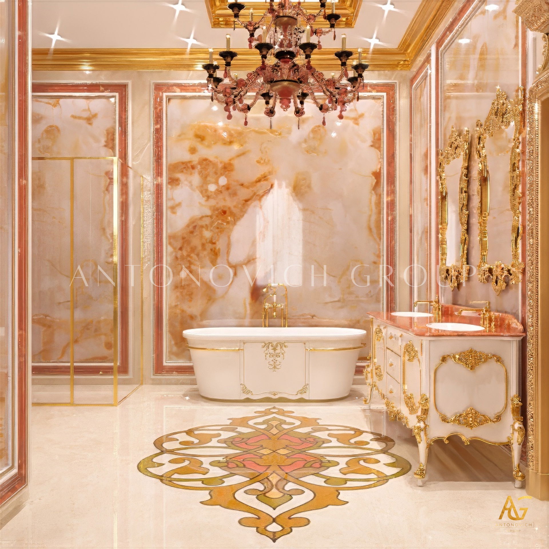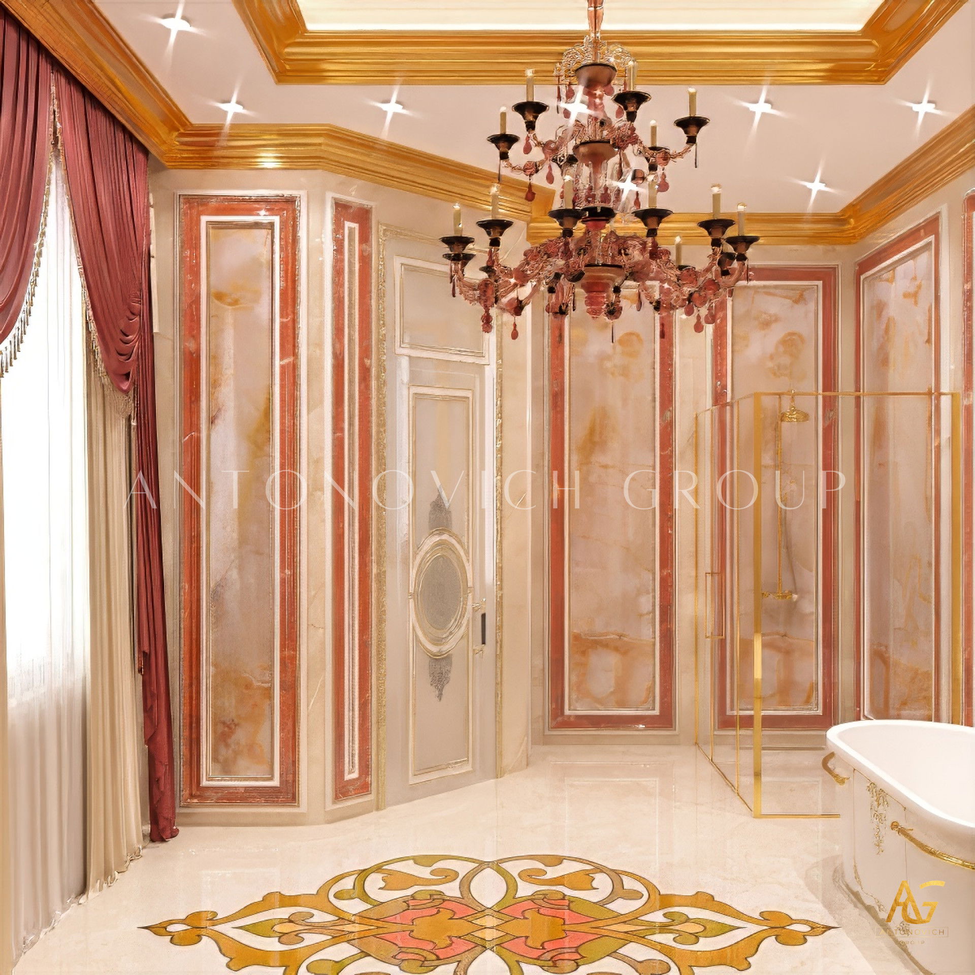 Antonovich Group is known for integrating bespoke fixtures and fittings that set their designs apart. Sleek vanities, floating cabinetry, freestanding bathtubs, and designer mirrors create a striking visual impact. Smart sanitary solutions — such as touchless faucets, intelligent shower controls, and heated flooring — bring modern convenience into the space while preserving elegance.