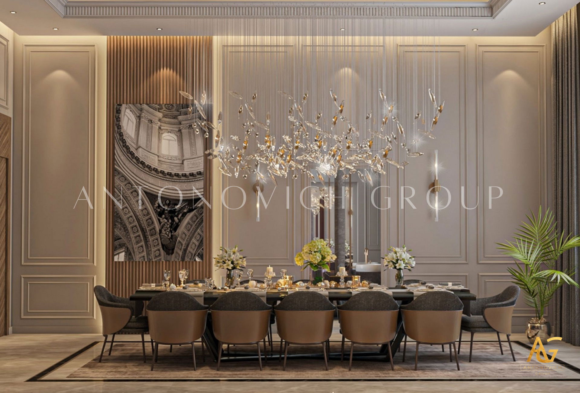 Are you seeking interior design dining room decorating inspiration? This area serves as a combination of the kitchen and the living room in a modern villa design plan. Whether you have a separate interior design dining room in your modern villa design plan or your dining space is open plan adjacent to your kitchen set, an interior design dining room should be built with maximum comfort in mind. Youve arrived at the correct place if youre looking for comfortable interior design dining room ideas. Here are some suggestions for making your interior design dining room the most inviting place in your modern villa design Dubai. The dining area is more balanced when neutral colors are used. The contemporary furniture set adds character to any space in any kind of architecture, and the large volume allows everyone to sit back and relax, whether in the interior design dining room, conference room, or office. A vibrant, bright hue may add a warm, inviting feel to a space that needs it. Beautifully colored upholstered dining chairs bring this dining area to life. The marble tabletop is also scratch-resistant, making it durable, simple to clean, and attractive for longer, making it excellent for families and children. Dont forget to add a sleek chair to complete the look for enhanced comfort and luxury.