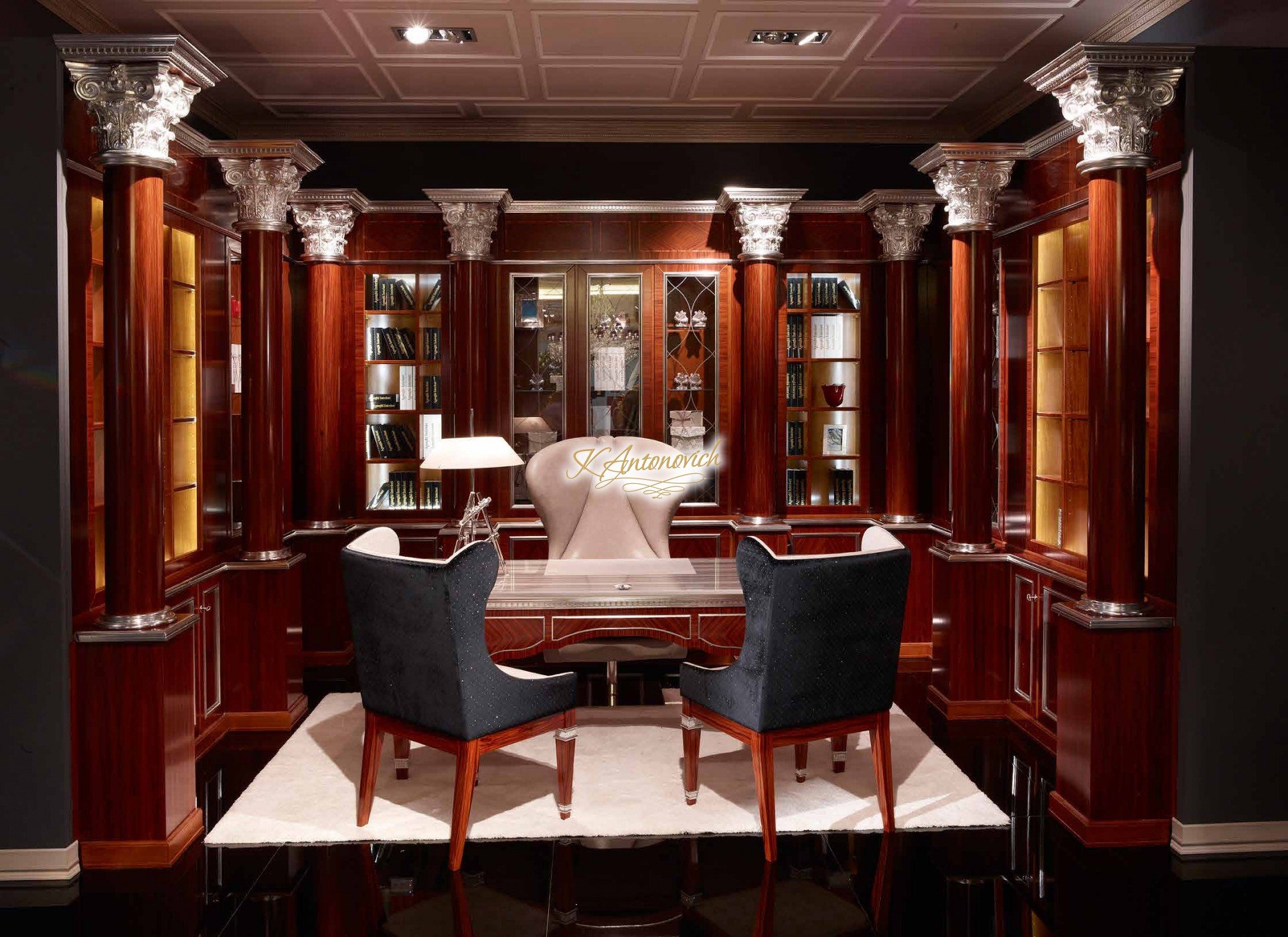 The office decor is very well-done which makes this classic interior design a complete one. The style and furniture that were used all go well with each other just like the wooded rack and dark brown chairs along with the beautiful details. The carpets also add to the classic vibe of the top office interior design. The top luxury office interior design has all the features you need to have a productive pad that you can be proud of. Its luxury features are one of a kind. Achieving a beautiful office interior design is an easy task with Luxury Antonovich Design.