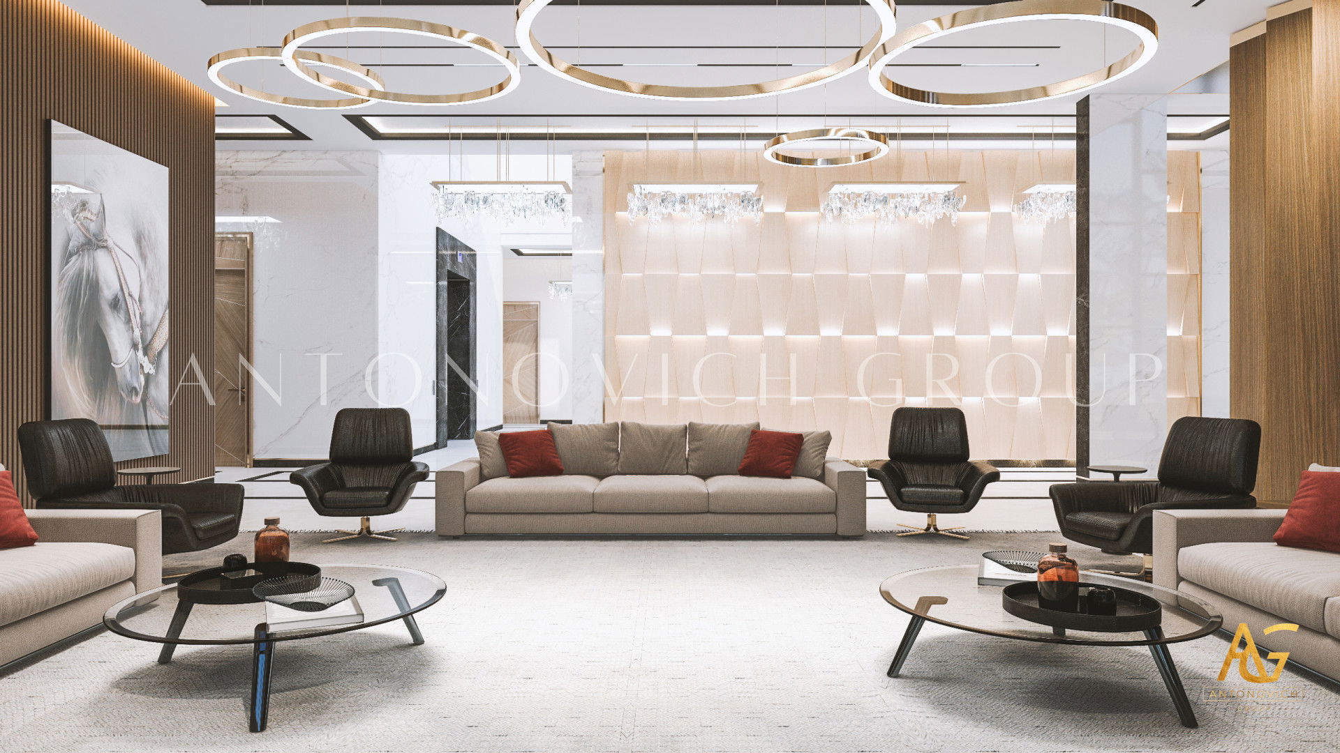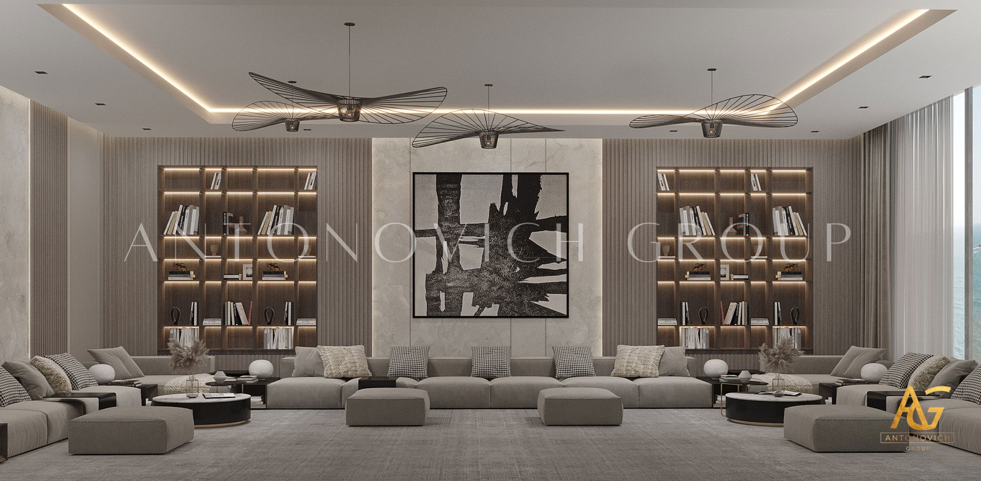 This comprehensive range of services makes Antonovich Group a trusted partner for homeowners seeking a luxury modern villa interior that blends elegance, innovation, and comfort.