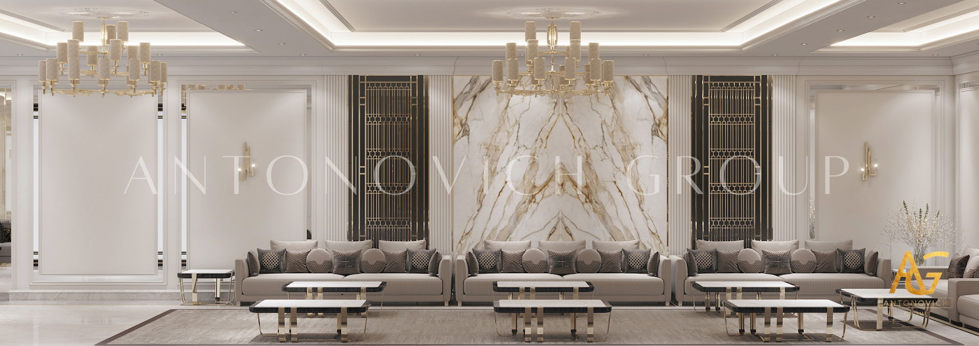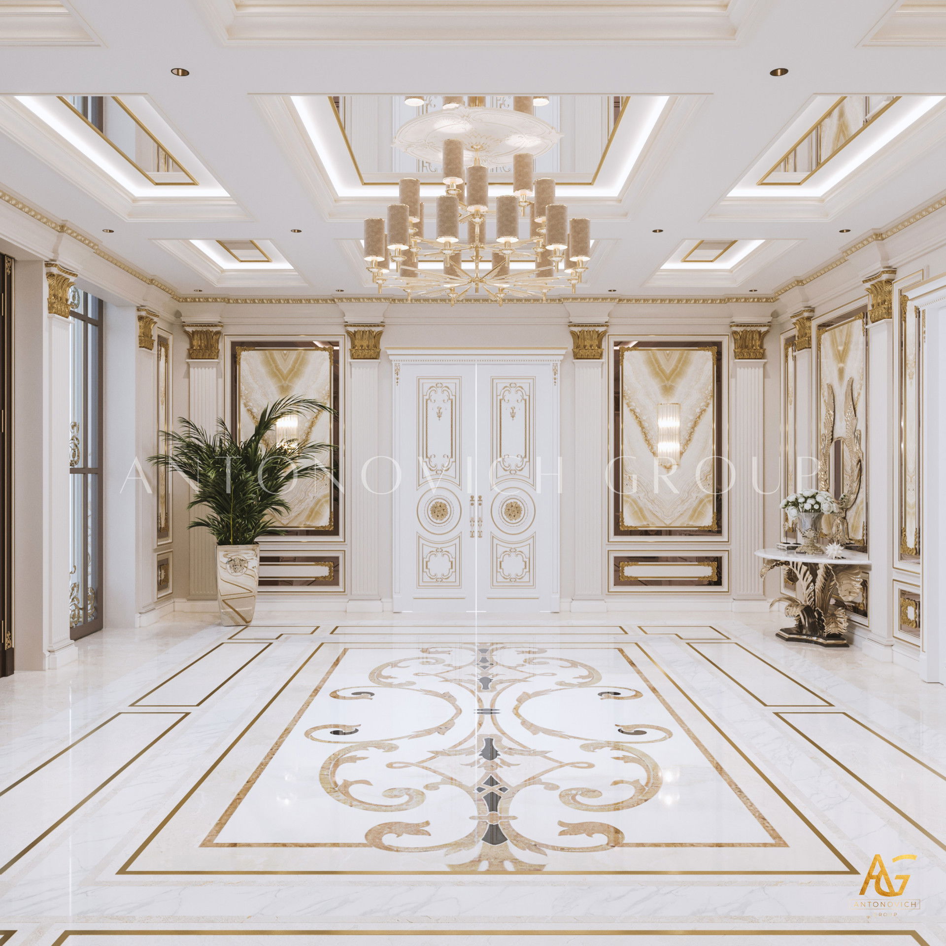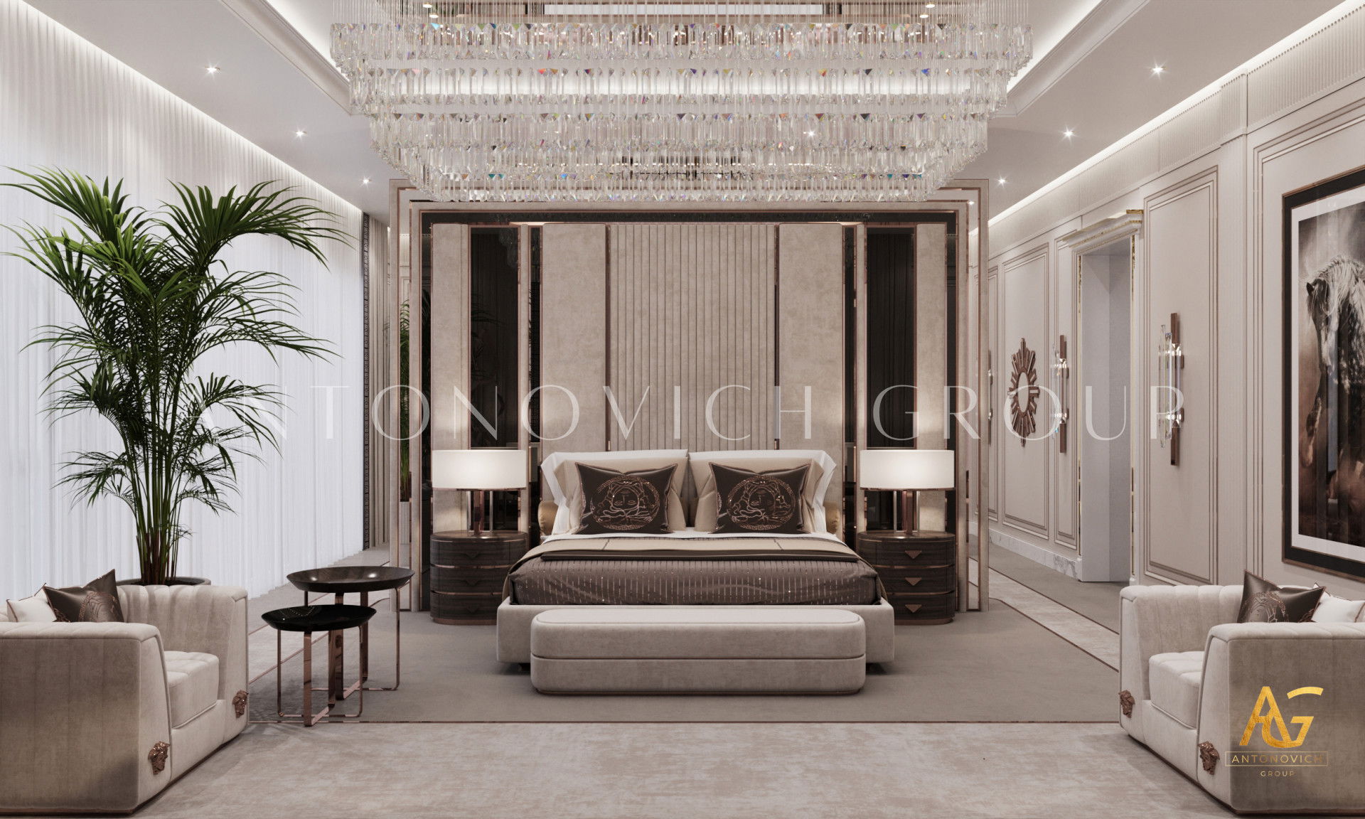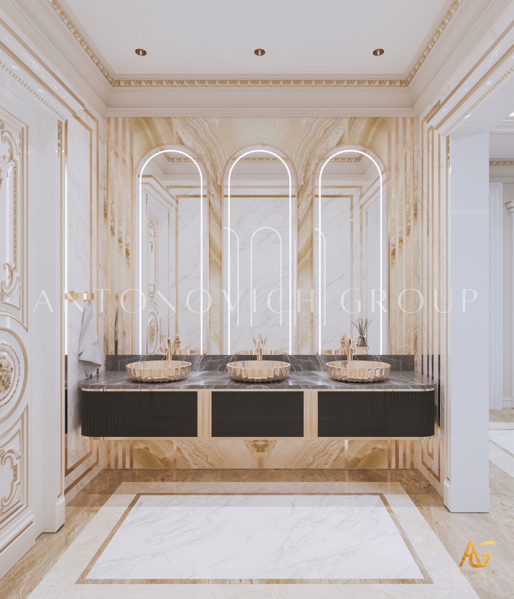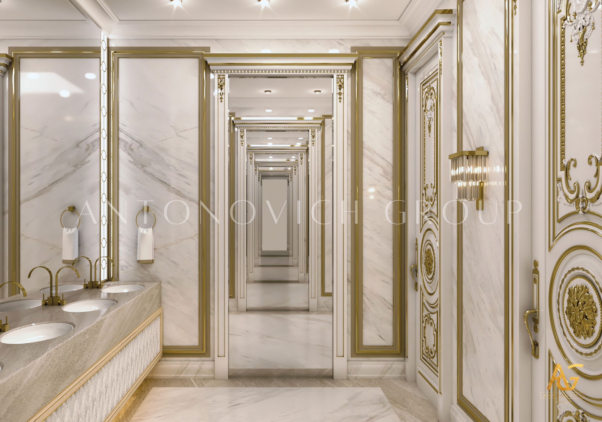Stepping inside the villa is like entering a realm where classic elegance meets modern luxury. Antonovich Group's interior design team has orchestrated a symphony of opulent details, creating an environment that is both regal and inviting.