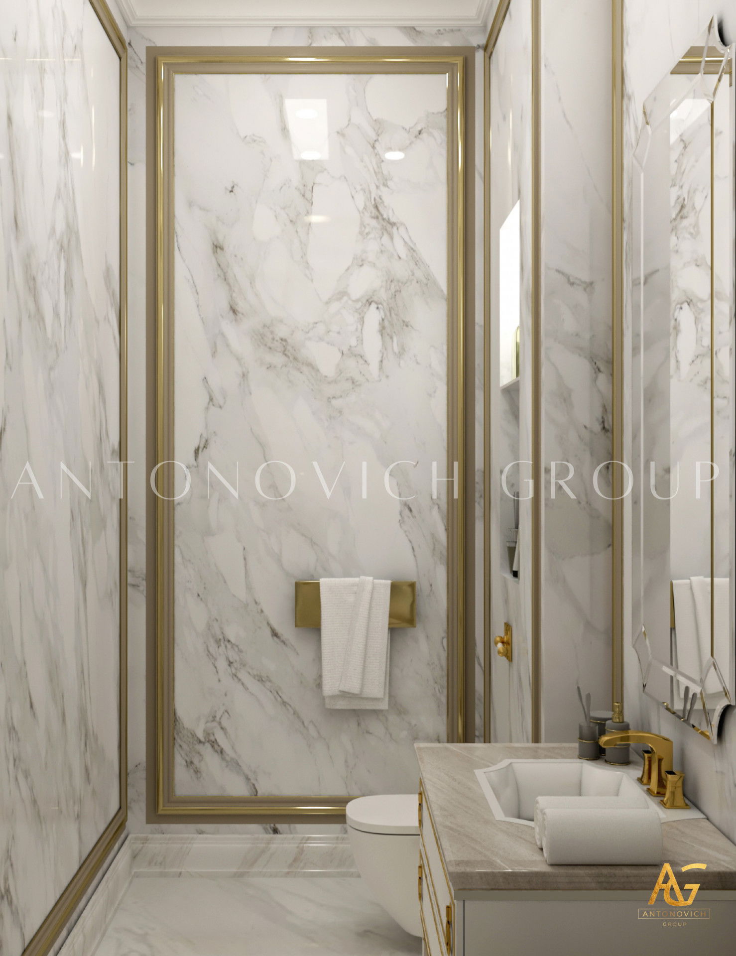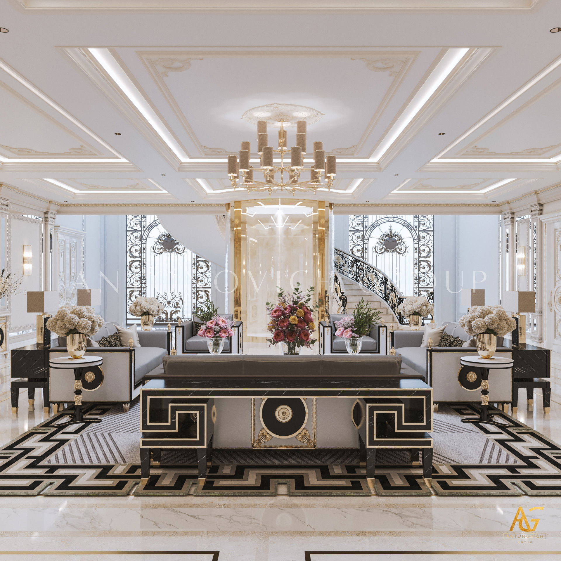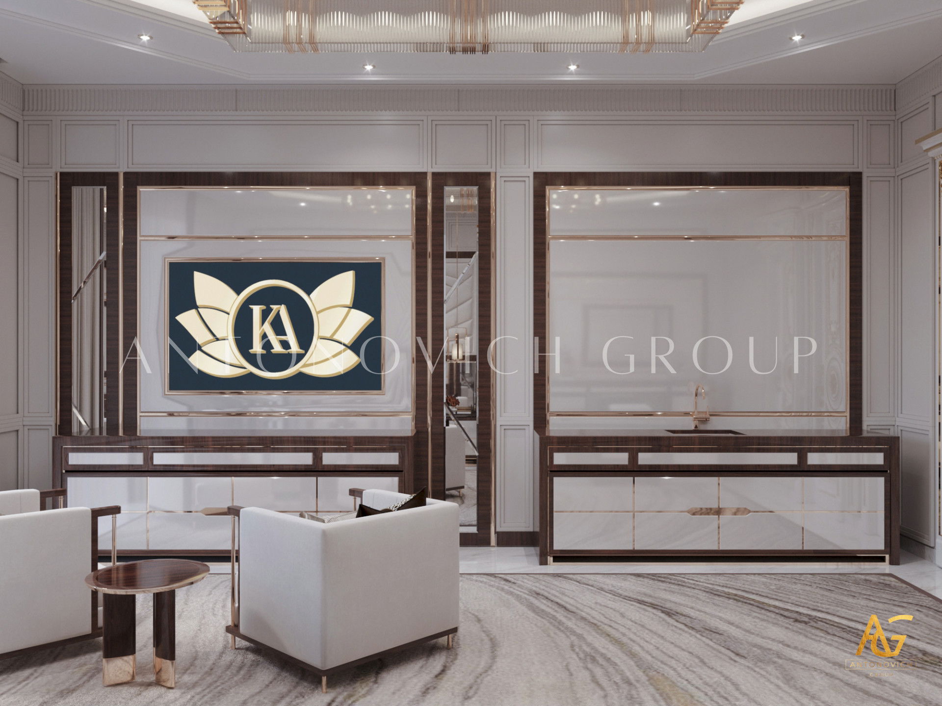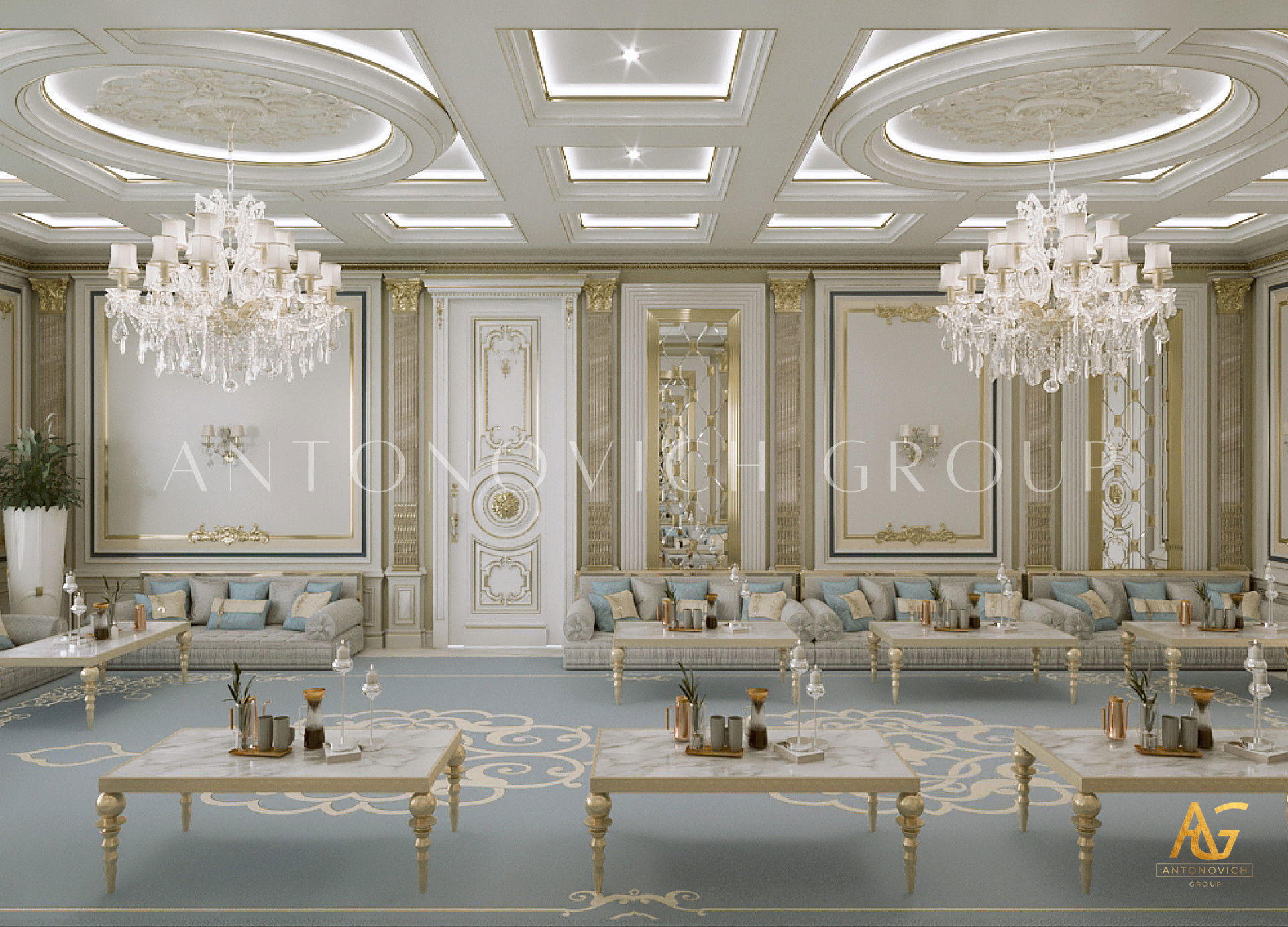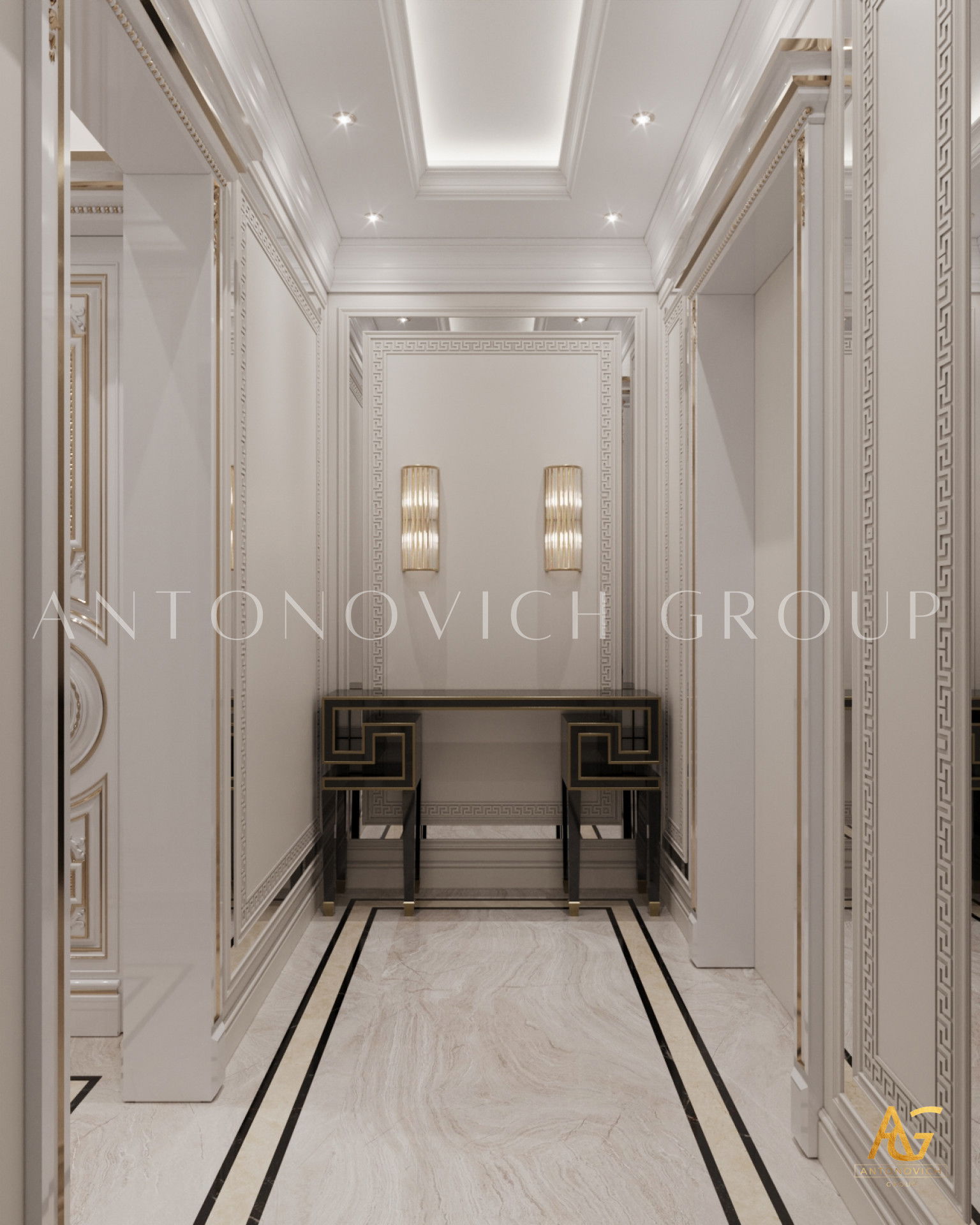 Stepping inside the villa is like entering a realm where classic elegance meets modern luxury. Antonovich Group's interior design team has orchestrated a symphony of opulent details, creating an environment that is both regal and inviting.
