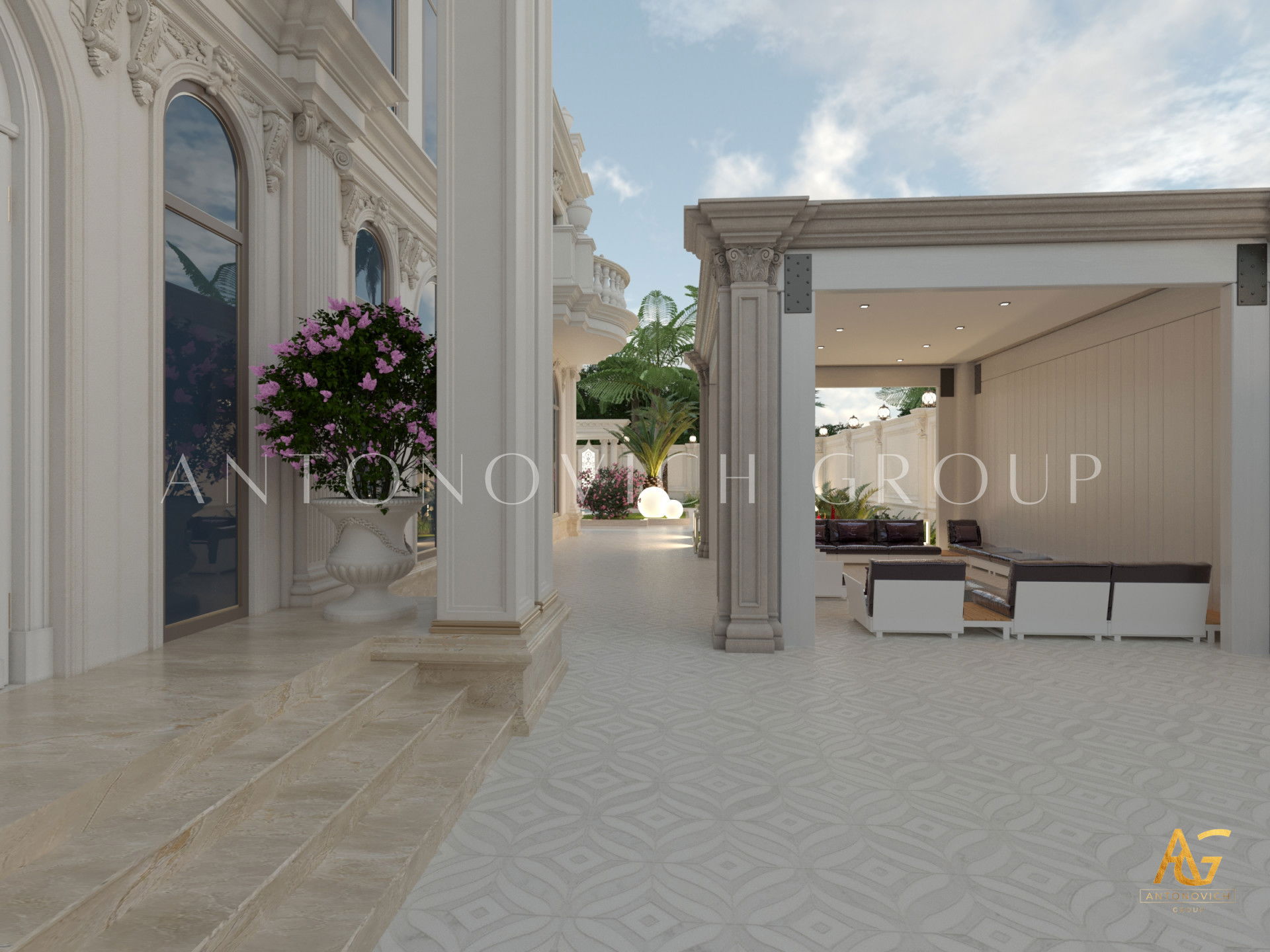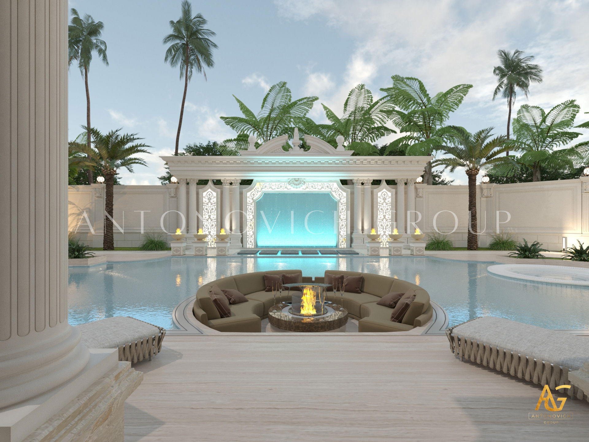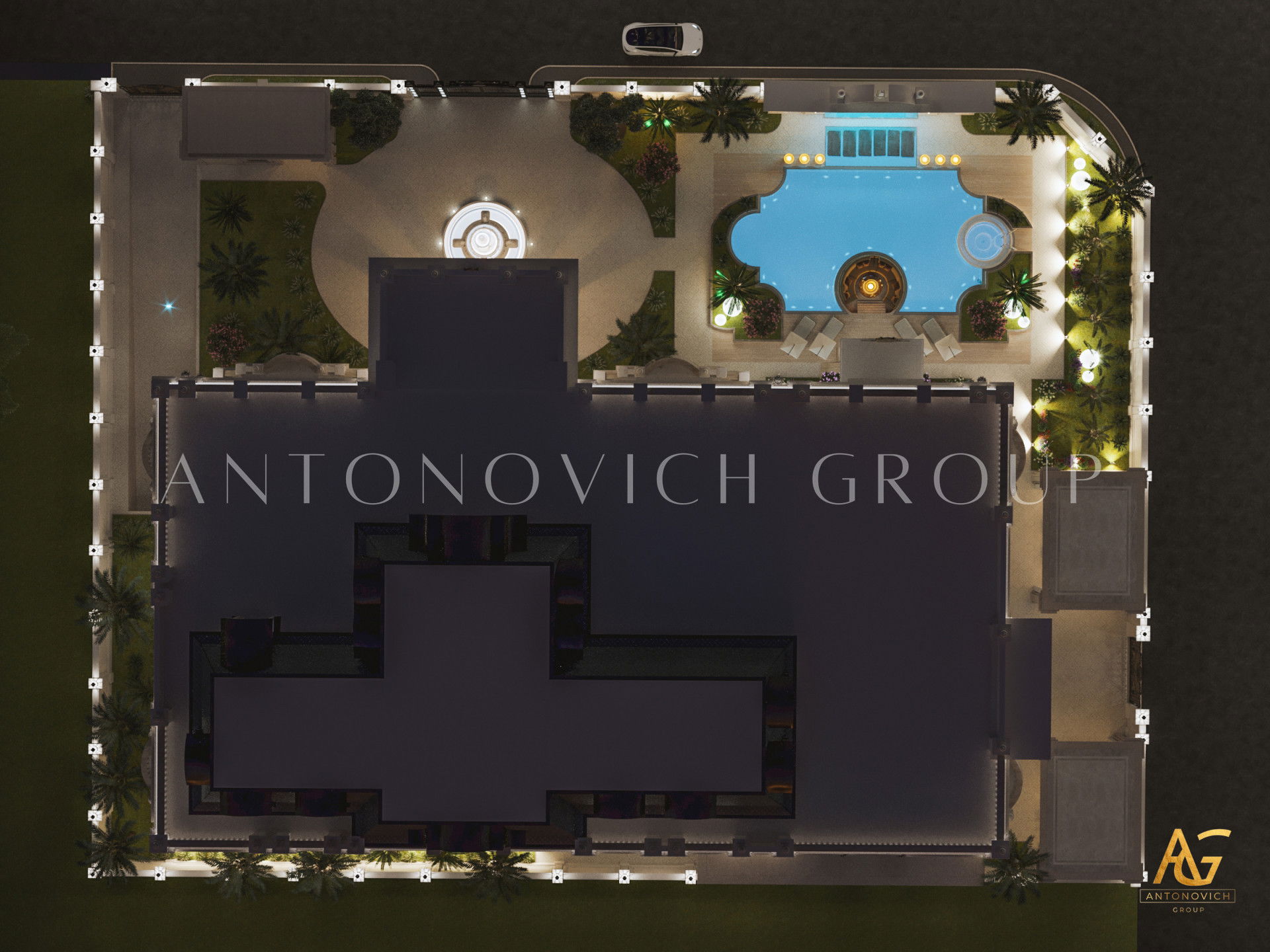The exterior excellence doesn't end with the facade – it extends to the enchanting landscape that surrounds the villa, featuring a luxurious swimming pool that is the epitome of elegance. Antonovich Group has turned the outdoor space into a private oasis, where relaxation and entertainment converge in perfect harmony.