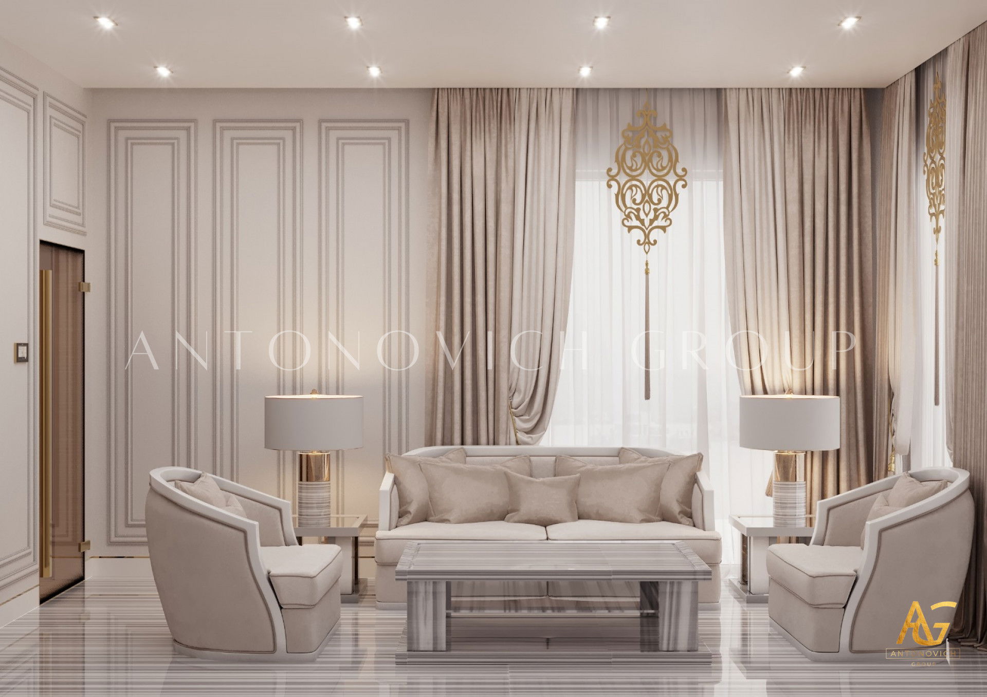 In the heart of the vibrant city of Dubai, where innovation meets tradition, stands an architectural marvel that transcends time and captivates the essence of luxury living. This opulent classic villa in Al Manara is not just a residence; it's a testament to the seamless integration of timeless design, meticulous execution, and unrivaled project management by none other than Antonovich Group. In this journey through extravagance, we unveil the story behind the creation of this luxurious haven – from the exquisite exterior to the sumptuous interiors, every detail a manifestation of Antonovich Group's commitment to excellence.