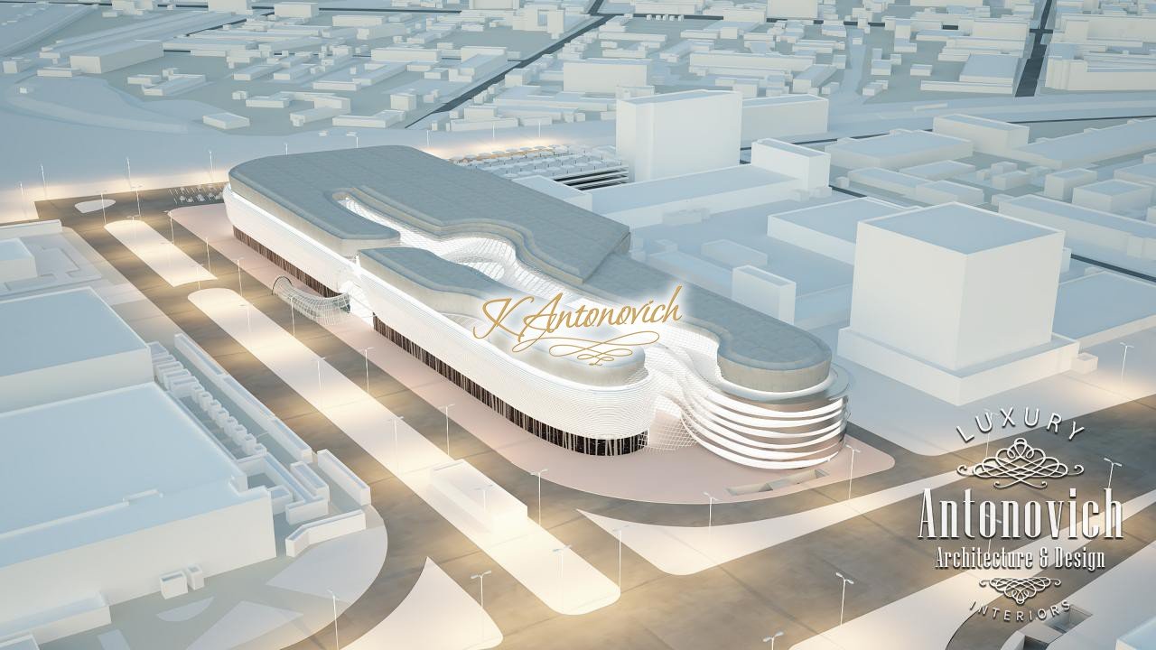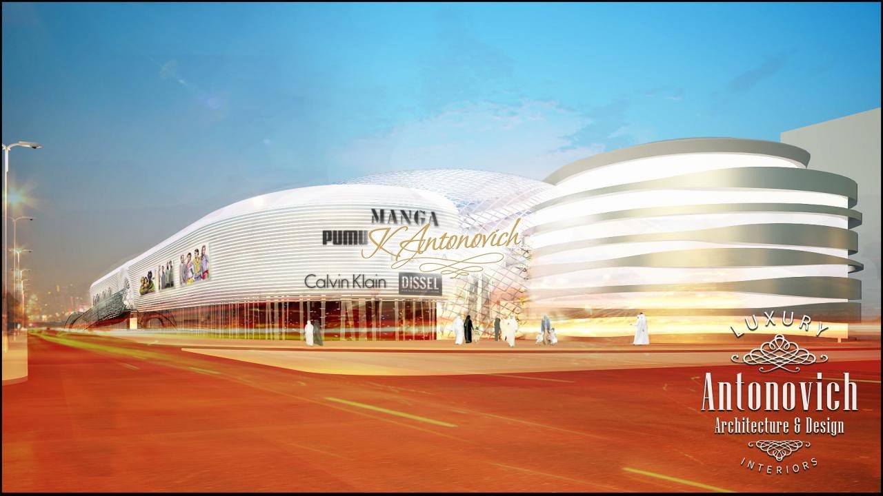 Architectural design from the studio Luxury Antonovich Design is based on the best traditions of architecture and innovative ideas of architects. A clear image of geometric features of spatial forms inherent in each author's project, both in the classical and contemporary style. Stylish and unique project of shopping and entertainment complex corresponds to the fashion trends in architecture. The unique beauty of the building will be the architectural jewel of one of the urban areas. The grandiose project harmoniously composed traditional elements and three-dimensional forms. The harmony of a combination of various forms leads to wholeness and synthesis of composition, gives importance and monumentality, but also facilitates the visual perception of the architectural object from any angle. Architectural bureau Dubai creates unique beauty and configuration of projects that are filled with deep meaning and philosophy of contemporary art. The architectural project today is a very complex and multifaceted process. Authors of the project work on all internal details of a building, planning, utilities, lighting techniques, and all components needed for the normal life of buildings and structures for many years. Using modulation, which is subject to planning of the system, filling the walls, top beams, the height of openings and floors, the project authors provide projects perfect in architecture and facilities performance. The architectural design of the shopping mall differs with graceful contours, smooth lines and streamlined forms.