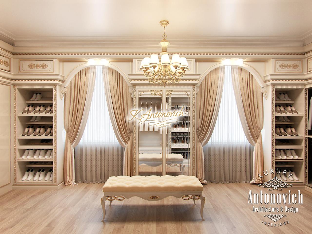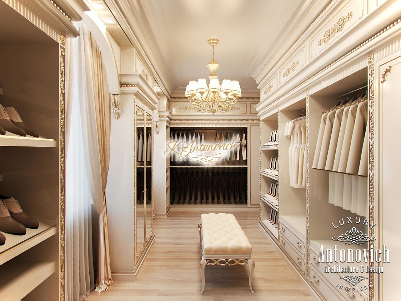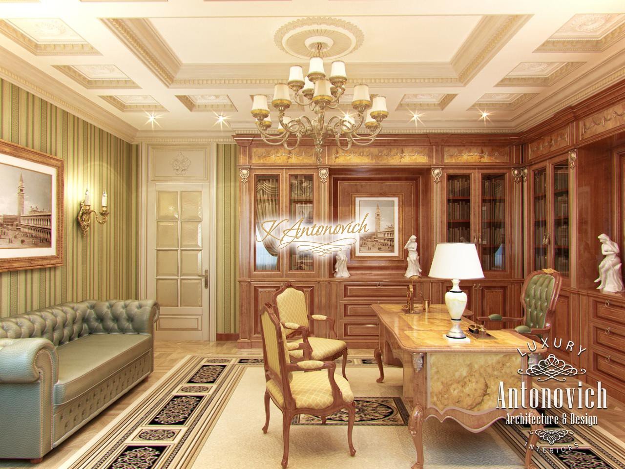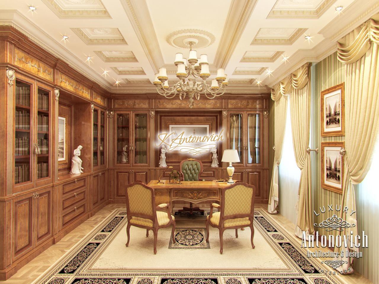 How beautiful, luxurious and elegant interior is, you can understand from the first moments of your stay in the house. Large size of the hall embodies the best traditions of modern classics. And interior designers Dubai bring to these traditions the shade of striking individuality. The highlight of each author's project of design studio Dubai Luxury Antonovich Design became floors, carved from precious marble. Dubai Interior designers create ornaments of the unique beauty. And thanks to modern technology, you can implement any design ideas. Interior literally captivates with its beauty and perfection. Carved pattern on the floor gracefully and elegantly echoes motifs of the ceiling decor. The central part of the pattern of carved on marble picks up the outlines of a pattern in illuminated stained glass, which framed a magnificent crystal chandelier. A refined curls of stucco on the ceiling repeat pattern with swirls of dark brown marble. Great hall is the beginning of a luxurious interior story that continues in the rest of the apartment. And each of those stories begins with luxury door, which is decorated with carved pattern and gilding. House Design Dubai underlines the fact that there you are always welcome. In the dining room interior, which is combined with the kitchen, there is a large table made of wood of valuable species, surrounded by many tall chairs with noble backs. The dining room harmoniously continues cozy living room. The floors are made of wood, soft Persian carpet and curtains of precious silk of coffee shade, are the basis of the warm and cozy mood in the interior.