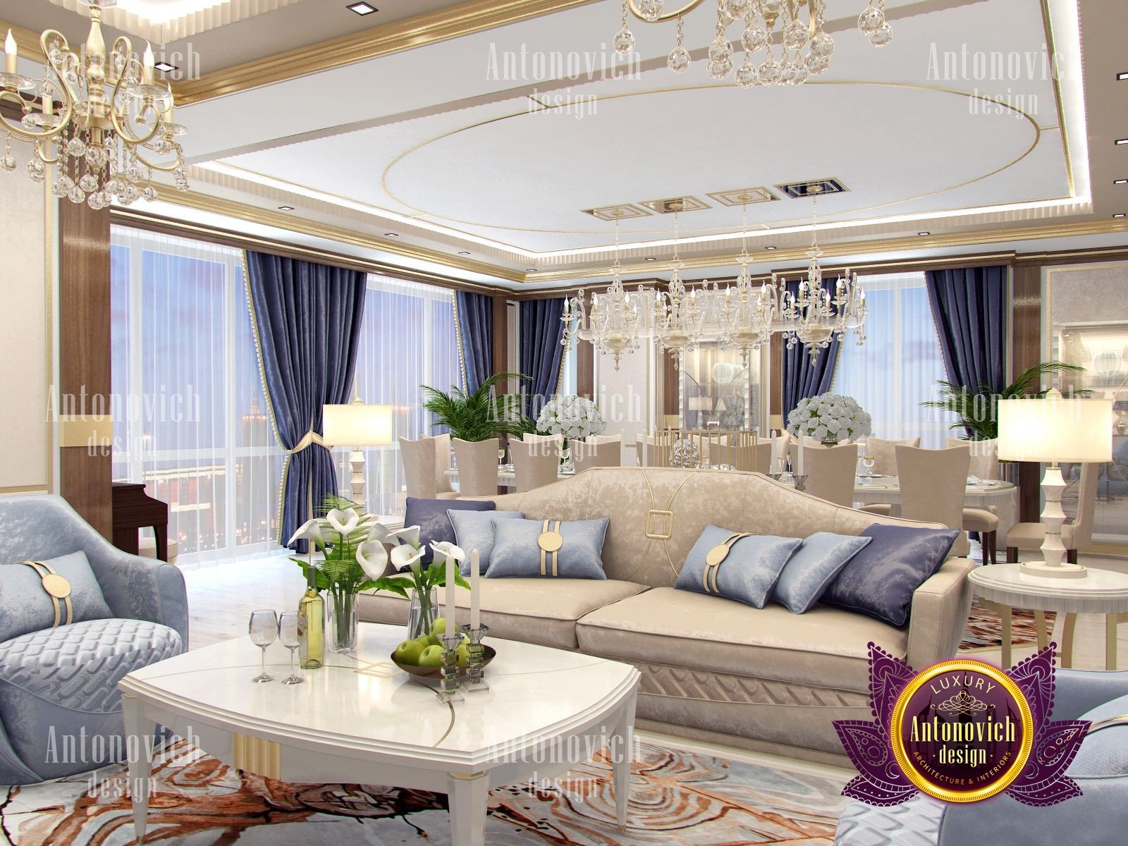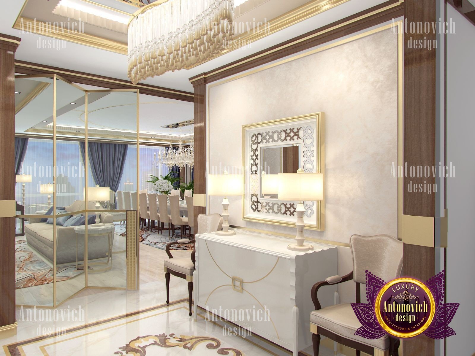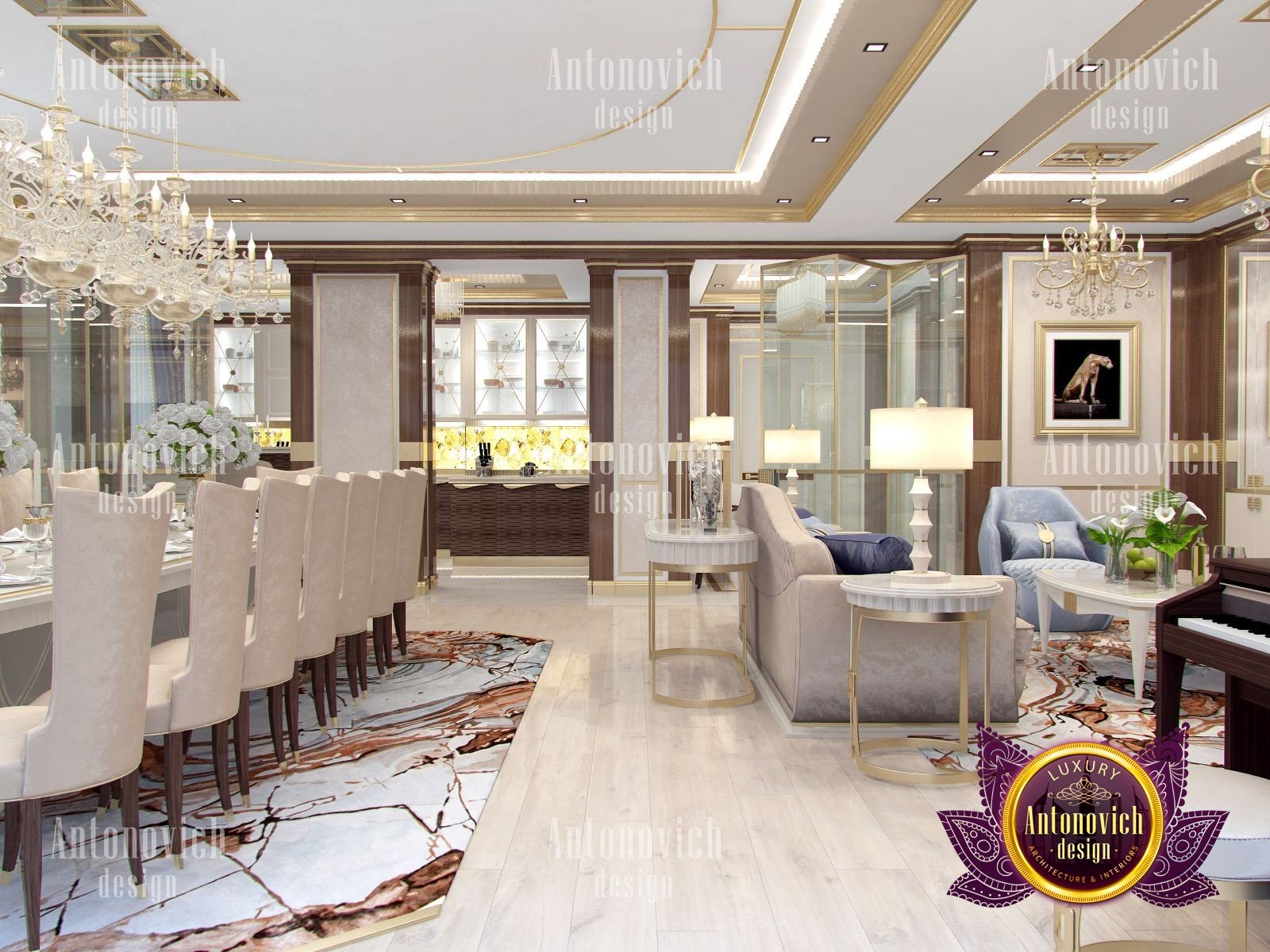 Interior design UAE from the studio Luxury Antonovich Design becomes a unique opportunity for customers to become owners of interiors of unique beauty that reflect the future of design. Villa design Abu Dhabi is full of spectacular design techniques. The ground floor of a luxury villa is filled with light and elegant chic interior in a contemporary style with light accents of art deco. The modern interior design must take into account the innovations of modern technology.