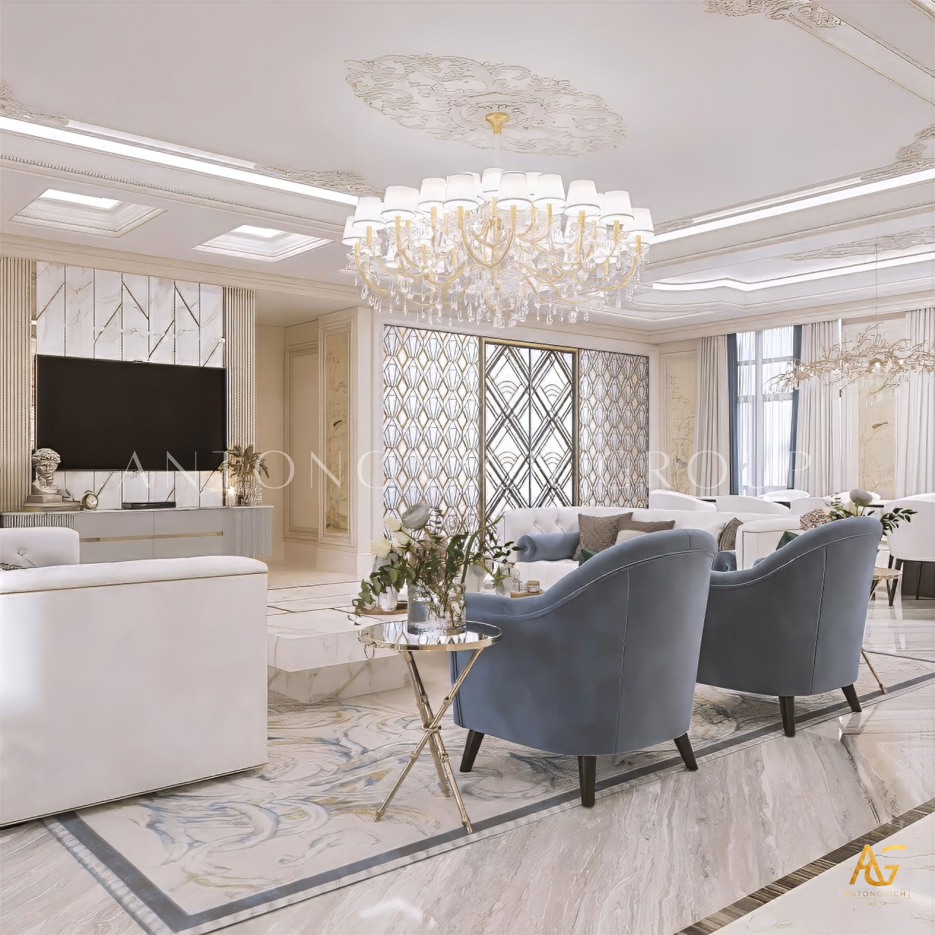 As a full-service firm, Antonovich Group provides a complete range of interior and fit-out services in Dubai, ensuring that every living room project is executed seamlessly from start to finish. Their expertise includes: