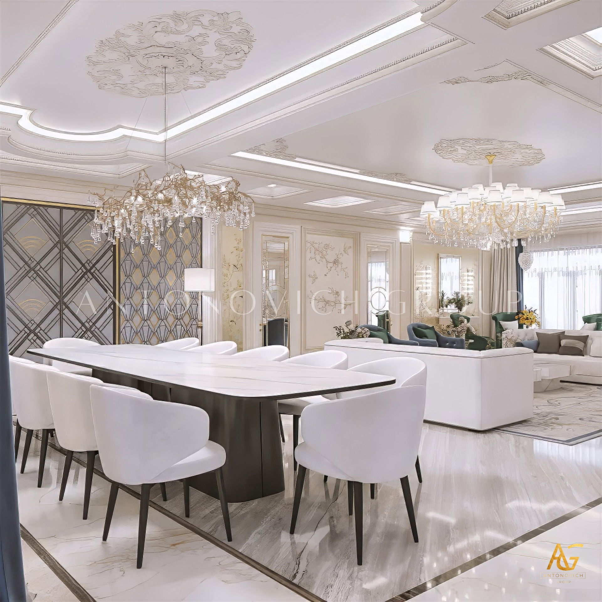 One of Antonovich Group’s most distinguished strengths is its ability to create custom-made furniture that enhances the stylish character of each living room. From chic sofas and contemporary coffee tables to elegant cabinetry and artistic décor pieces, every element is carefully designed and produced in-house. This ensures not only visual harmony but also comfort and durability, making each piece both practical and luxurious.