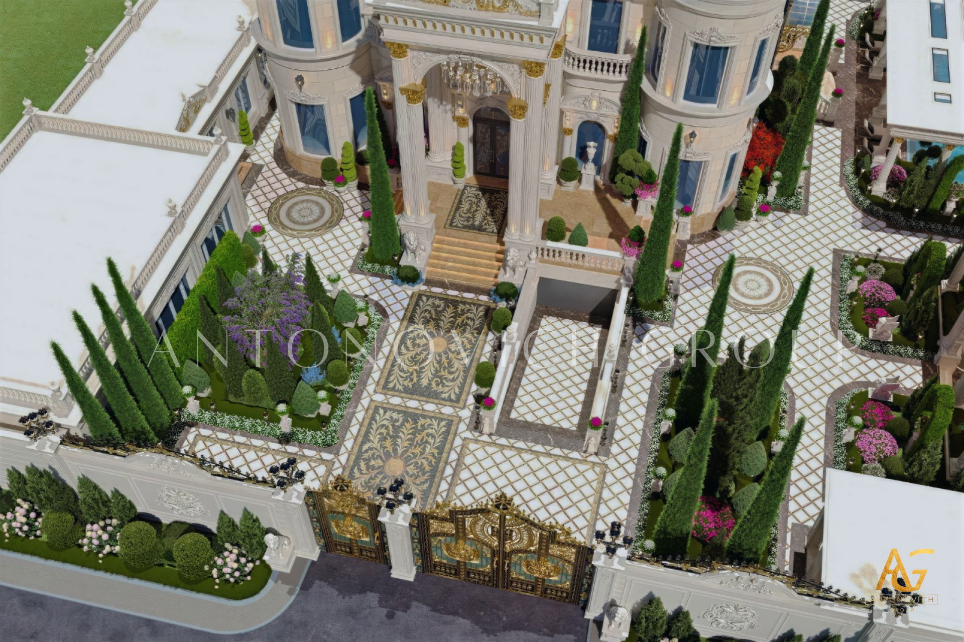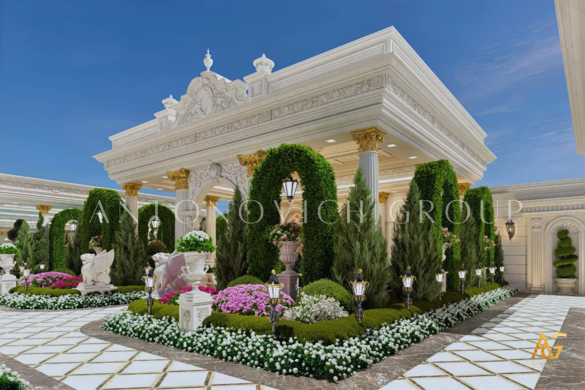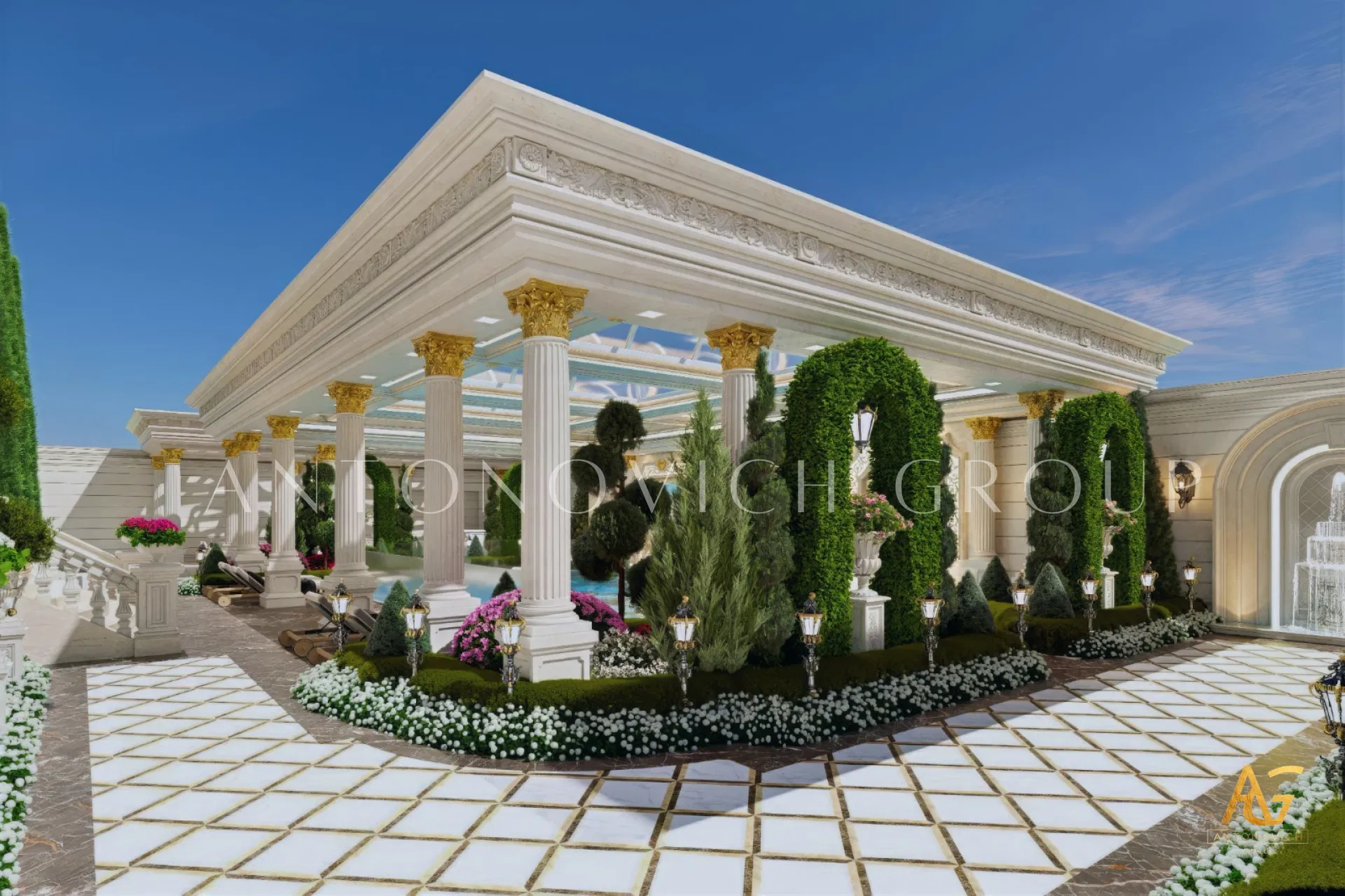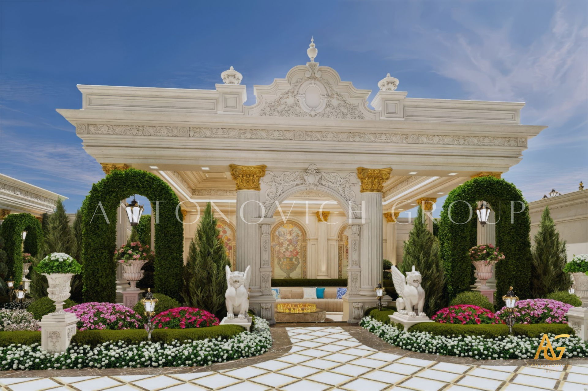 A luxury house façade is defined by its architectural composition. Antonovich Group pays meticulous attention to proportions, alignment, and visual rhythm. Entrances are designed as focal points, often enhanced with grand doors, sculptural elements, or refined canopy structures.