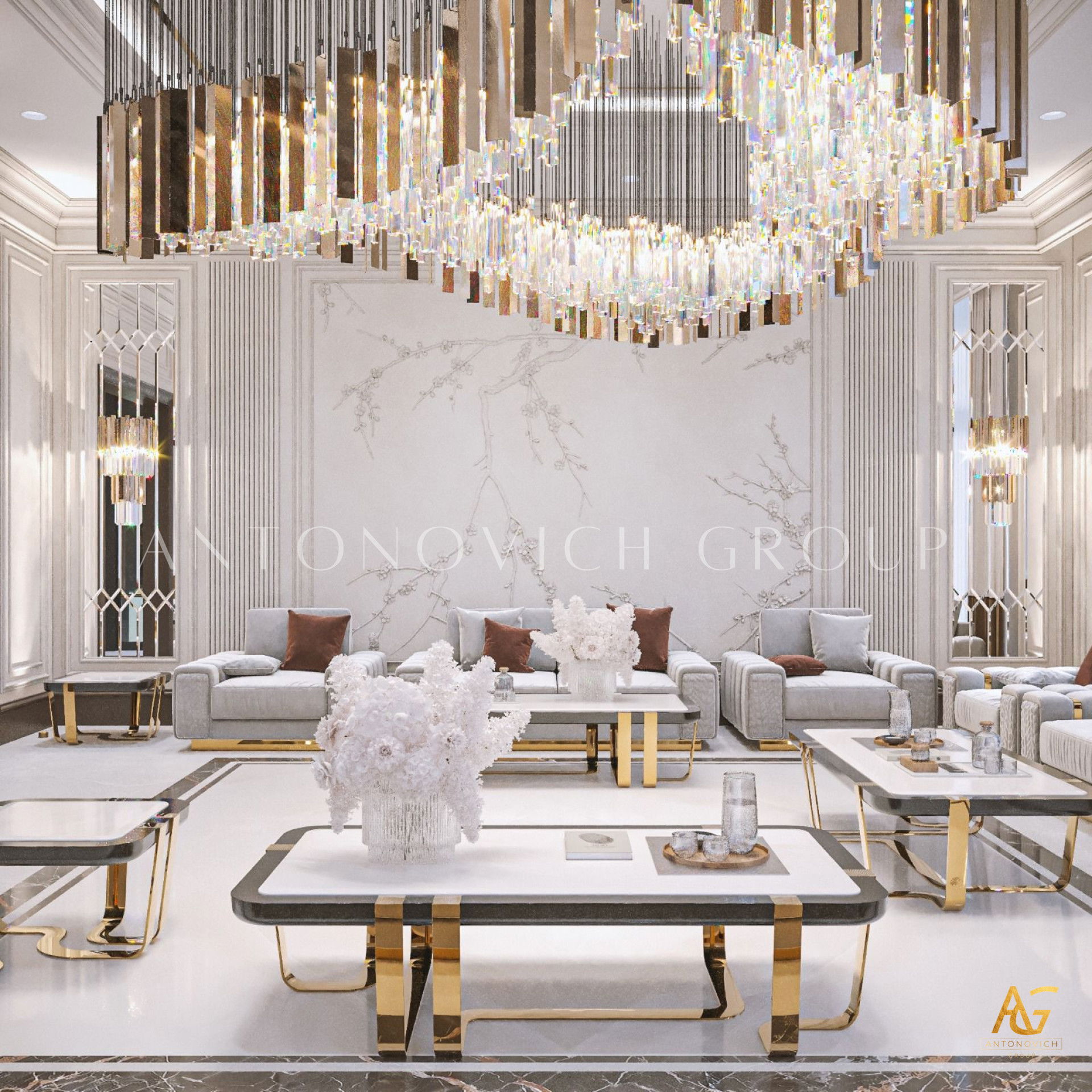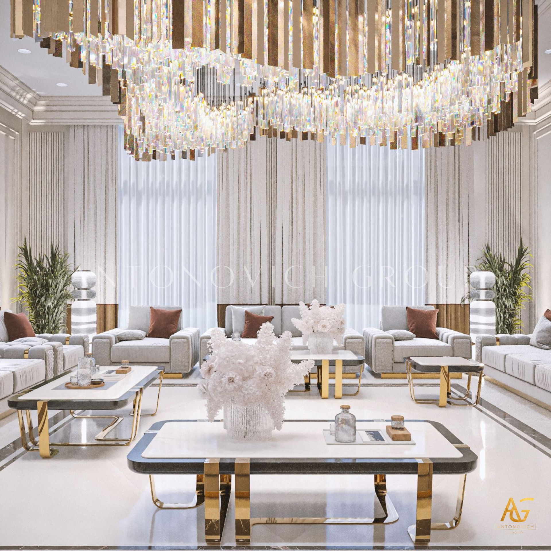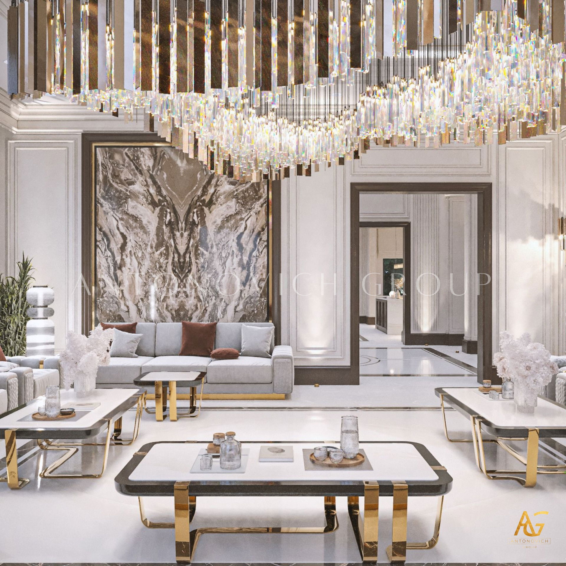 The basis of a beautiful and luxurious interior story that interior designers Abu Dhabi told, became a living room . Here closely and harmoniously the interior design of the living room and dining hall are intertwined. Cuddly and festive mood is set with the luxurious staircase with graceful contours. Hall welcomes guests with an exquisite fountain, a massive crystal chandelier and a cozy seating area by the fireplace. The living room design gives a clear idea that this house belongs to the people with impeccable taste and a keen understanding of beauty. Interior Designers Abu Dhabi offered a lot of unique beauty solutions. This based an exclusive and luxurious character of the house interior. Masterly performing the original architectural solutions with the help of the living room design stressed the advantages of planning of the multi-level floors and ceilings. The decor of the walls look elegant with marble columns with stucco capitals, added with a gloss mirrored panels with facet. Separate semicircular portal is dedicated to musical evenings. The composition with white piano on a carved marble floor looks very expressive. Dining area is located on a low podium, which is emphasized with lines of blue LED backlight. In general palette of warm shades with rich colors furniture blended that is upholstered in noble velvet of shade of red wine. Living room design harmoniously integrates respectable classics and festive art deco. Luxury mood that is created with the interior designers Abu Dhabi reflects the love of life, understanding of the world of luxury by home owners.