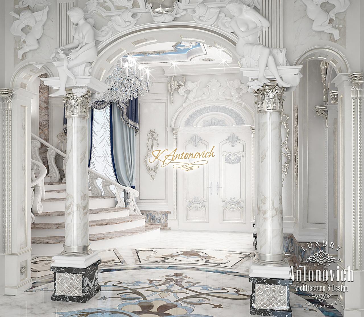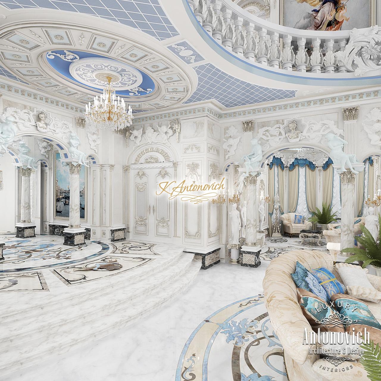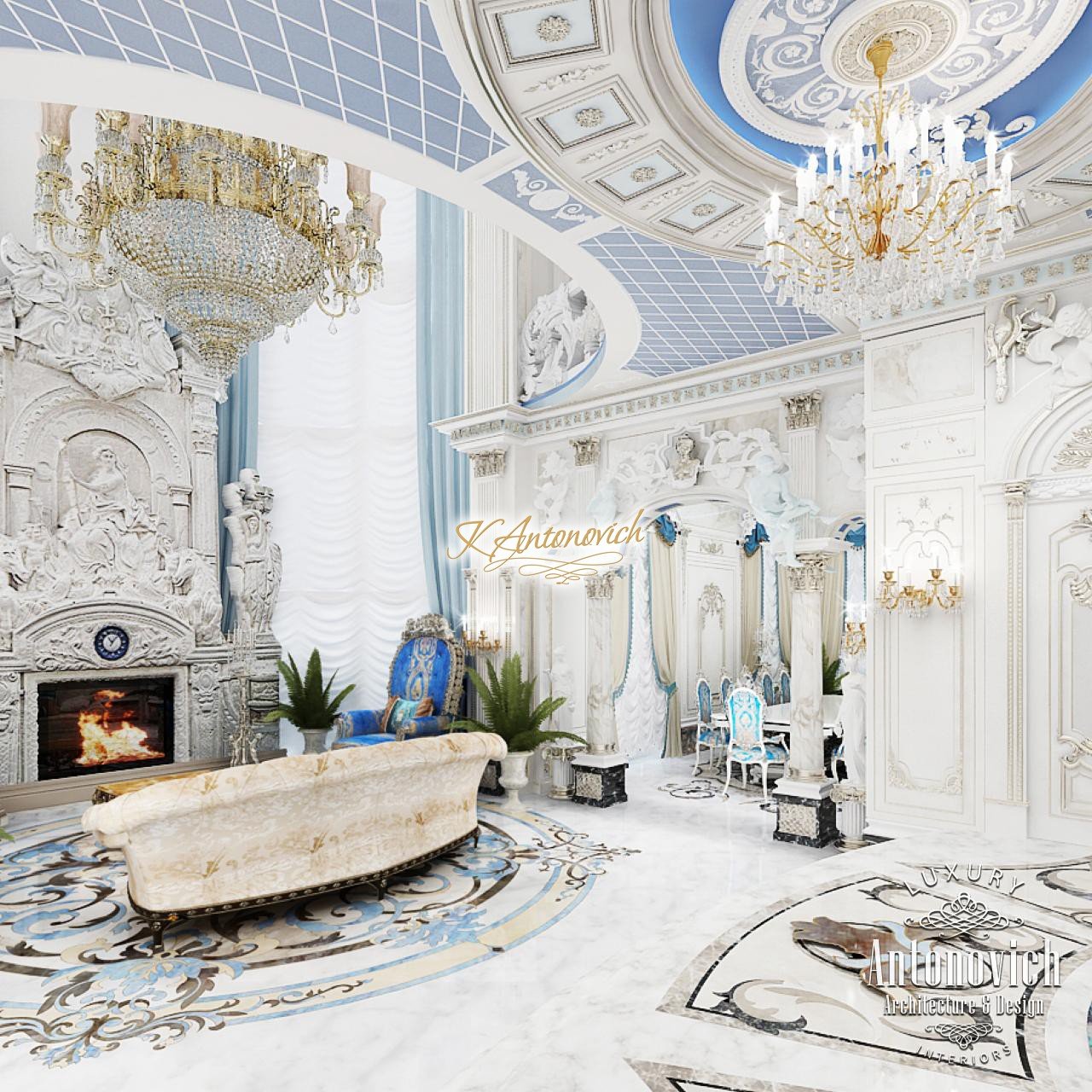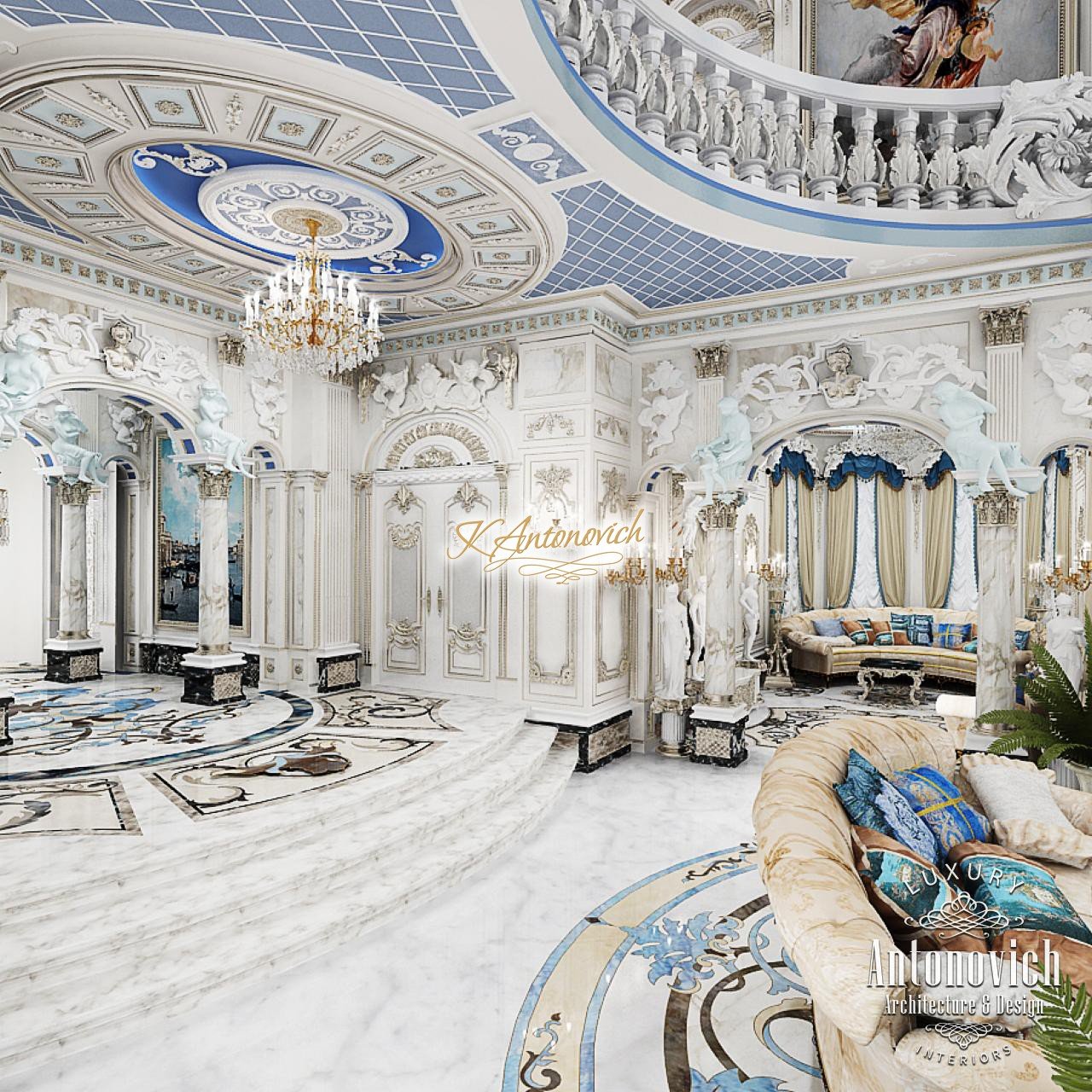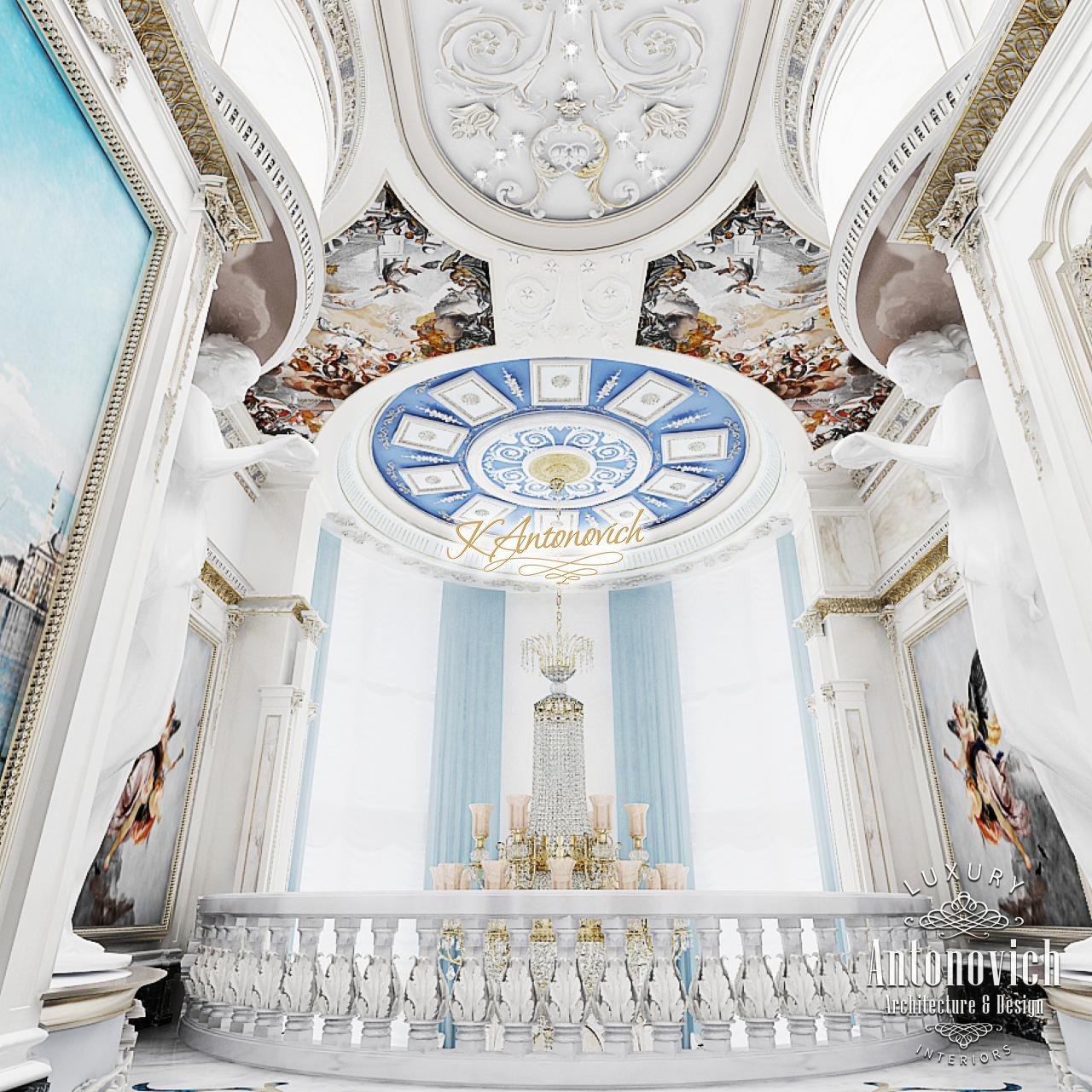 The grand and majestic villa project in Abu Dhabi is a masterpiece of creativity of talented interior designers from design studio Luxury Antonovich Design. The interior, which can be enjoyed forever. The interior, which gives a sense of aesthetic pleasure. The interior, about which you can write a poem or a symphony. A large and close family with aristocratic roots is lucky to have such a luxurious villa interior Abu Dhabi. Interior designers skillfully twist the classical style, Baroque and Rococo, complementing the subtle hints of Oriental style. The floor is made of natural marble with carved patterns, like a painting of a great artist. Thr floor on the ground floor can be admired from the height of the balustrade of the second floor. A delightful fireplace composition looks luxurious. Majestic image of the interior is complemented with rich decor of walls and ceilings. Interior designers perfectly organized a large spaceof the house, emphasizing the benefits of the architectural plan. The interior design combines stunning grandeur of the palace with the warmth of contemporary comfort. Furniture upholstered in noble creamy velvet and luxurious drapes of silk in soft blue hues look home-warm and cozy. Massive crystal chandelier fills the interior with festive mood. Noble status of respectable apartment is perfectly emphasized with the art of painting in the decoration of the walls and ceiling in the best traditions of the Renaissance. The interior design from the studio Luxury Antonovich Design is a fine art that will go in history and will delight more than one generation.