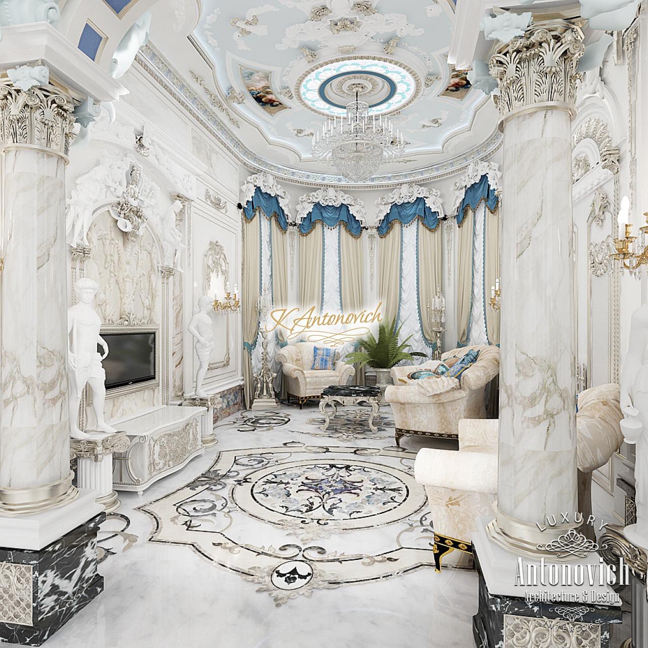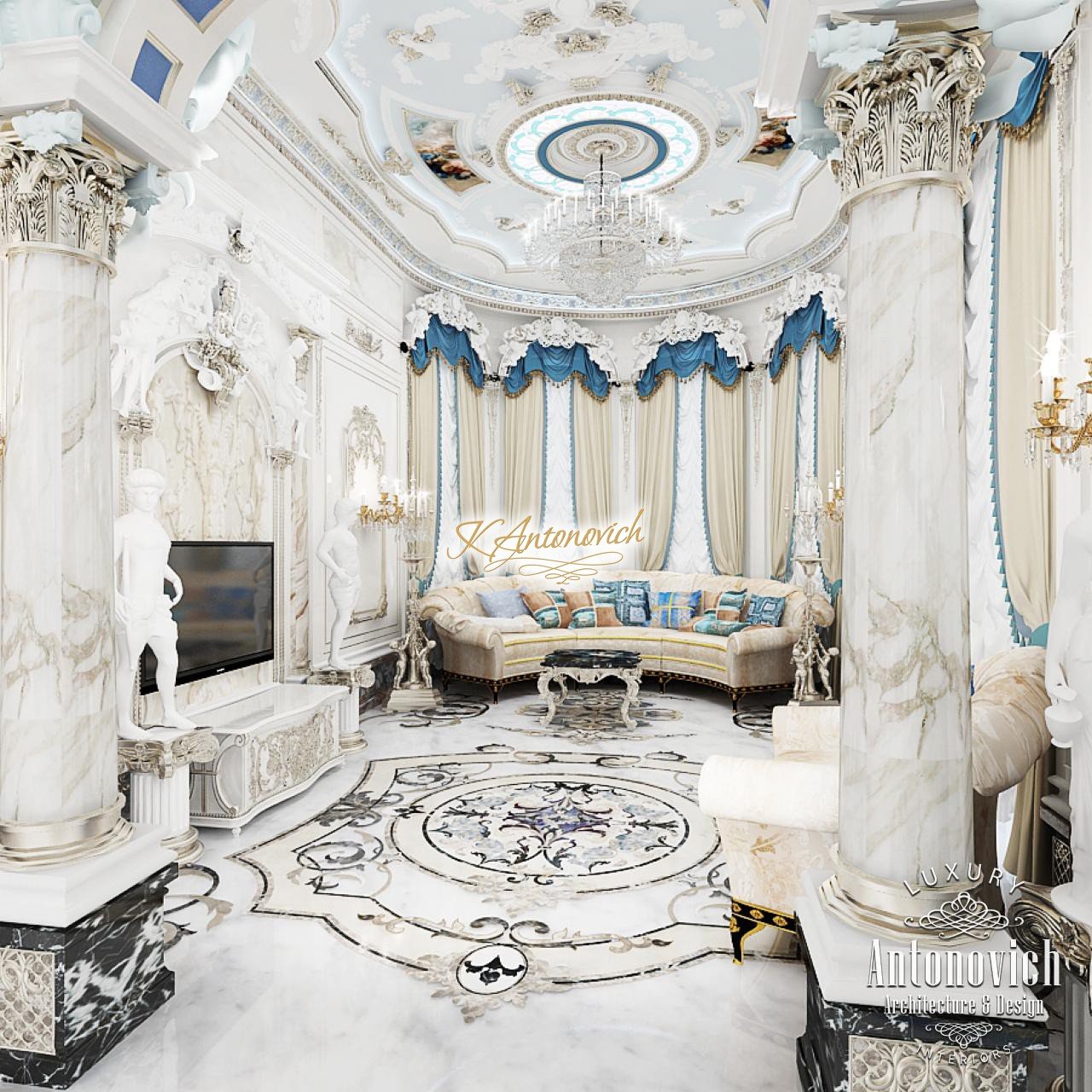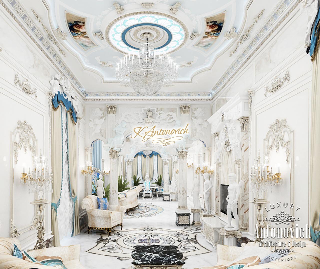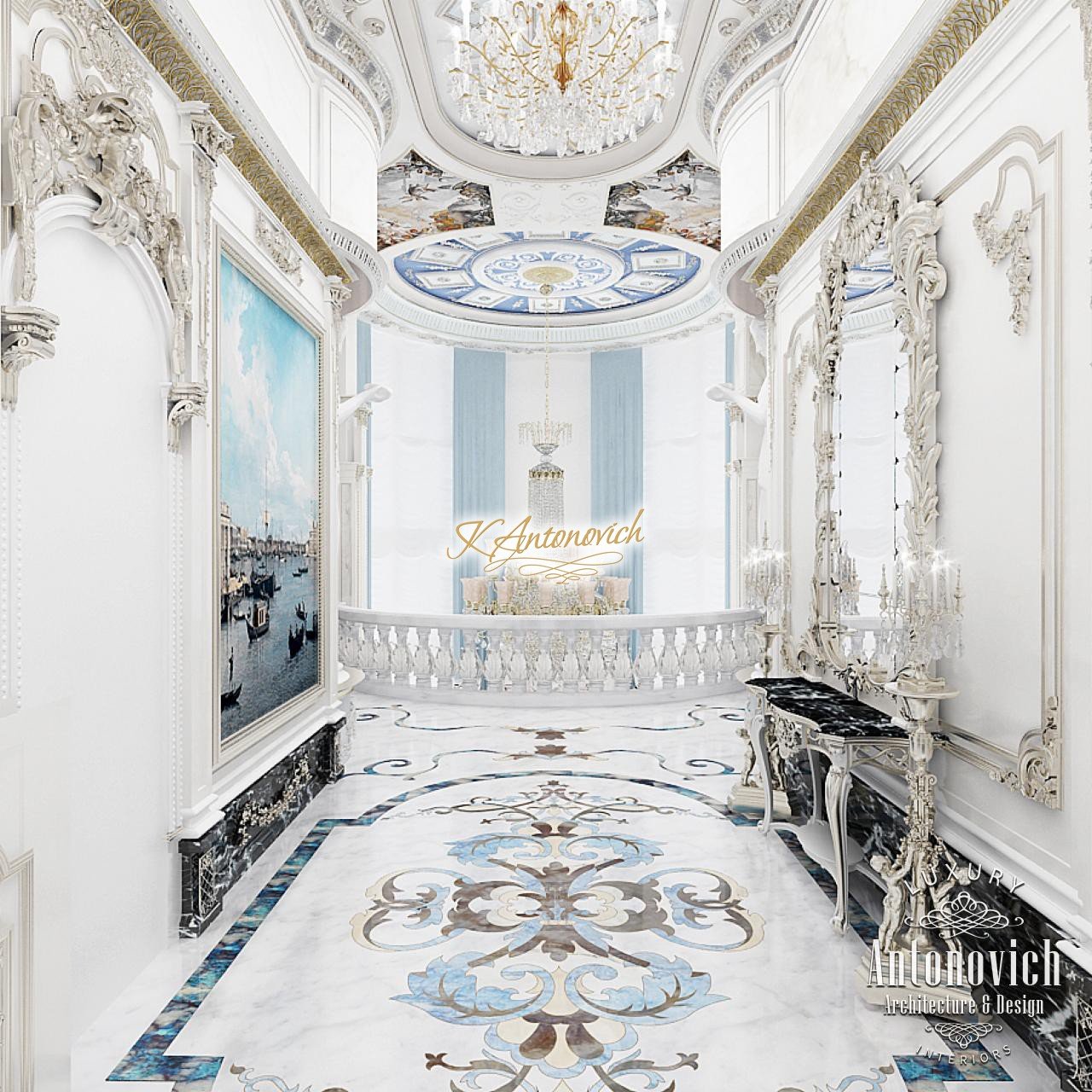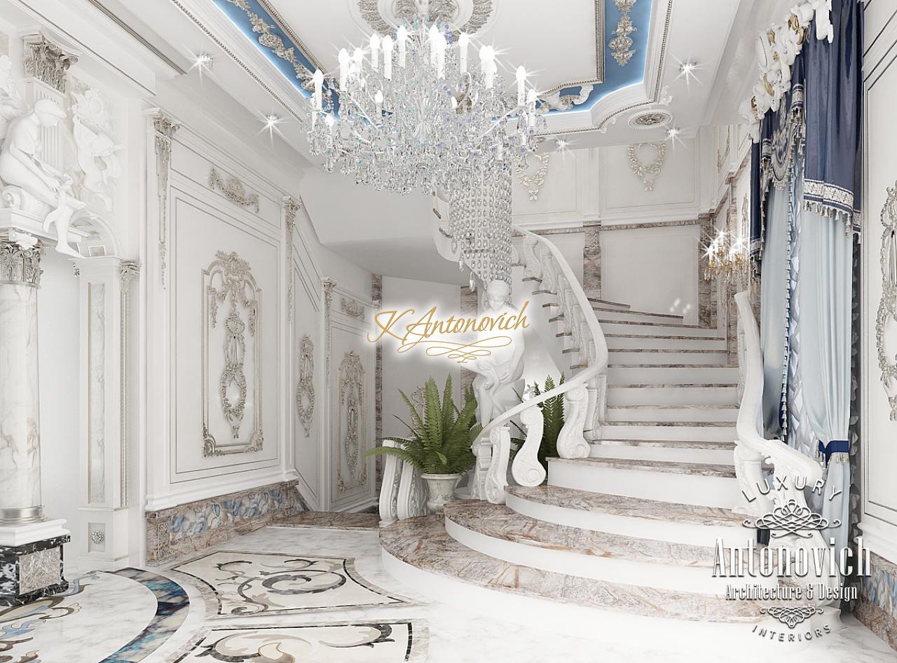 The grand and majestic villa project in Abu Dhabi is a masterpiece of creativity of talented interior designers from design studio Luxury Antonovich Design. The interior, which can be enjoyed forever. The interior, which gives a sense of aesthetic pleasure. The interior, about which you can write a poem or a symphony. A large and close family with aristocratic roots is lucky to have such a luxurious villa interior Abu Dhabi. Interior designers skillfully twist the classical style, Baroque and Rococo, complementing the subtle hints of Oriental style. The floor is made of natural marble with carved patterns, like a painting of a great artist. Thr floor on the ground floor can be admired from the height of the balustrade of the second floor. A delightful fireplace composition looks luxurious. Majestic image of the interior is complemented with rich decor of walls and ceilings. Interior designers perfectly organized a large spaceof the house, emphasizing the benefits of the architectural plan. The interior design combines stunning grandeur of the palace with the warmth of contemporary comfort. Furniture upholstered in noble creamy velvet and luxurious drapes of silk in soft blue hues look home-warm and cozy. Massive crystal chandelier fills the interior with festive mood. Noble status of respectable apartment is perfectly emphasized with the art of painting in the decoration of the walls and ceiling in the best traditions of the Renaissance. The interior design from the studio Luxury Antonovich Design is a fine art that will go in history and will delight more than one generation.