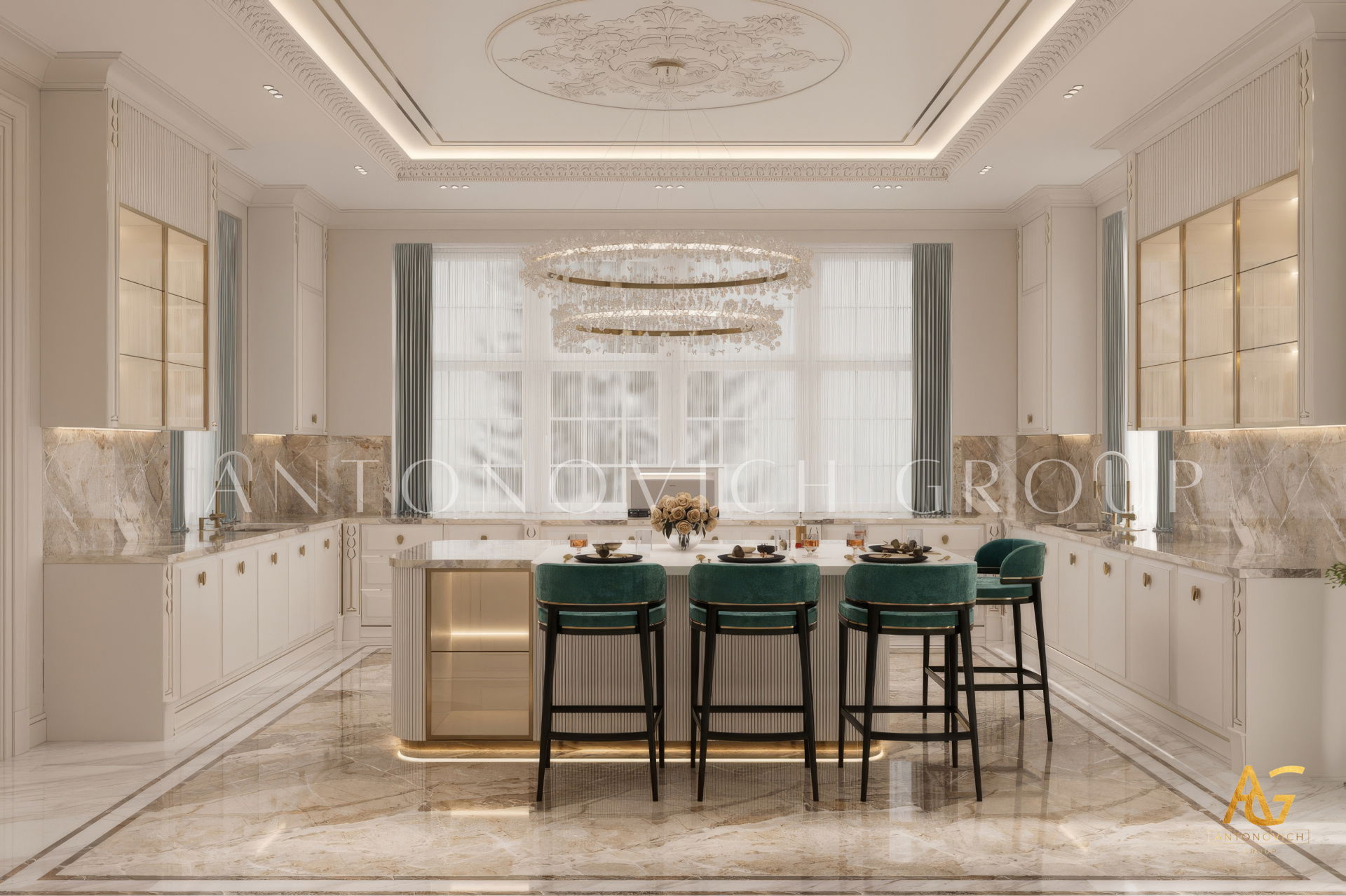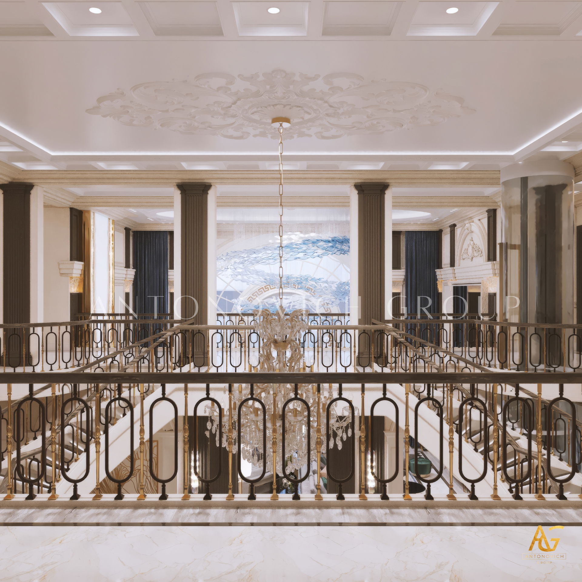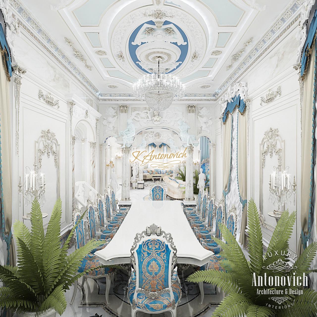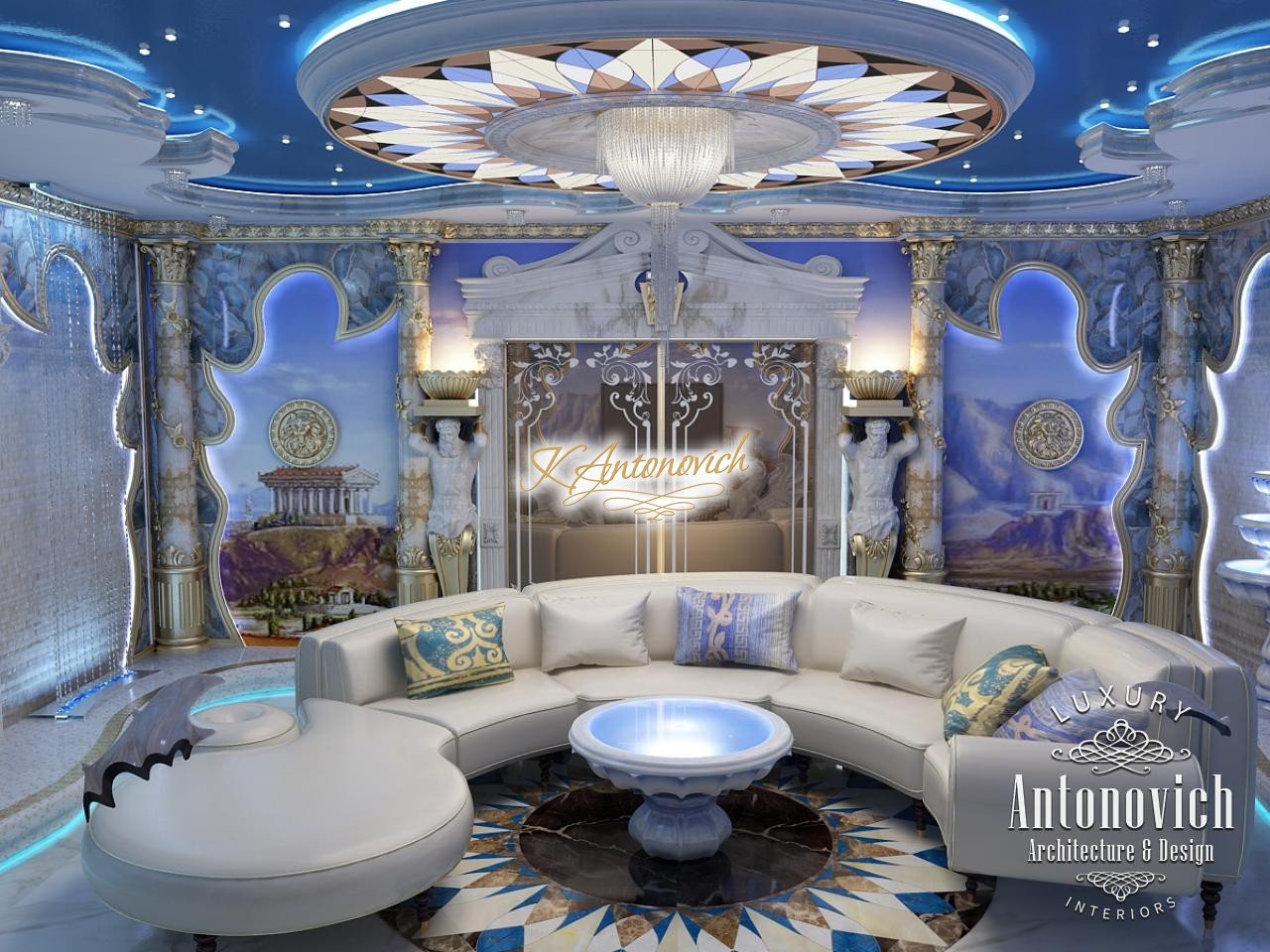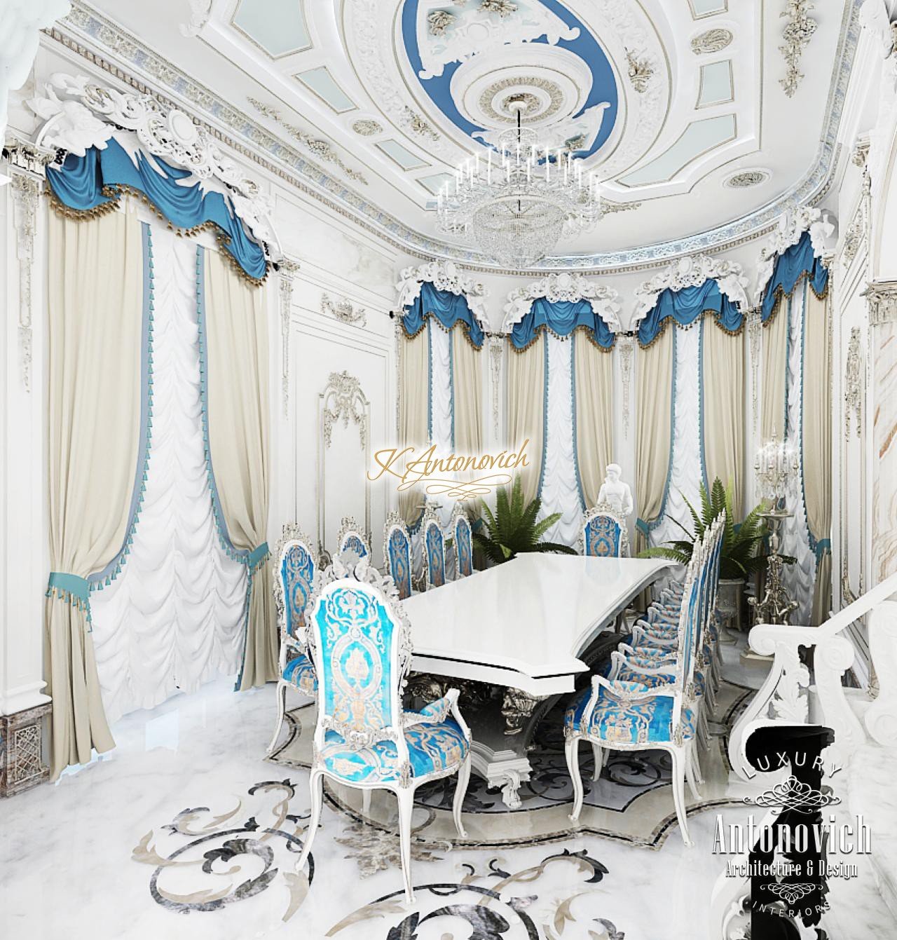 The grand and majestic villa project in Abu Dhabi is a masterpiece of creativity of talented interior designers from design studio Luxury Antonovich Design. The interior, which can be enjoyed forever. The interior, which gives a sense of aesthetic pleasure. The interior, about which you can write a poem or a symphony. A large and close family with aristocratic roots is lucky to have such a luxurious villa interior Abu Dhabi. Interior designers skillfully twist the classical style, Baroque and Rococo, complementing the subtle hints of Oriental style. The floor is made of natural marble with carved patterns, like a painting of a great artist. Thr floor on the ground floor can be admired from the height of the balustrade of the second floor. A delightful fireplace composition looks luxurious. Majestic image of the interior is complemented with rich decor of walls and ceilings. Interior designers perfectly organized a large spaceof the house, emphasizing the benefits of the architectural plan. The interior design combines stunning grandeur of the palace with the warmth of contemporary comfort. Furniture upholstered in noble creamy velvet and luxurious drapes of silk in soft blue hues look home-warm and cozy. Massive crystal chandelier fills the interior with festive mood. Noble status of respectable apartment is perfectly emphasized with the art of painting in the decoration of the walls and ceiling in the best traditions of the Renaissance. The interior design from the studio Luxury Antonovich Design is a fine art that will go in history and will delight more than one generation.