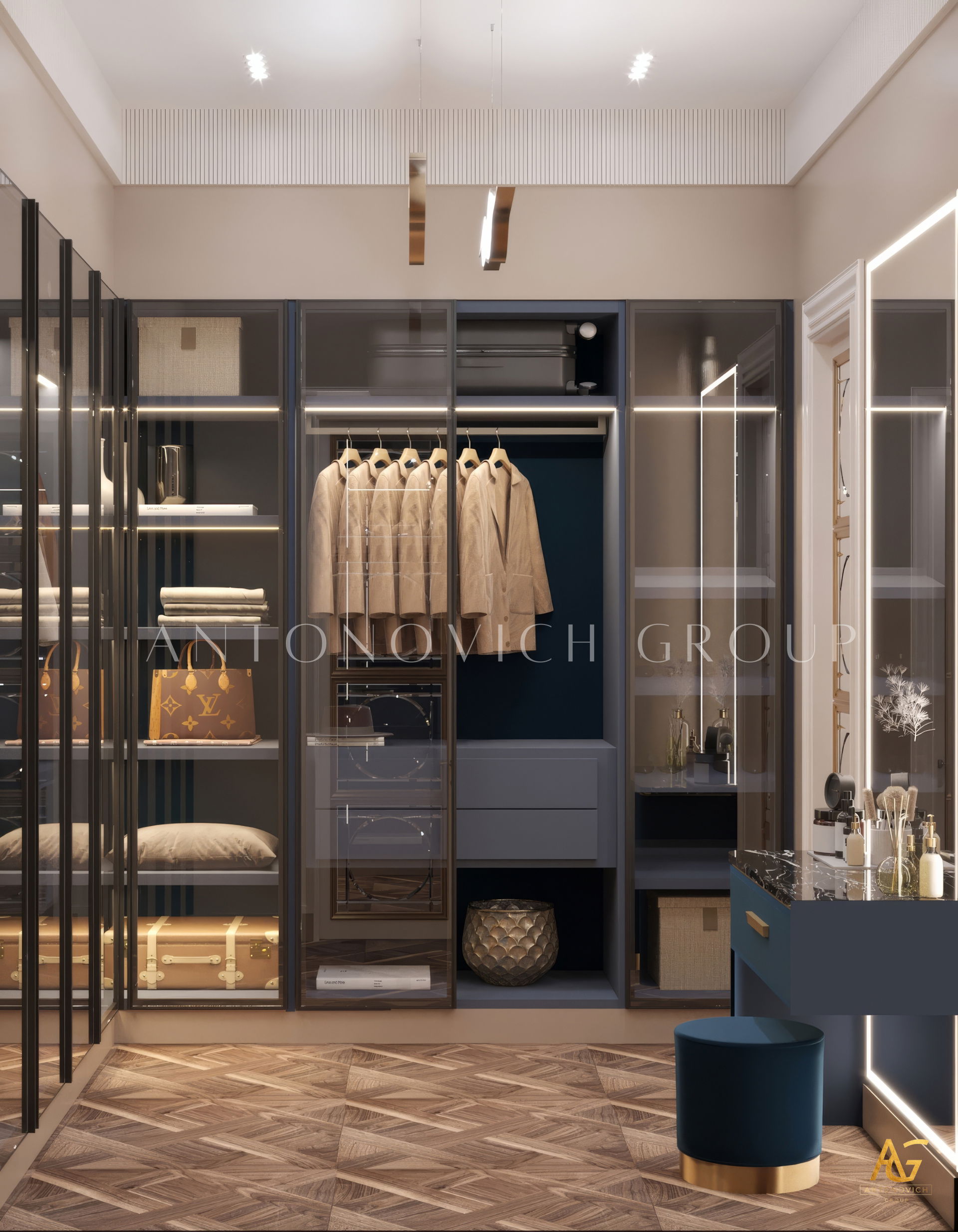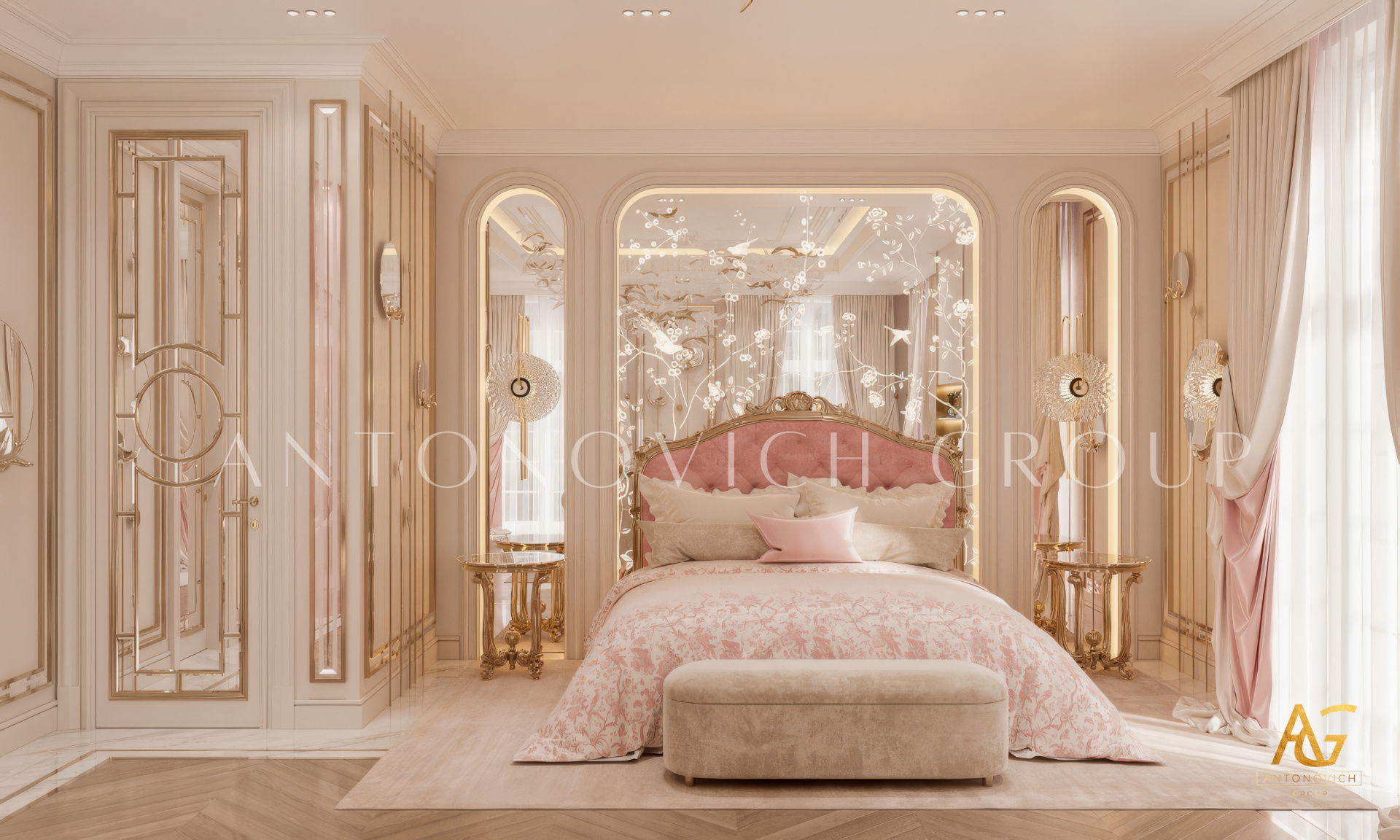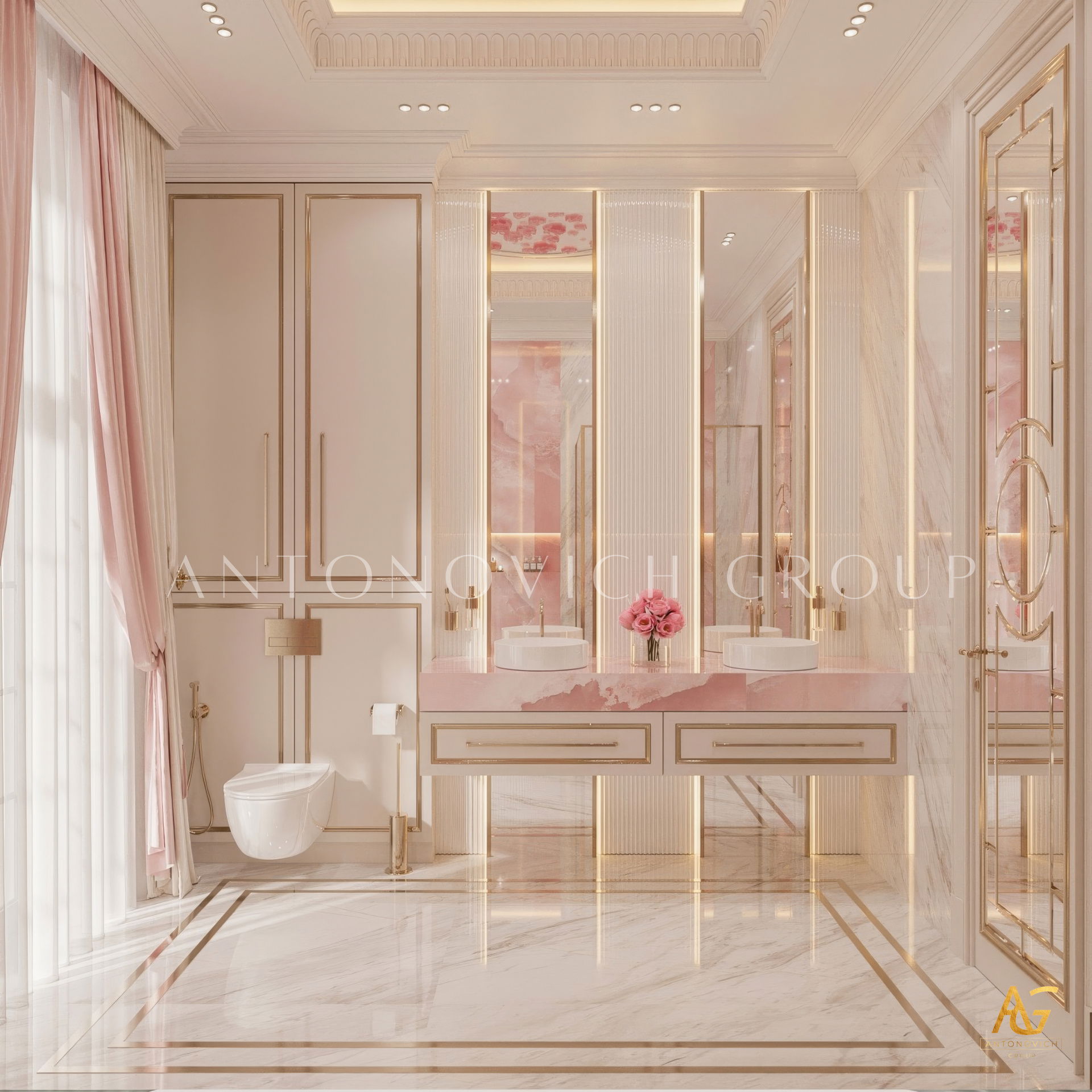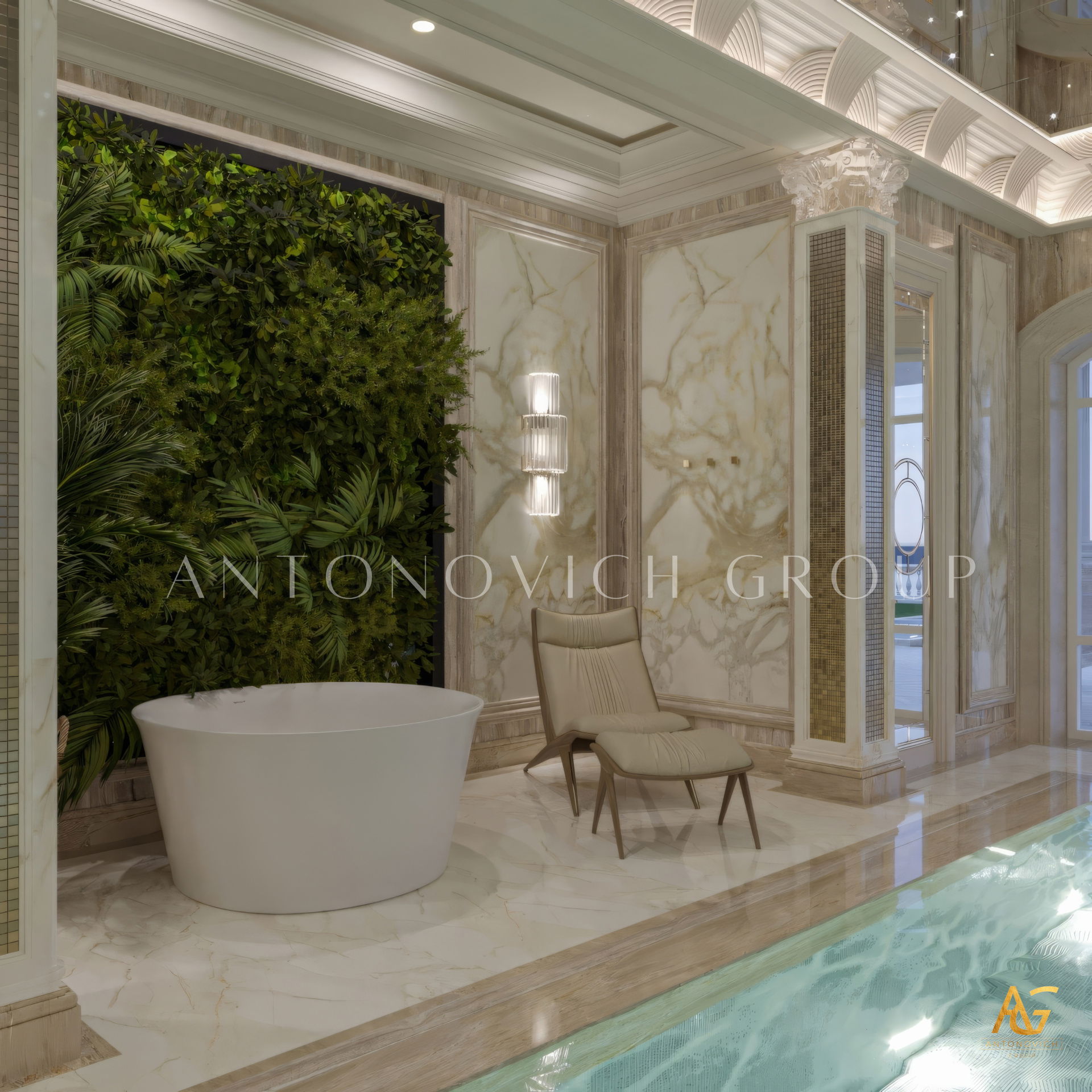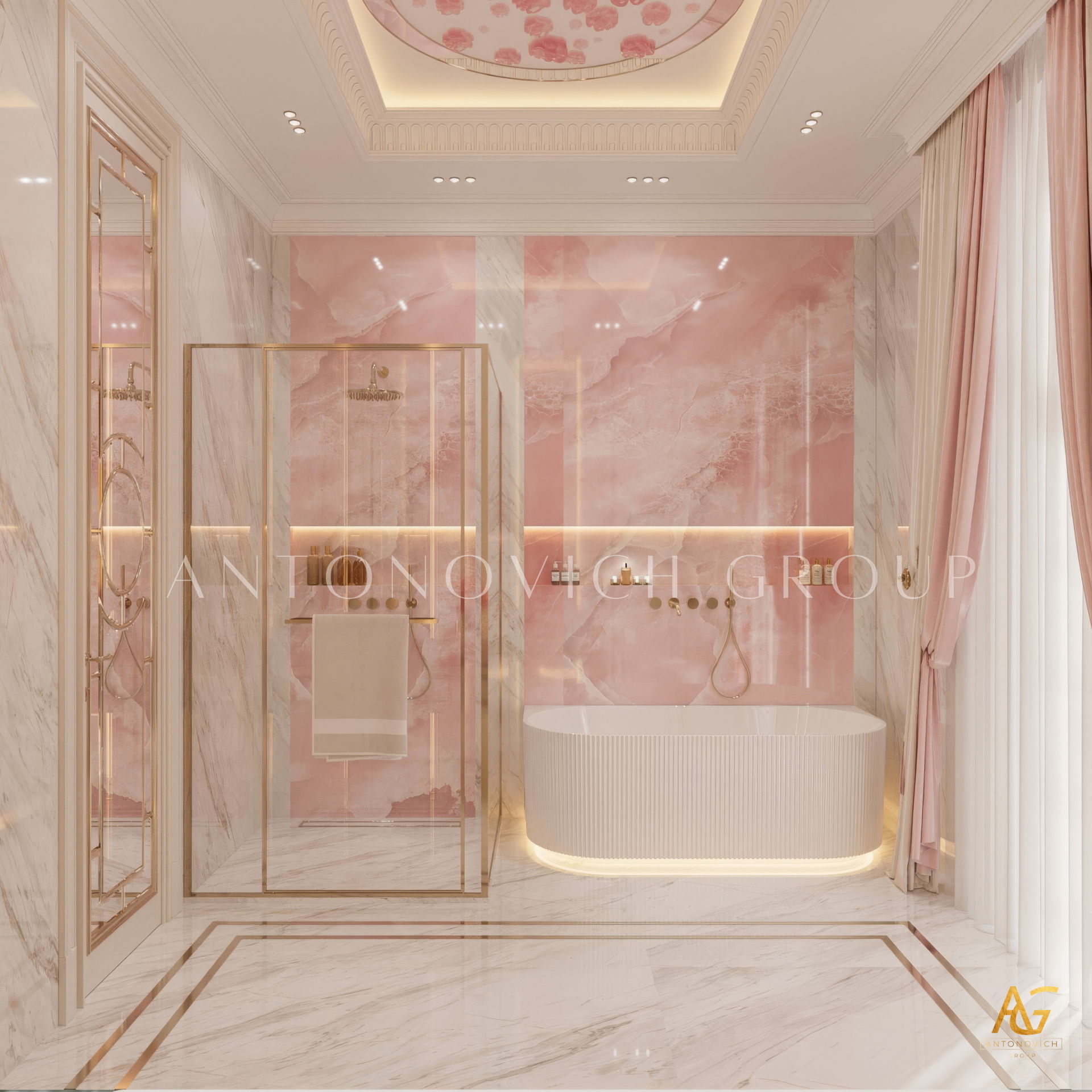 The grand and majestic villa project in Abu Dhabi is a masterpiece of creativity of talented interior designers from design studio Luxury Antonovich Design. The interior, which can be enjoyed forever. The interior, which gives a sense of aesthetic pleasure. The interior, about which you can write a poem or a symphony. A large and close family with aristocratic roots is lucky to have such a luxurious villa interior Abu Dhabi. Interior designers skillfully twist the classical style, Baroque and Rococo, complementing the subtle hints of Oriental style. The floor is made of natural marble with carved patterns, like a painting of a great artist. Thr floor on the ground floor can be admired from the height of the balustrade of the second floor. A delightful fireplace composition looks luxurious. Majestic image of the interior is complemented with rich decor of walls and ceilings. Interior designers perfectly organized a large spaceof the house, emphasizing the benefits of the architectural plan. The interior design combines stunning grandeur of the palace with the warmth of contemporary comfort. Furniture upholstered in noble creamy velvet and luxurious drapes of silk in soft blue hues look home-warm and cozy. Massive crystal chandelier fills the interior with festive mood. Noble status of respectable apartment is perfectly emphasized with the art of painting in the decoration of the walls and ceiling in the best traditions of the Renaissance. The interior design from the studio Luxury Antonovich Design is a fine art that will go in history and will delight more than one generation.