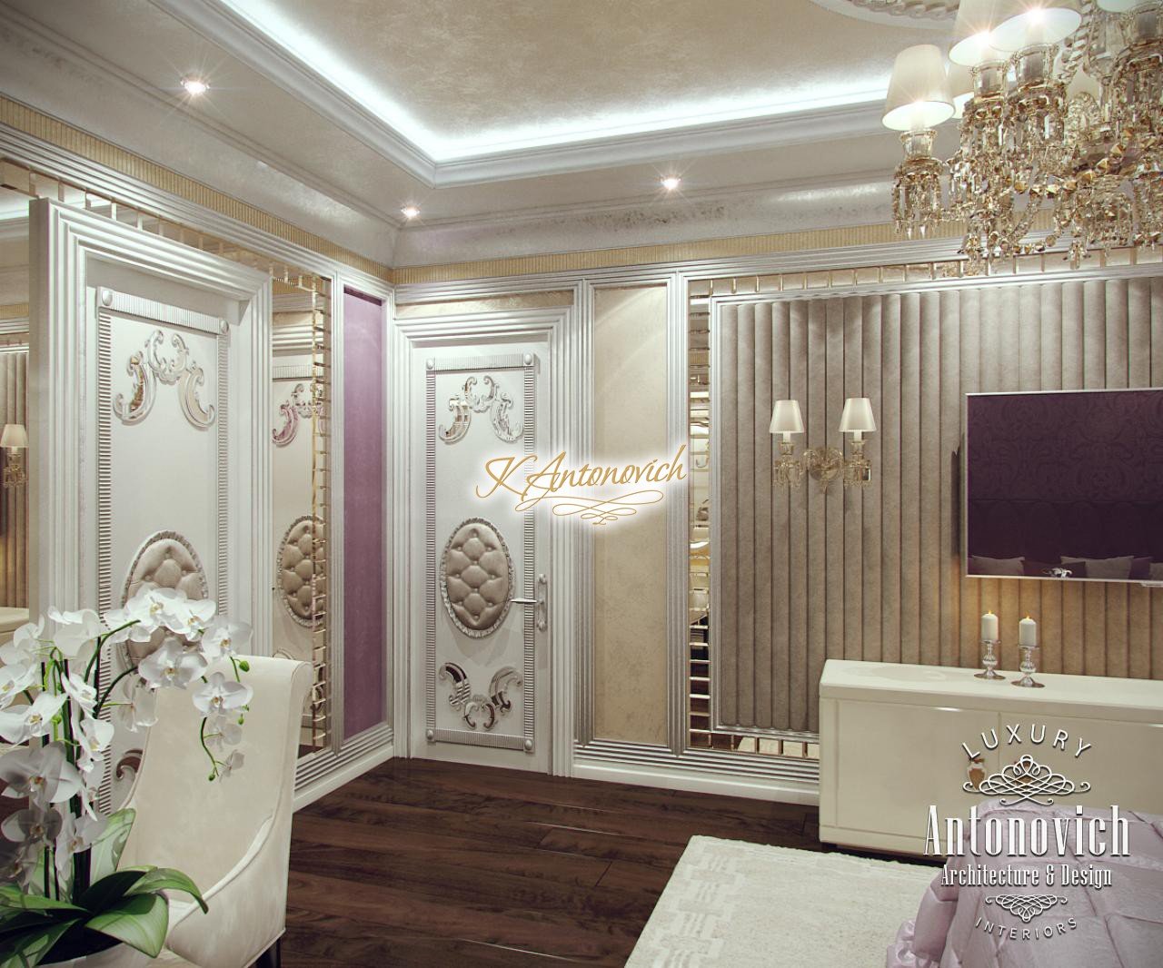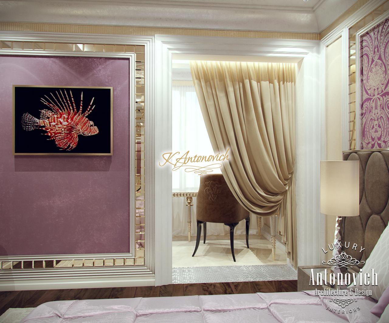 In each square meter of bedroom interior, you can admire endlessly. Interior design studio Dubai Luxury Antonovich design reflects the latest fashion trends and unique studio projects often become the basis for new fashion trends. In this design amazing combination of ingenious design ideas, wishes of customers and spectacular decoration reflect. Bedroom design reflects a charming image of the hostess. The spacious apartment is full of warmth and freshness. Interior Designers Dubai combine motifs of modern classics and art deco to create a cozy and unique image. Most of all, the classical style meets the ceiling design. It is decorated with stucco of silk texture, which shimmers under the play of light of elegant chandeliers. Luxurious swirls of stucco decoration complement the image of the ceiling. In the walls decor there is improvisation with luxurious materials and textures. It perfectly combines luxury textile and decorative plaster. The elegant bedroom look is complemented with mirror elements. Dark wood floor of valuable species delightfully contrasted with soft natural cream-colored carpet. And, of course, the main decoration of the bedroom interior was a large comfortable bed. Its high upholstered headboard extends almost the entire width of the wall. Noble velvet upholstery of chocolate shade with shallow marks complement the charming look of the bedroom. In the bedroom interior we take into account such additional factors as the working area, according to the wishes of customers.