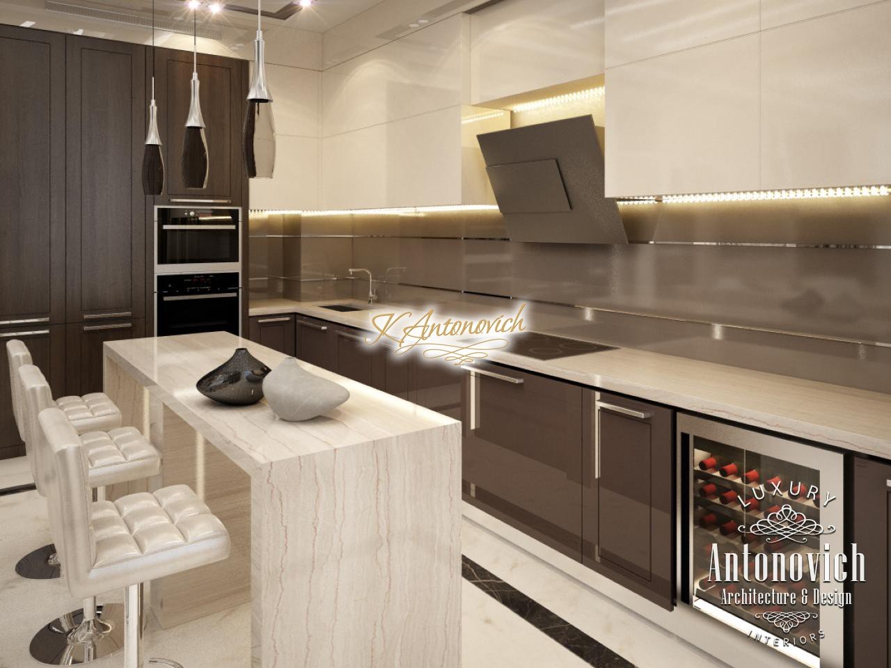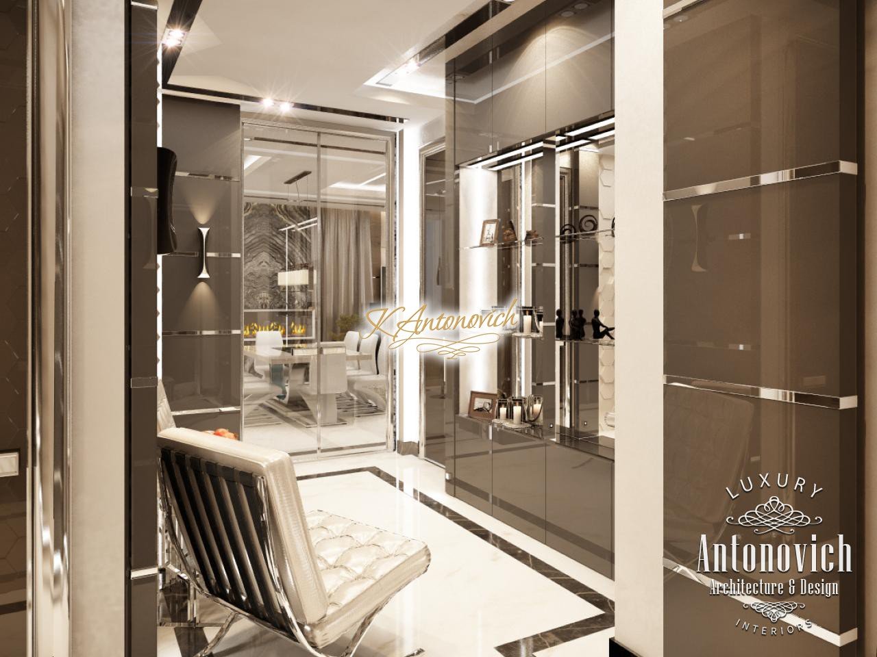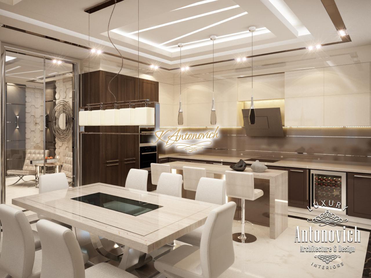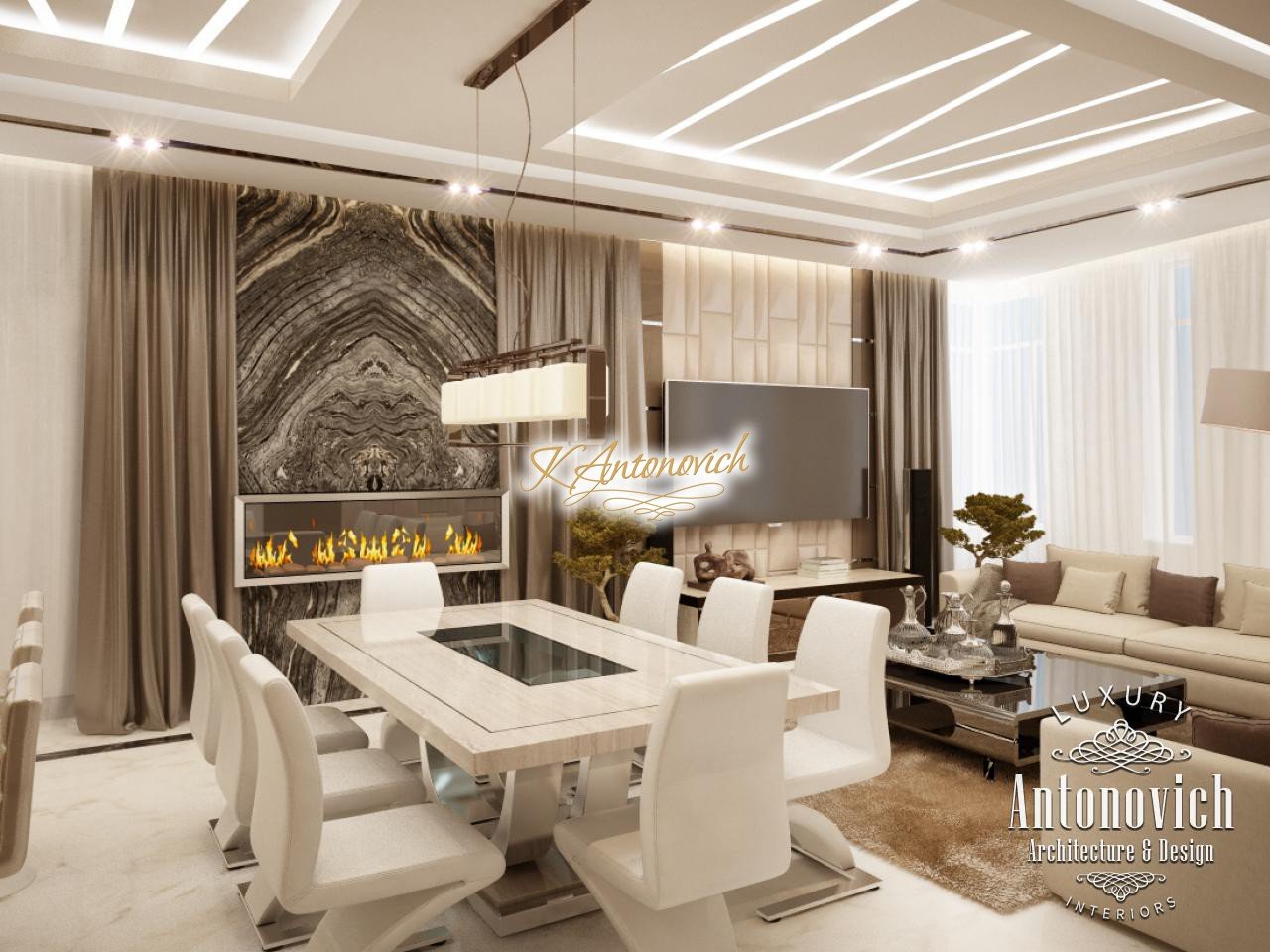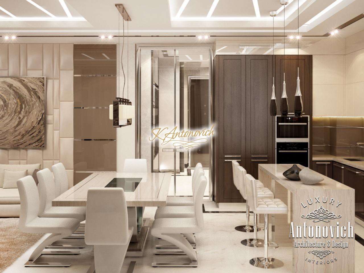 Interior Designers Dubai in this project have combined contemporary style with light accents and eco-minimalism. The interior is impressive with conciseness and clarity of lines. Each square meter pleases the eye. The look, just slip on features of a cozy luxurious interior, which gives a sense of aesthetic pleasure. Apartment interior design Dubai clearly fulfills all the wishes of our customers and their desire to get a cozy oasis full of life. Modern interior design tends to open space. In this project kitchen and dining room are harmoniously combined with luxurious living room. The of dining room design is characterized with particularly warm mood. This is underlined with a modern fireplace, which is built into the wall, decorated with natural stone. On this bright background large dining table looks wonderful, which is surrounded by stylish high chairs upholstered in cream shade. Stylish and functional kitchen with glossy facades literally dissolves into space of the cozy apartment. The combination of cream and chocolate hues fills the kitchen interior with warmth and tenderness. This softness is elegantly compensated with dynamic and expressive ceiling design. The snow-white expanse is decorated with narrow niches with illumination and complemented by original chandeliers in a modern style. Apartment Design Dubai gives the opportunity to look into the future of luxury and warmth of home comfort.