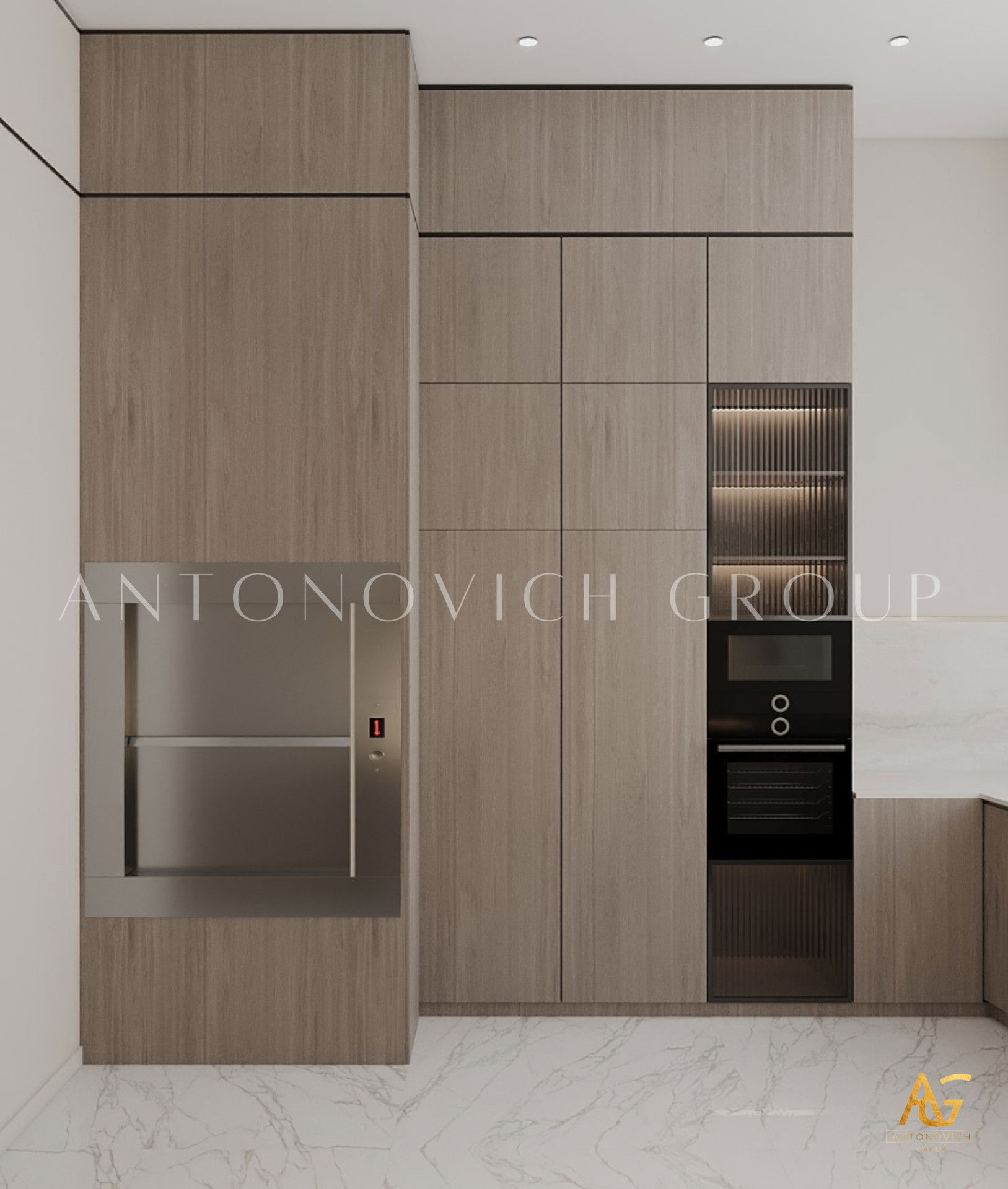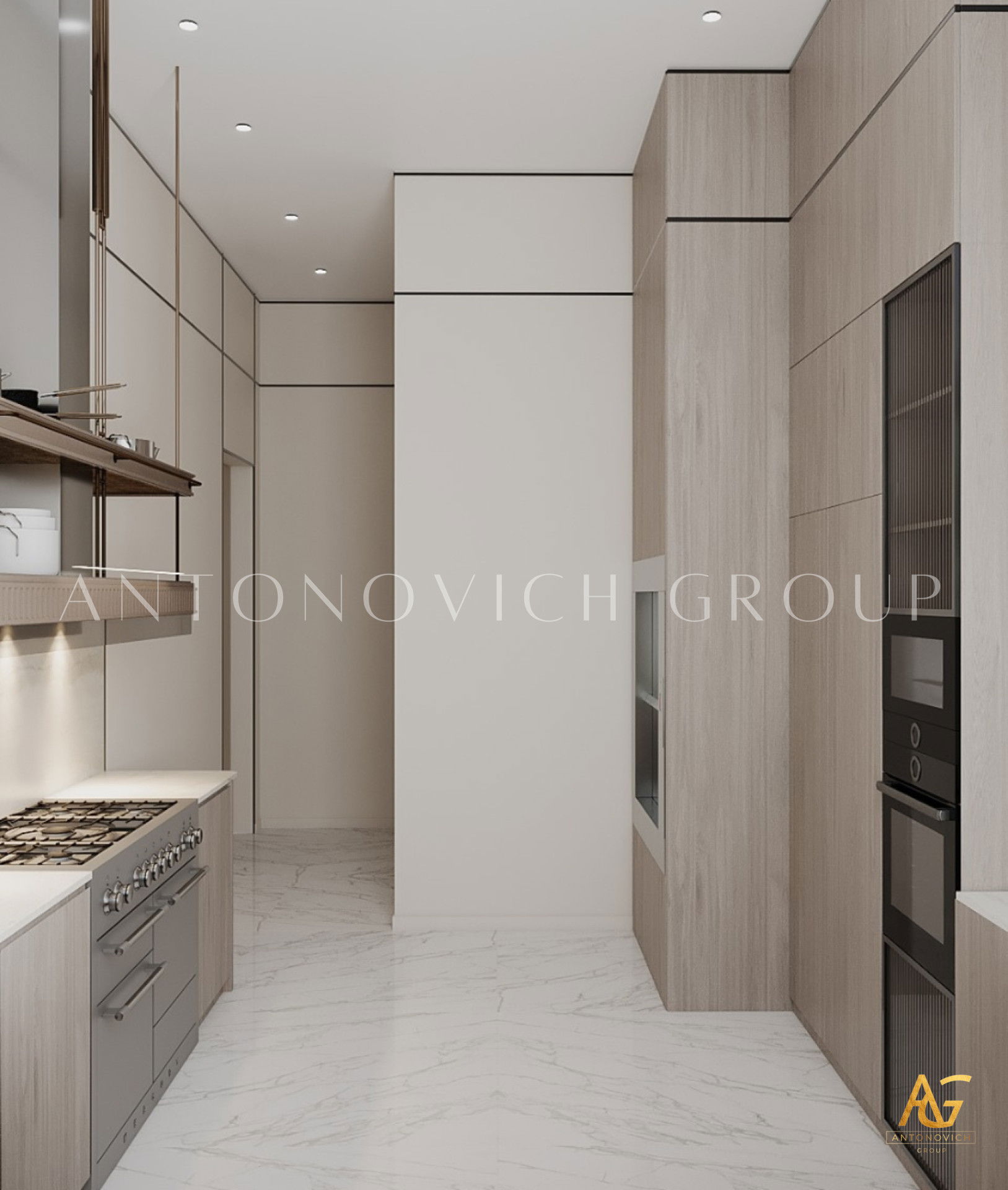 Luxury interior design from studio Luxury Antonovich Design meets the highest international standards. It's a subtle interweaving of tradition, innovation and ingenious designs, evident in every project of the design studio in Dubai. Today fashionable is absolute comfort and luxury with a bright character. And this villa project in Dubai corresponds to the fashion trends. Such projects themselves become the basis for future design. Kitchen Design has become a part of the space of the first floor in the luxury villa on the beach. Each square meter sets a romantic mood and a wonderful feeling of perpetual celebration of life. On the ground floor there are a living room with a seating area by the fireplace, a large dining room, and an exquisite kitchen. The interior has got purity of lines and shapes, perfect proportions and a perfect blend of colors. The kitchen area is separated from the other space with graceful marble columns and charming curtains. The kitchen interior itself is light and grace. Behind white facades with carved decor the most modern storage systems and the latest kitchen appliances are hidden. However, it's carefully veiled and it doesn't load the interior.