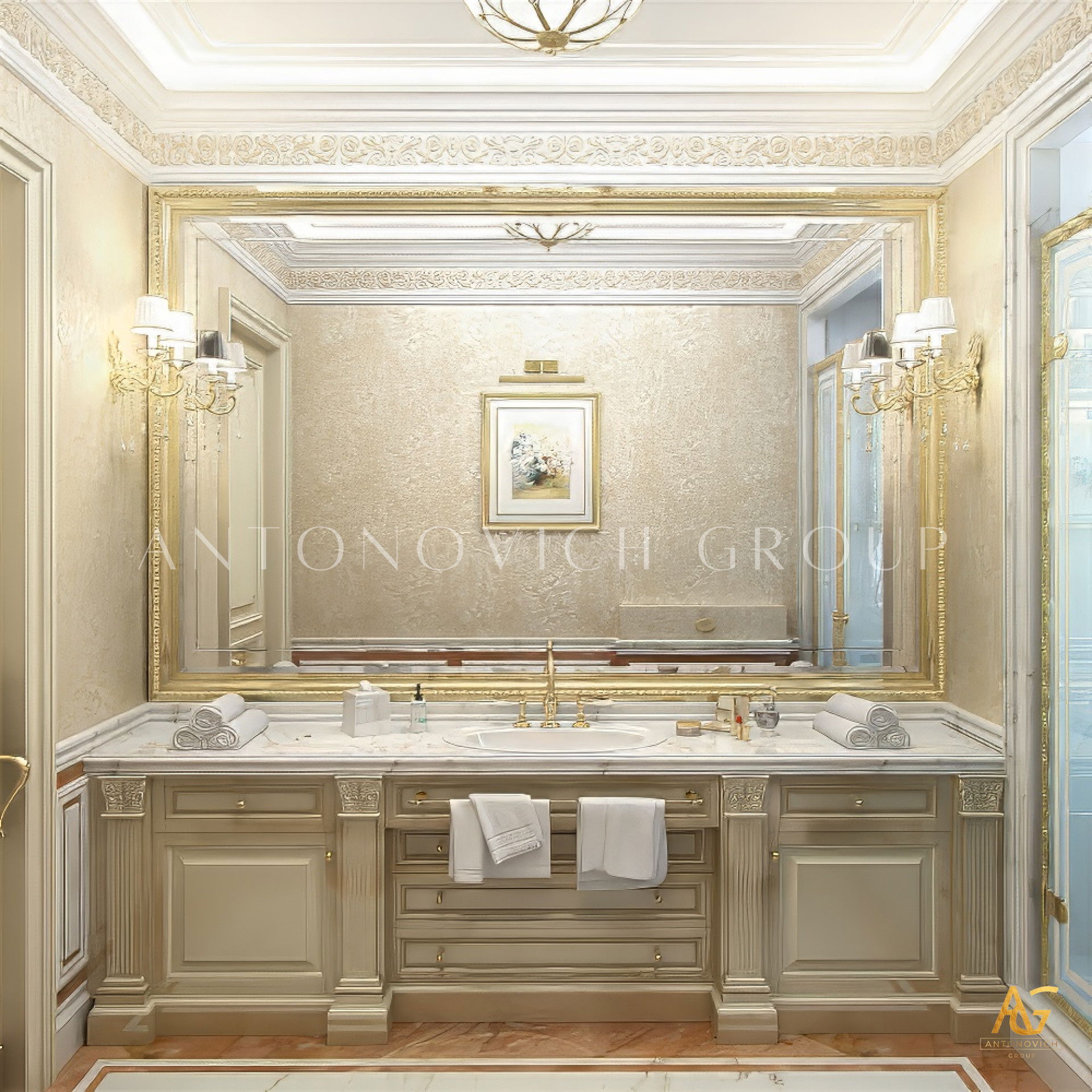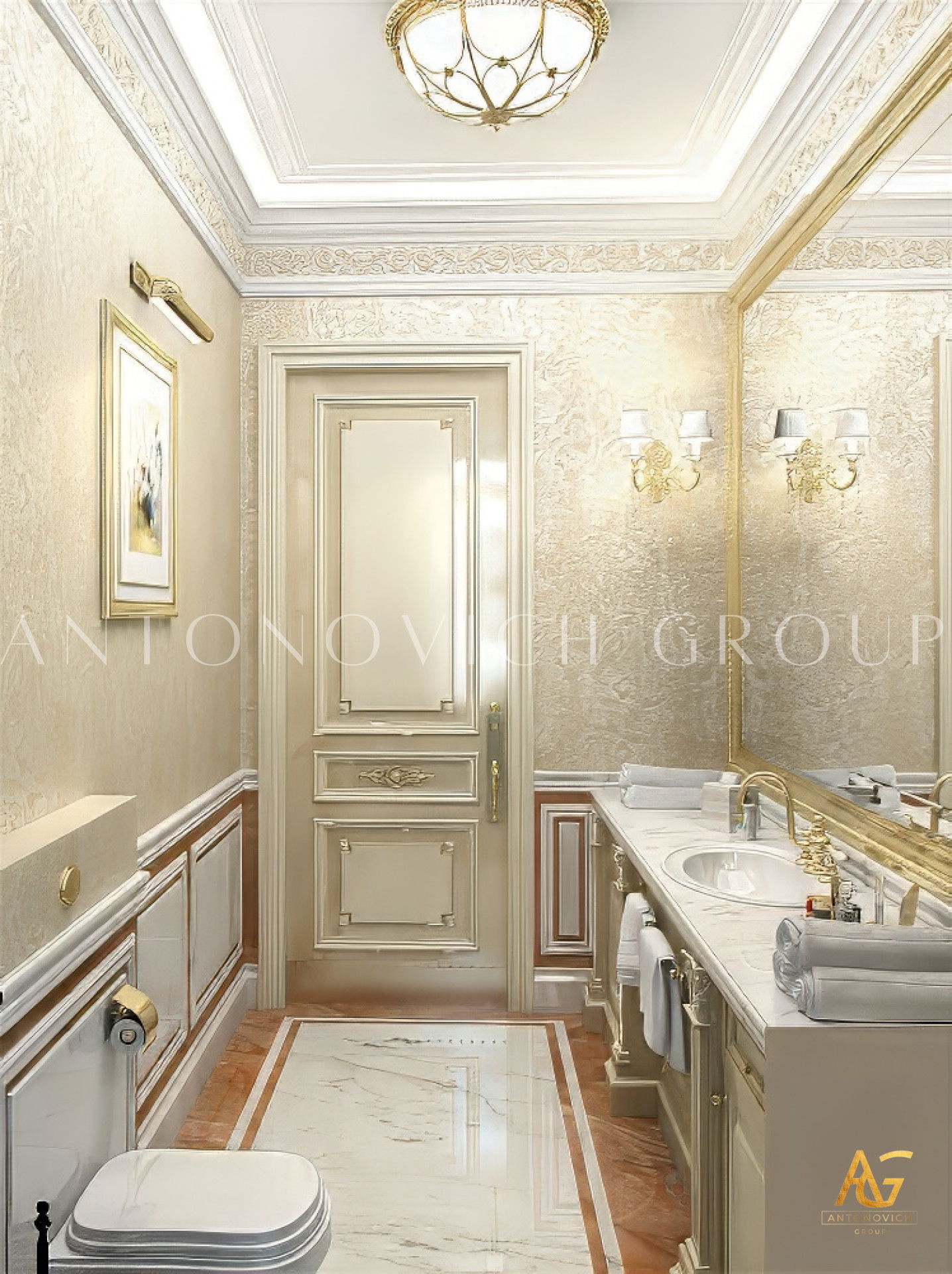 Bathroom interior design in an apartment can become a separate interior story and fundamentally different from the overall design concept.Bathroom - this is usually an isolated room in the house or apartment. In this project, interior designers of the studio Luxury Antonovich Design offered an original design solution for a bathroom in Japanese style.The design of the bathroom has become one of the wonderful moment of the dreams of the apartment’s owners about their own spa area. According to Japanese traditions, the bathroom has a round shape. To realize this moment, the abundance of natural wood in the Japanese interior, designers use the finishing of walls made of elite tiles with wood texture.Light marble in the decor of the walls and stylish decor panels are perfectly combined. The design project of the bathroom also acquired a touch of romance. Interior designers provided narrow shelves, where you can place candles and exquisite accessories.The unusual configuration of the room inspired the interior designers.Bathroom design has acquired versatility and artistic expressiveness. In general, the interior design of the bathroom became the embodiment of own mini spa at the apartments of the elite apartment. Elite elements of decor and accessories clearly demonstrate the high status of this interior. The interior design of the bathroom is filled with the charm of the warmth of nature itself and radiates the purity of true pleasures.