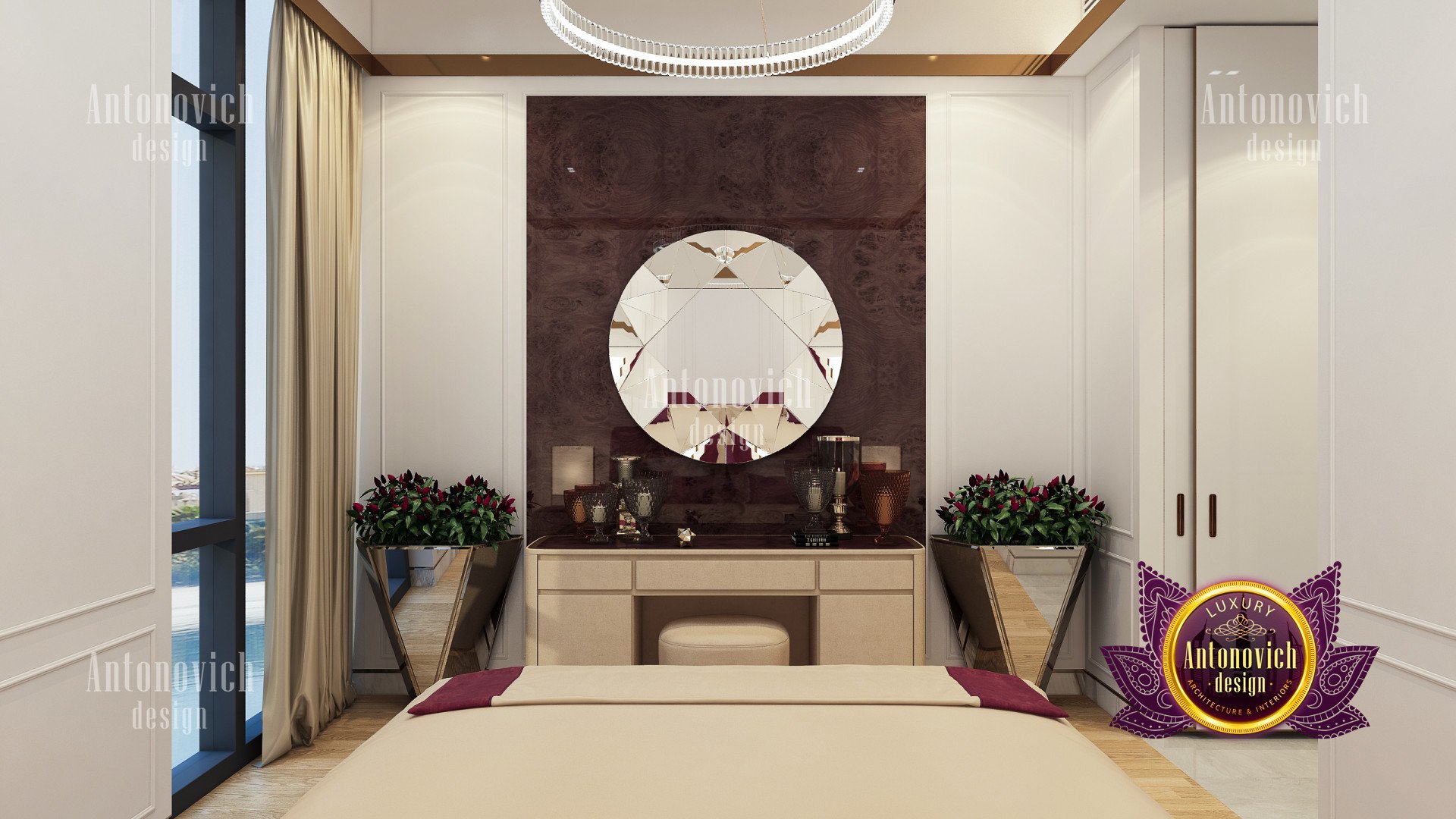 To decorate a more beautiful bedroom, Luxury Antonovich Design designers recommend adding candlesticks, mirrors and bedside tables. Decorate the walls with a large mirror. Our team skillfully uses white and cream color to decorate the walls in your bedroom.