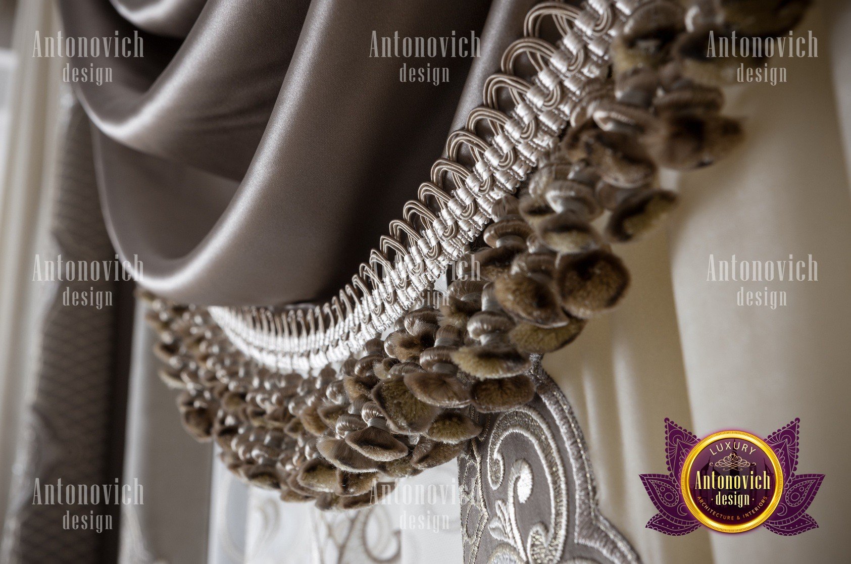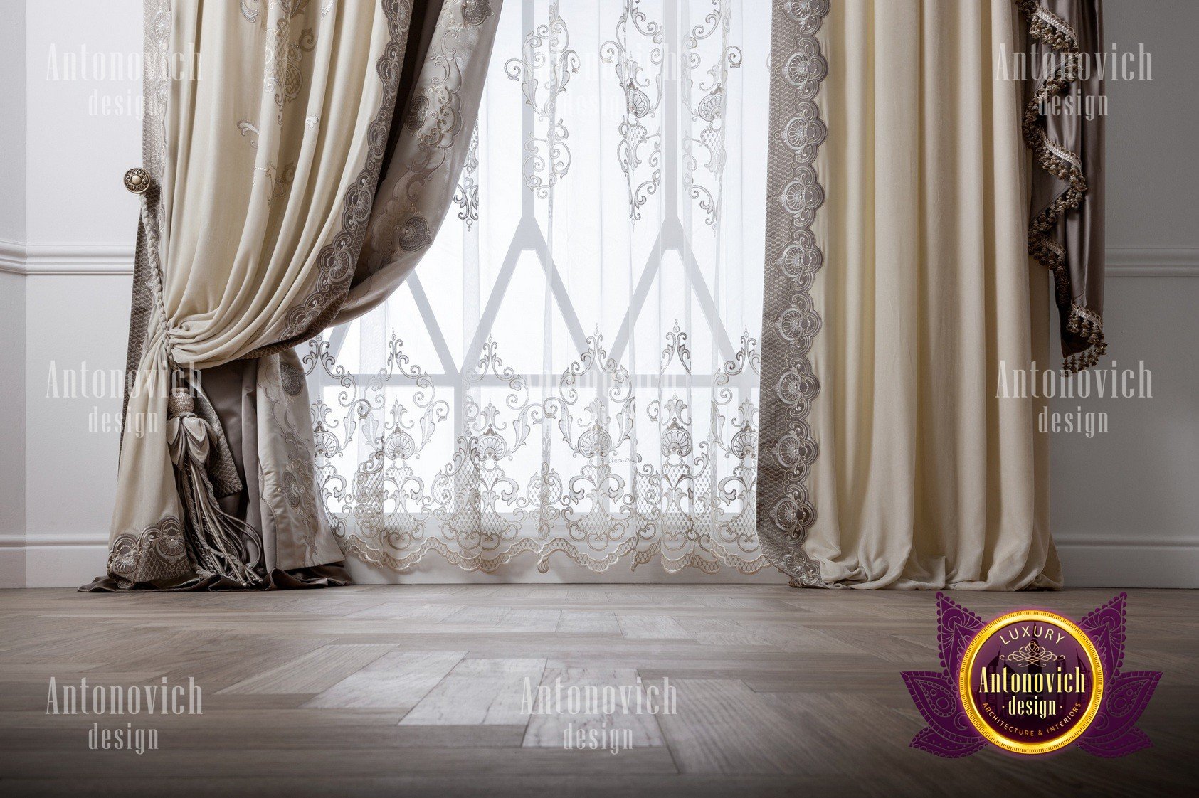 Our company Luxury Antonovich Design offers custom-made curtains. We have excellent materials that transform into elite models, beautiful cornices, as well as original accessories. This is how not just stylish decorations are created, but the very image of your apartment, house, restaurant, office or hotel.