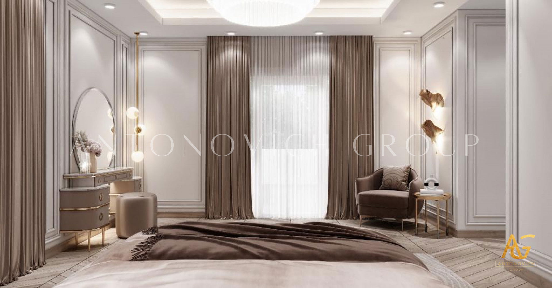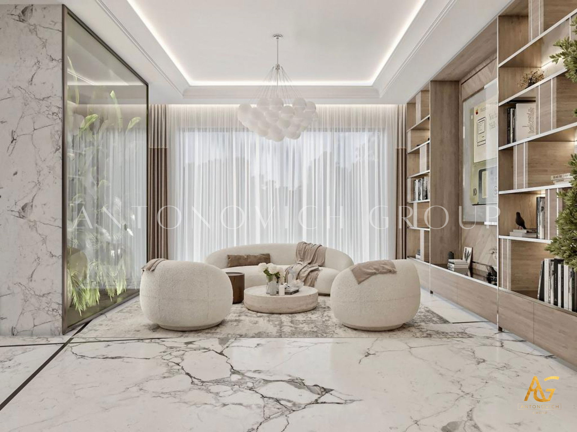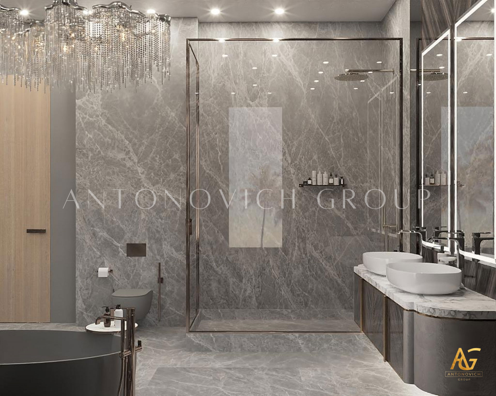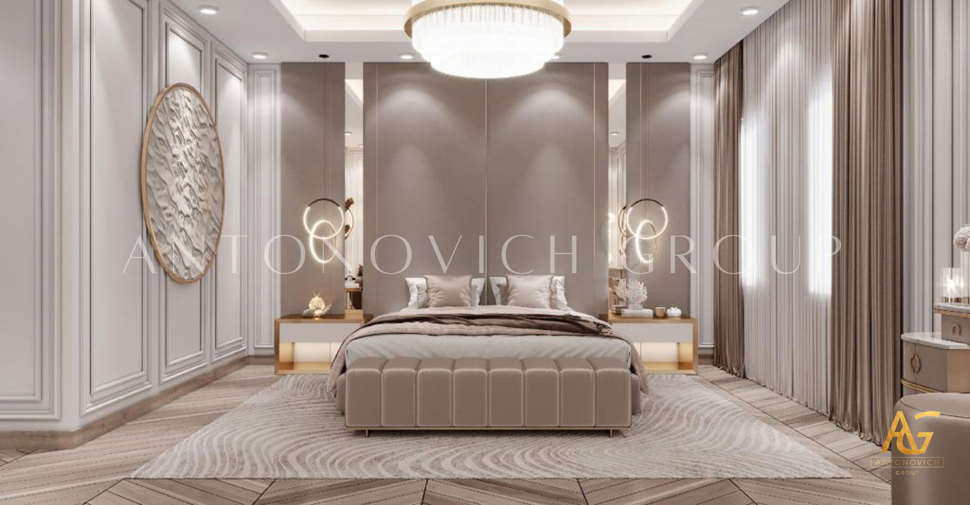 Антонович Групп выполняет комплексную отделку, чтобы удовлетворить все пожелания владельцев: спокойствие в атмосфере и ощущение роскоши в каждой детали. Предоставляя полный спектр услуг от концепции до реализации, компания обеспечивает строгое качество работ и внимательное сопровождение проекта на всех этапах.