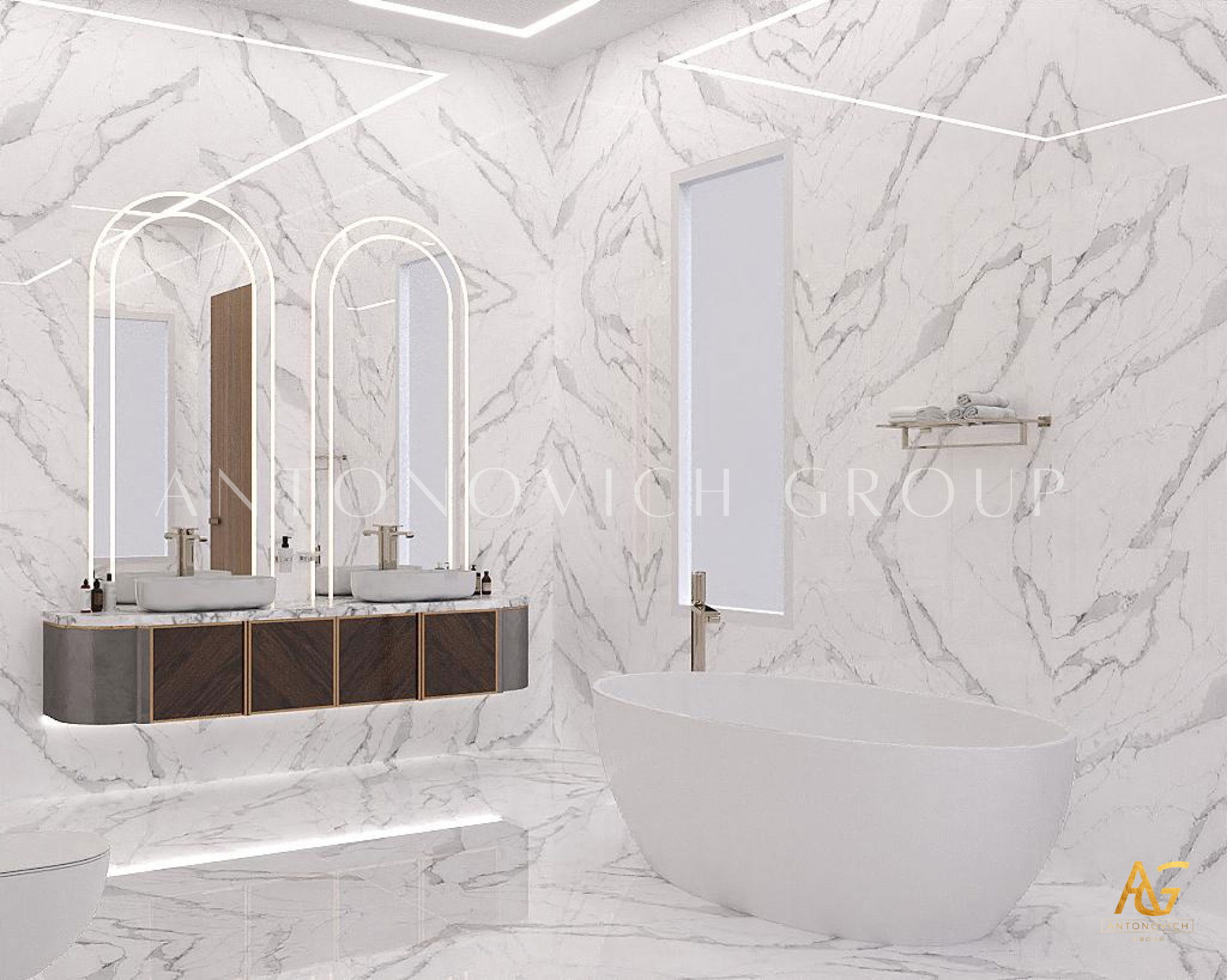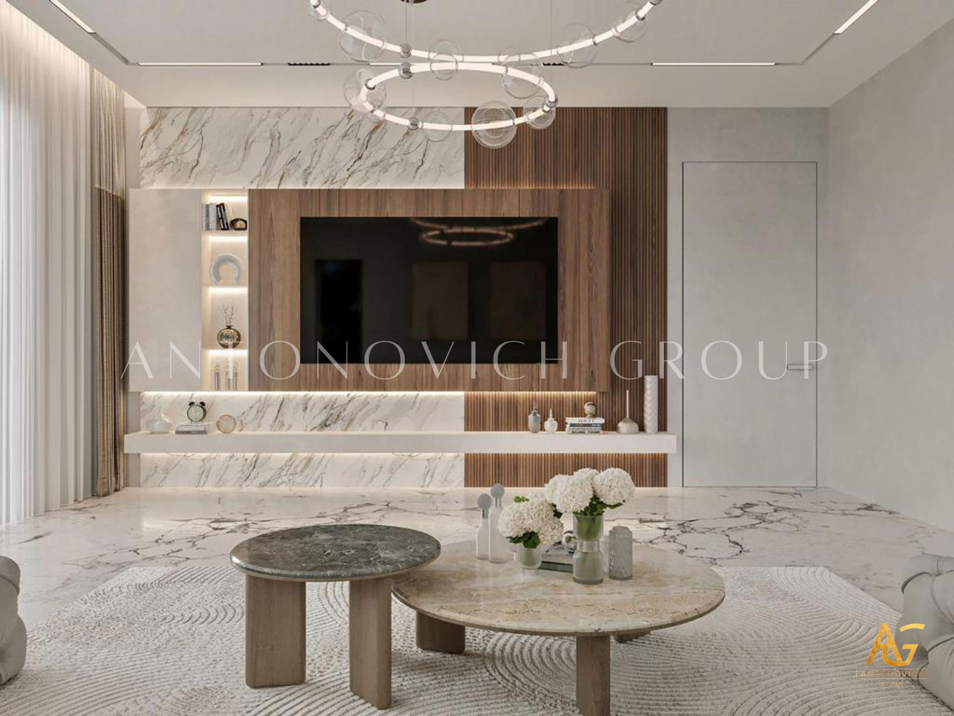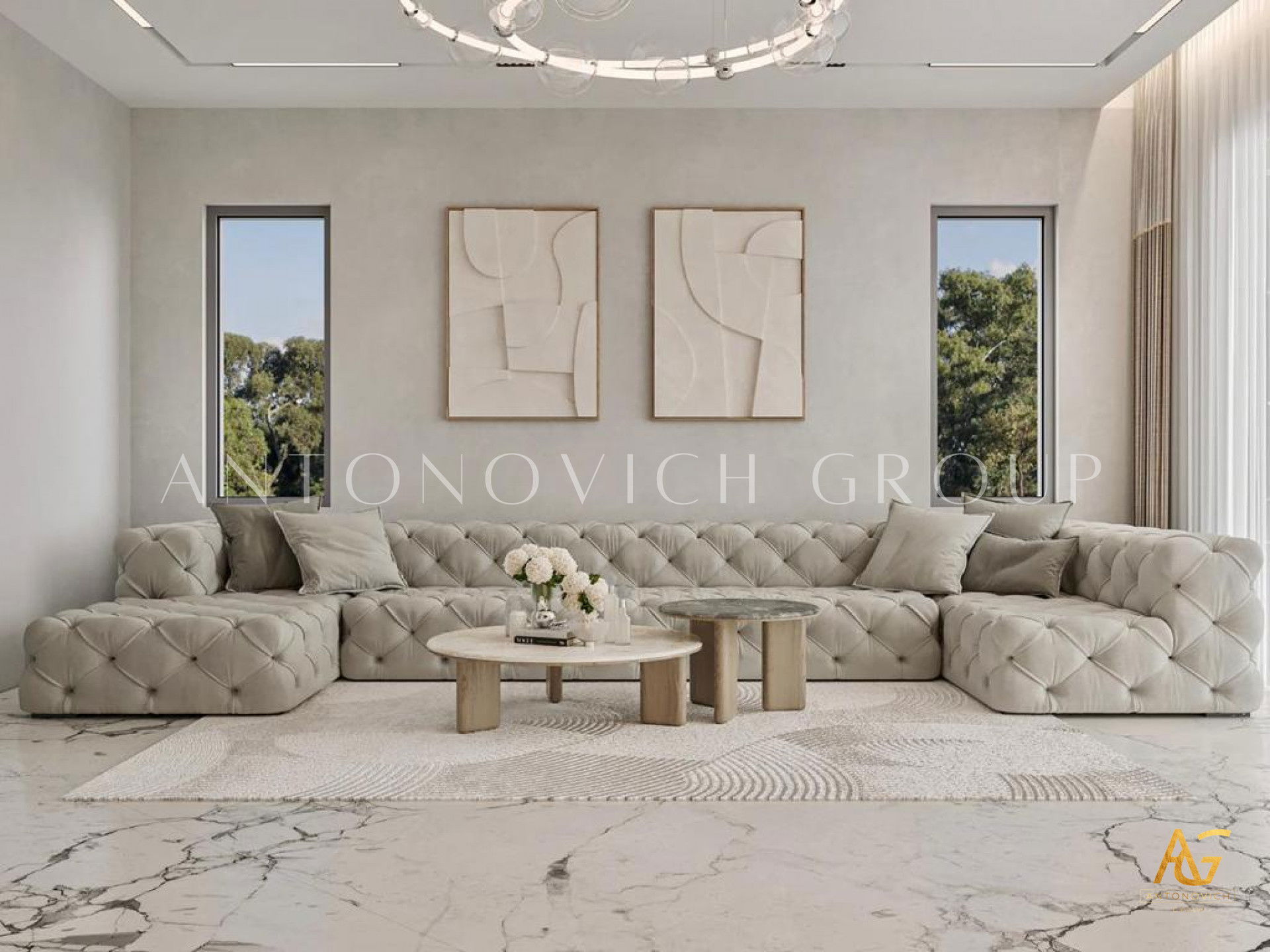 Антонович Групп выполняет комплексную отделку, чтобы удовлетворить все пожелания владельцев: спокойствие в атмосфере и ощущение роскоши в каждой детали. Предоставляя полный спектр услуг от концепции до реализации, компания обеспечивает строгое качество работ и внимательное сопровождение проекта на всех этапах.