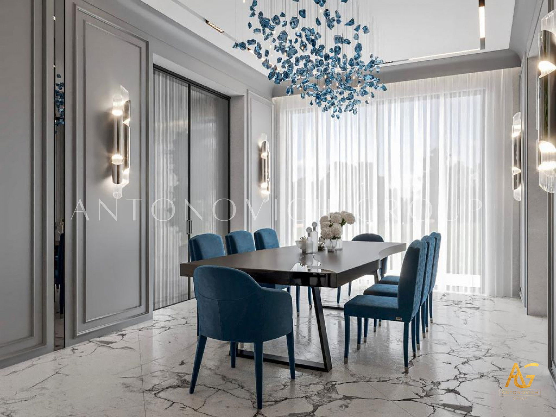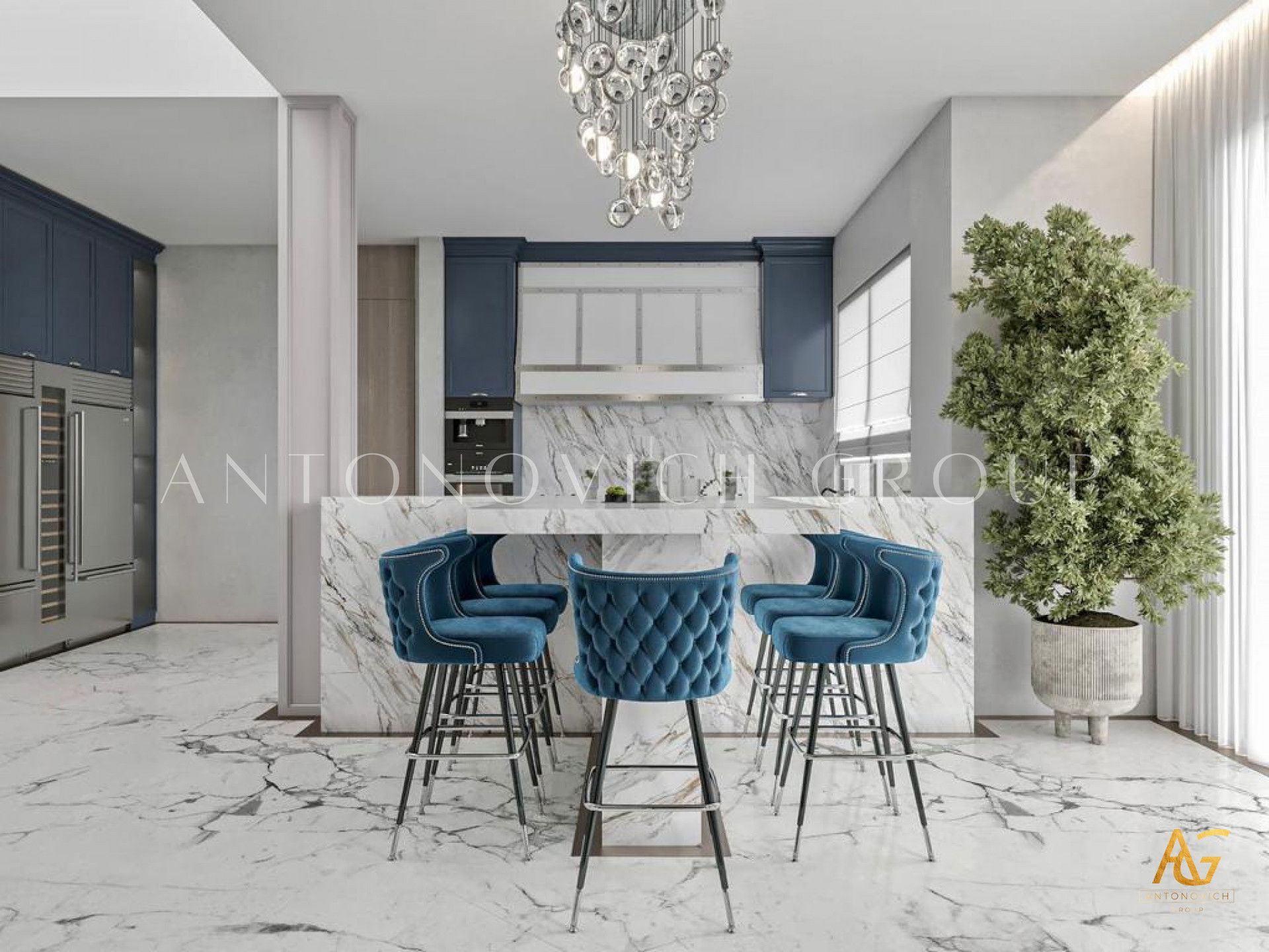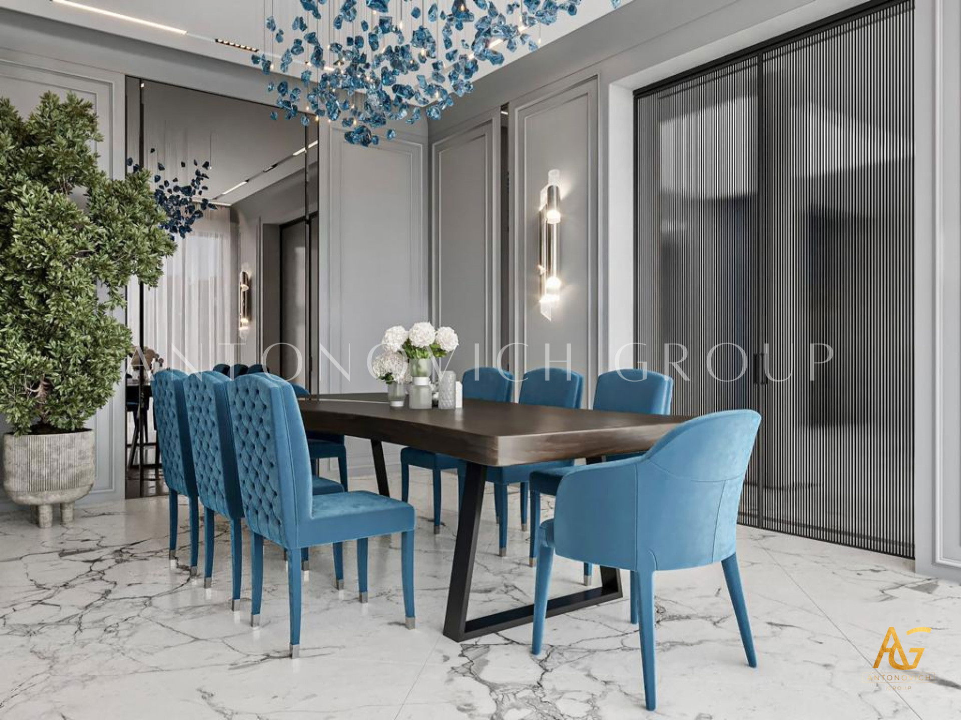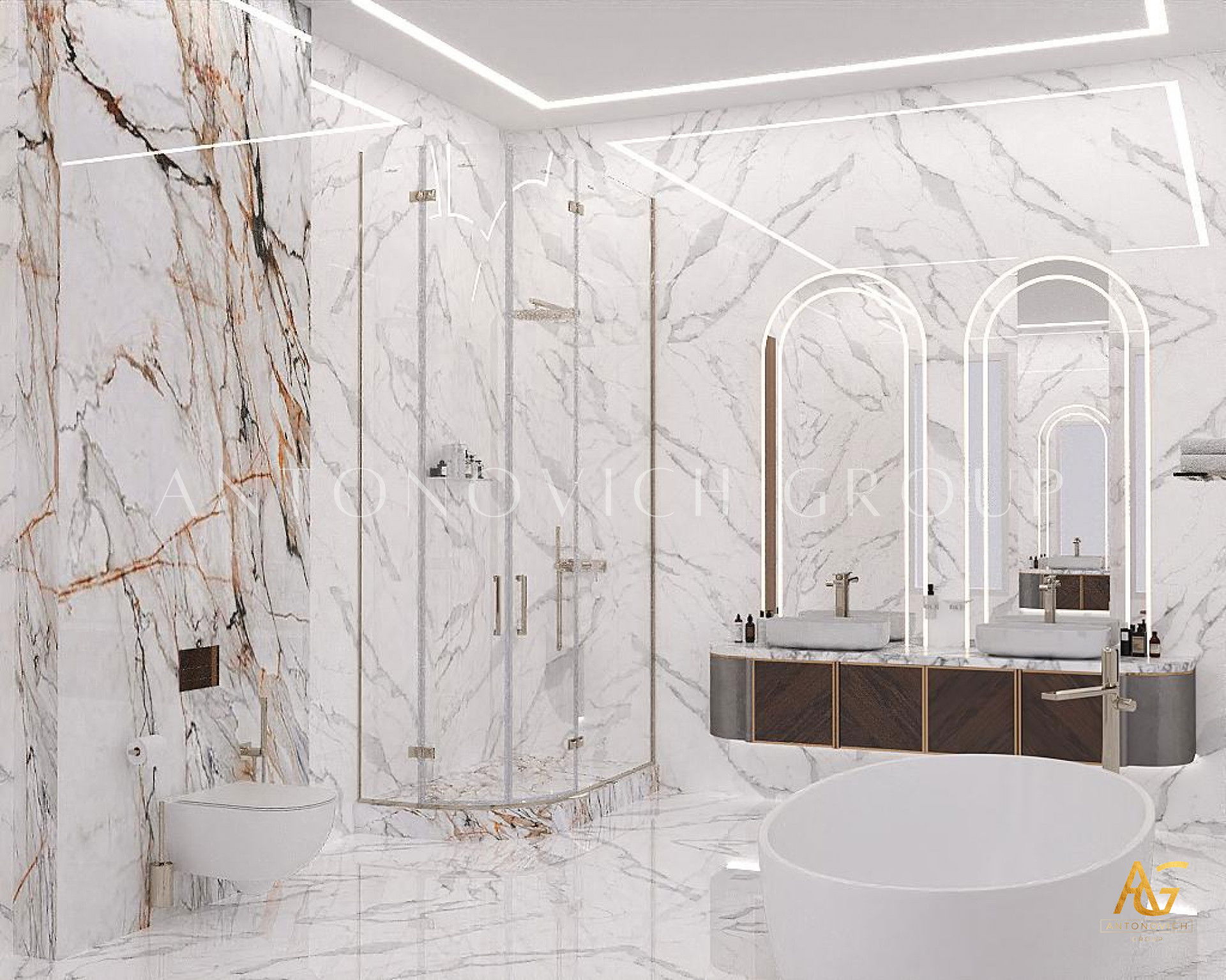 Антонович Групп выполняет комплексную отделку, чтобы удовлетворить все пожелания владельцев: спокойствие в атмосфере и ощущение роскоши в каждой детали. Предоставляя полный спектр услуг от концепции до реализации, компания обеспечивает строгое качество работ и внимательное сопровождение проекта на всех этапах.