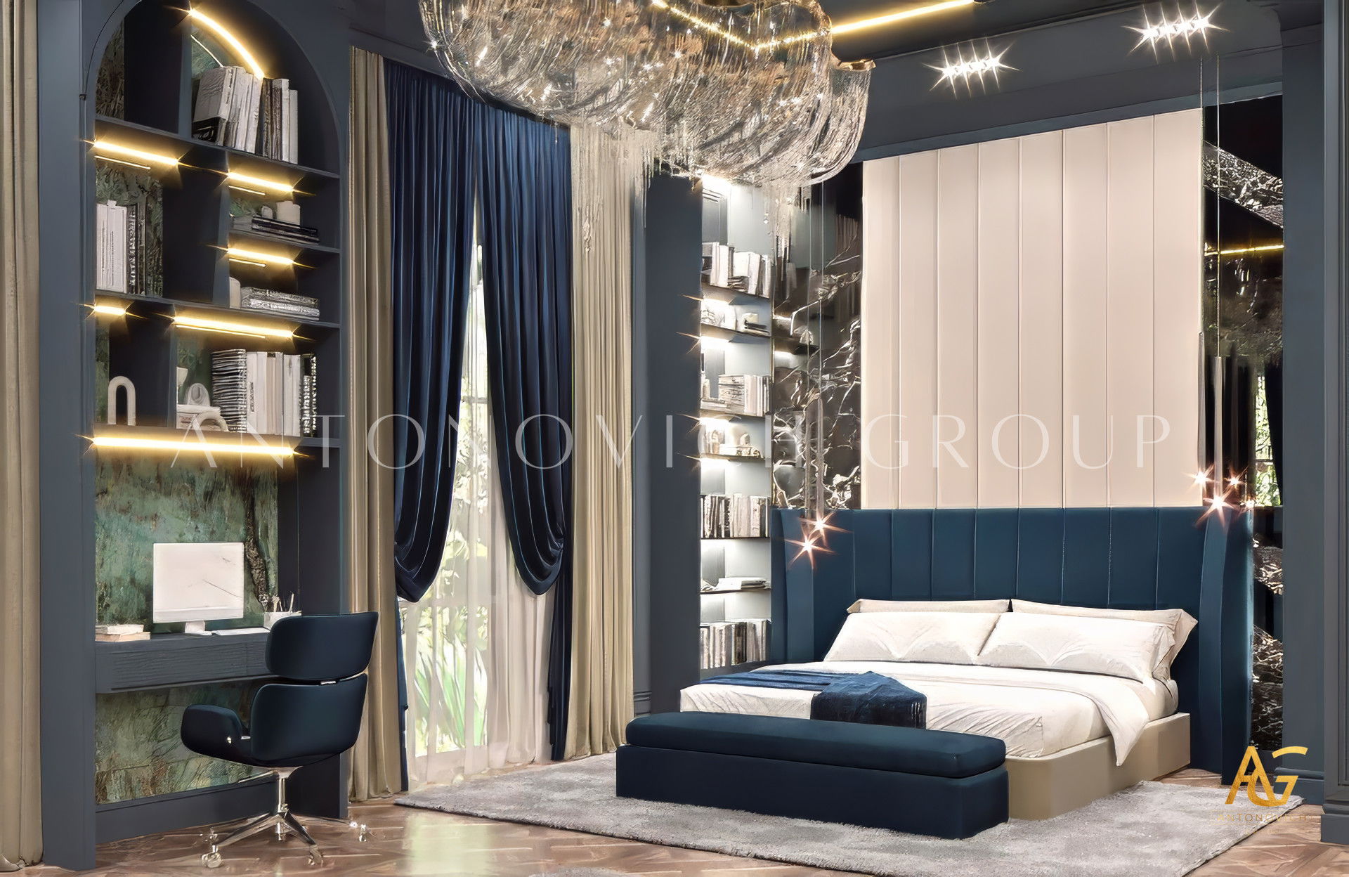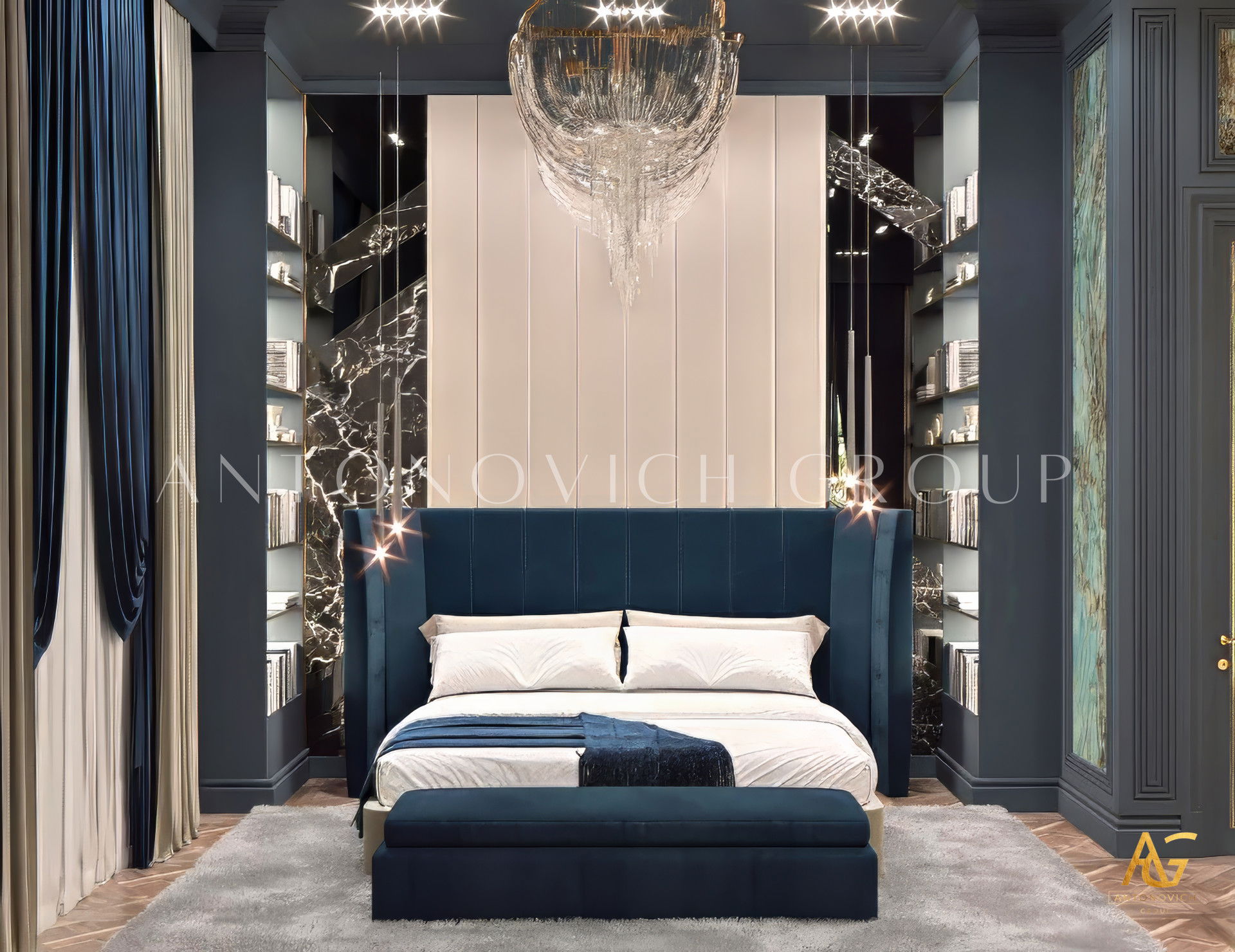 С помощью цвета спальня обретает иную ауру и вид. Тёмные оттенки затемняют пространство, светлые — делают его теплее. В этом дизайне спальни от Антонович Дизайн (Antonovich Design) использовали пастель, чтобы создать чарующую и мягкую атмосферу. Пастель легко адаптируется и гармонирует с любым интерьером и фурнитурой. Она идеально подходит для элегантных и женственных спален с утончённым дизайном. Наши специалисты оформили эту спальню.