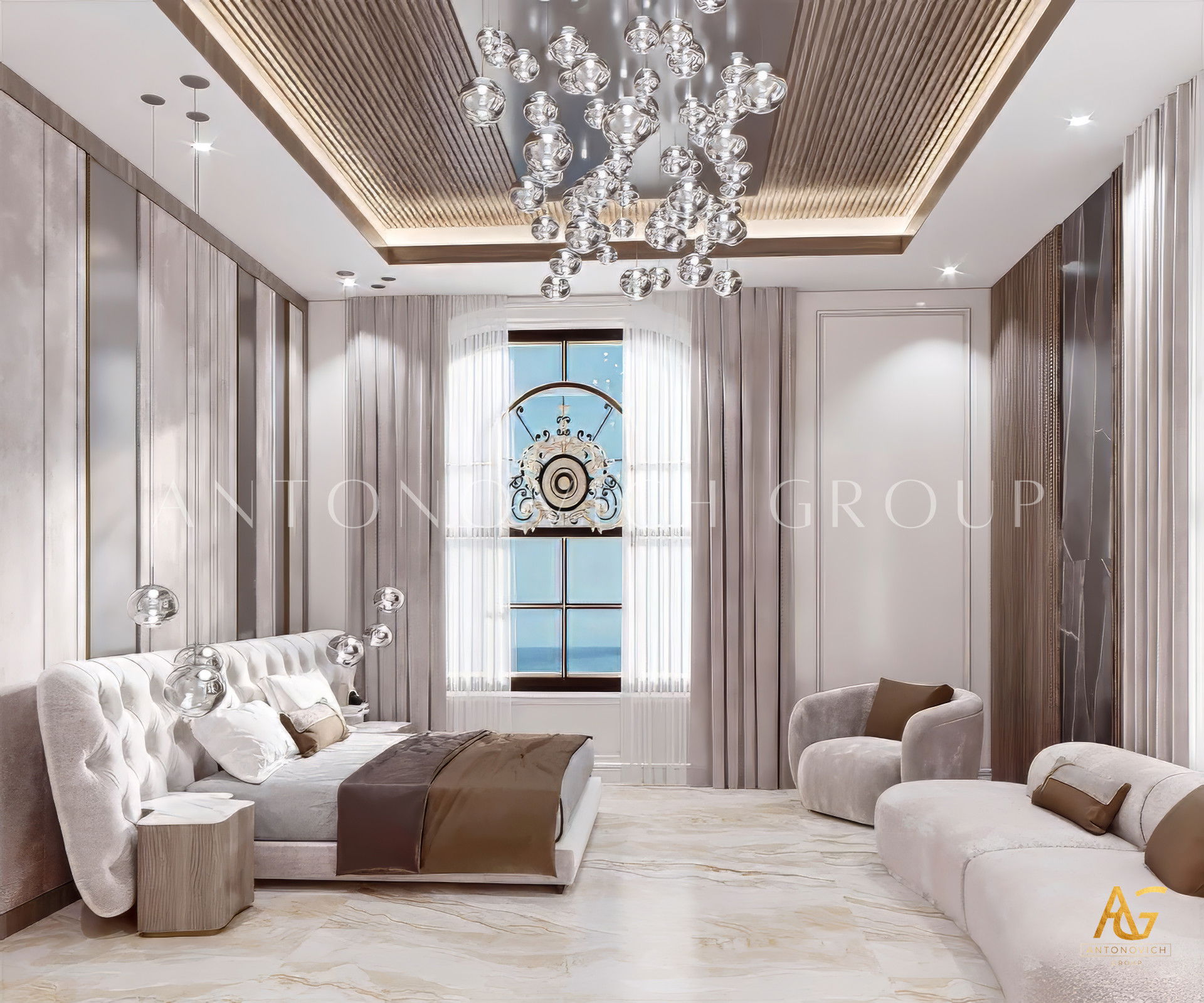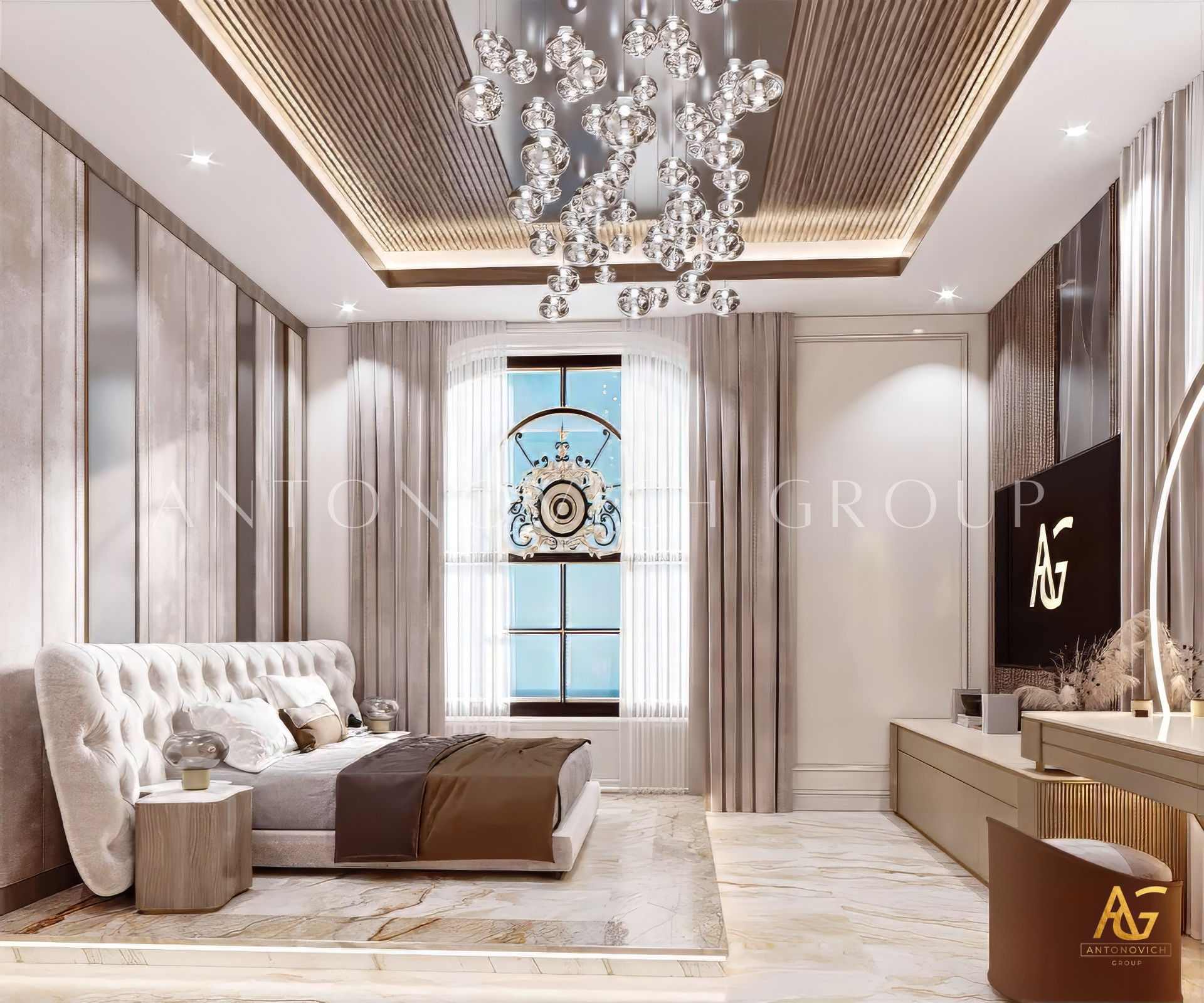 Роскошная кровать выделяется в этом элегантном дизайне интерьера комнаты. Это идеальное помещение для элиты: просторное, с огромной кроватью. Для нас роскошь — это правильное исполнение. Мы разработаем стратегию, исходя из ваших требований, и будем работать с вами, чтобы создать желанный дизайн интерьера в Лос‑Анджелесе. Мы можем спроектировать лучший роскошный дизайн интерьера для вас и вашей семьи, будь то небольшая комната или большая. Мы также включаем дизайн роскошной спальни в ЛА и предлагаем оформление маленькой и большой комнаты.
