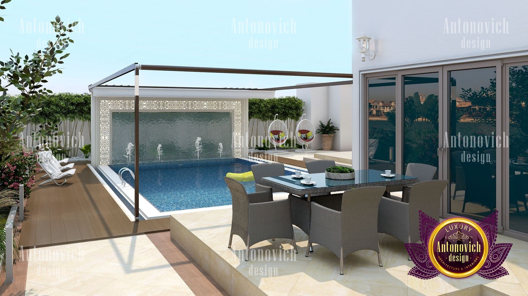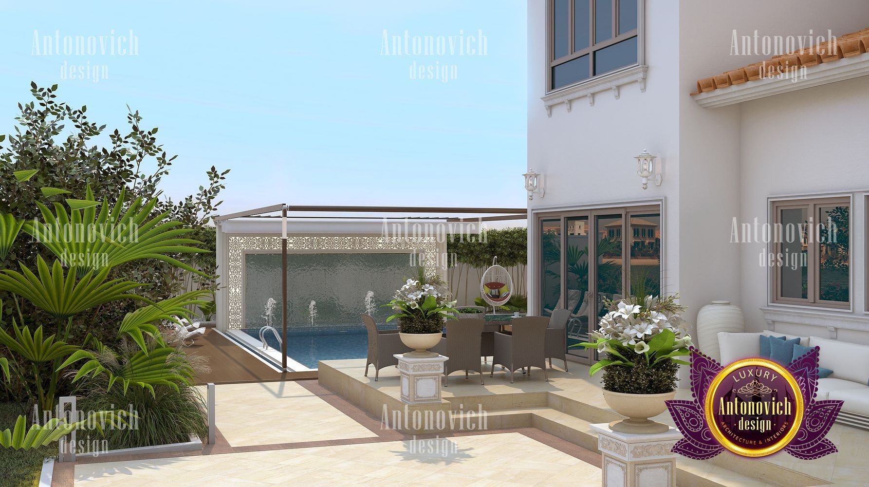 Лучшие решения, разработанные студией Dubai Luxury Антонович Дизайн (Antonovich Design), прежде всего основаны на мечтах и пожеланиях наших клиентов. Архитектурное проектирование виллы стало воплощением мечты владельцев о собственном роскошном доме. Классический дизайн виллы подчёркивает респектабельность этого дома. Именно этот стиль остаётся на вершине популярности. Экстерьер в классическом стиле — это вечный праздник жизни. Экстерьер виллы получился лёгким и великолепным.