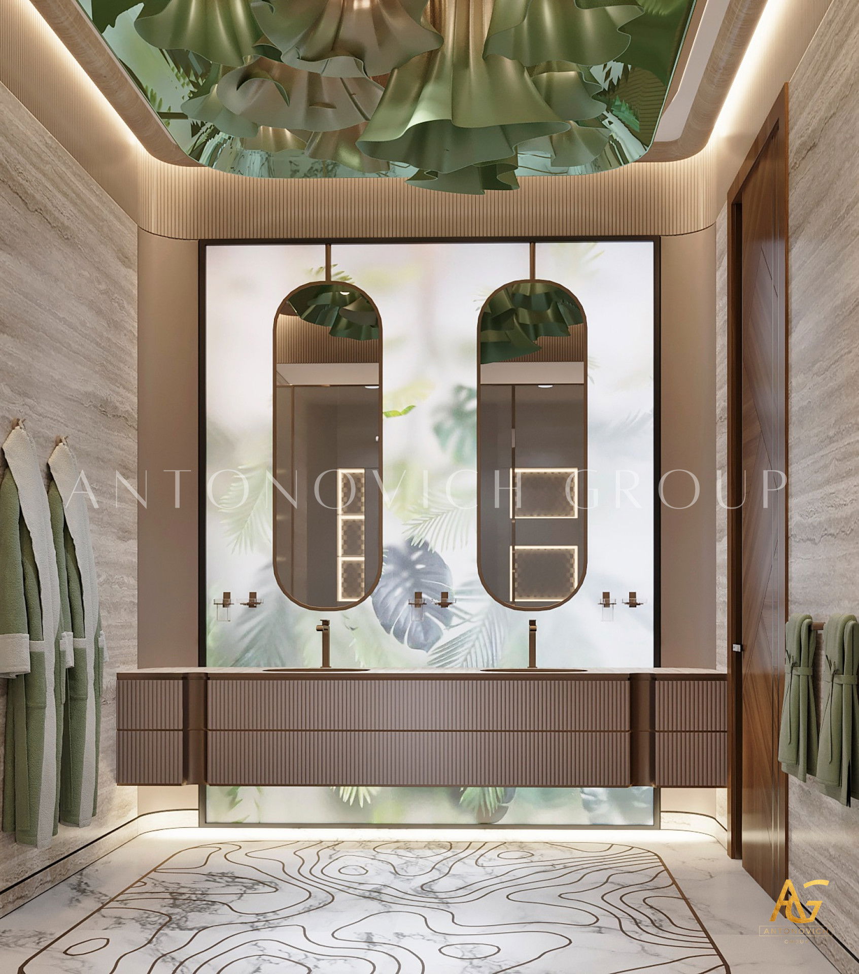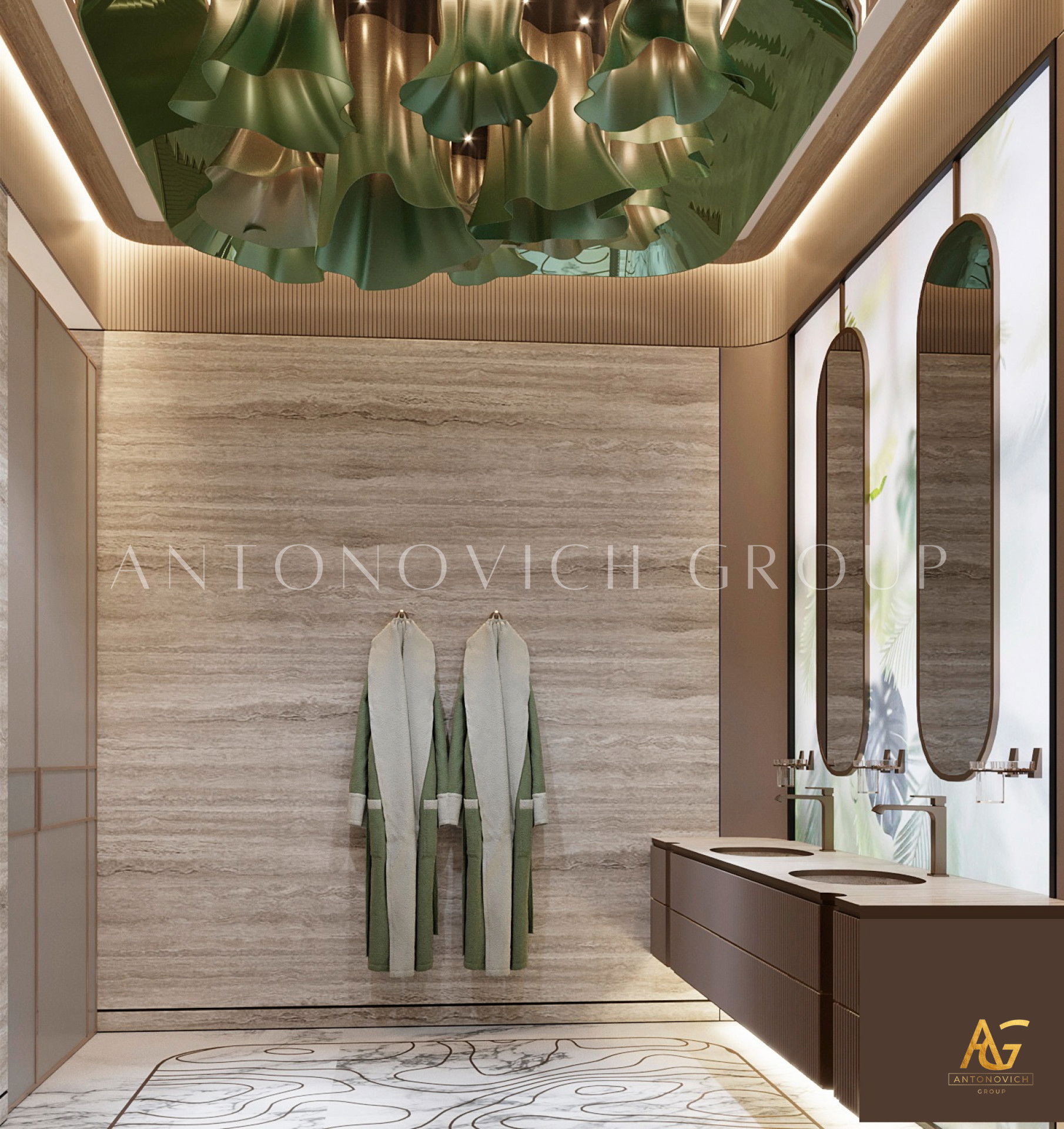 Благодаря репутации в области премиальных интерьеров, Антонович Групп — надежный партнер для реализации вашего дизайн-проекта. Наши специалисты создают проект ванной комнаты люкс, сочетая мировые материалы, мастерство и современные технологии. От идеи до реализации — мы превращаем ванную в изысканное и функциональное пространство, отражающее современную роскошь.