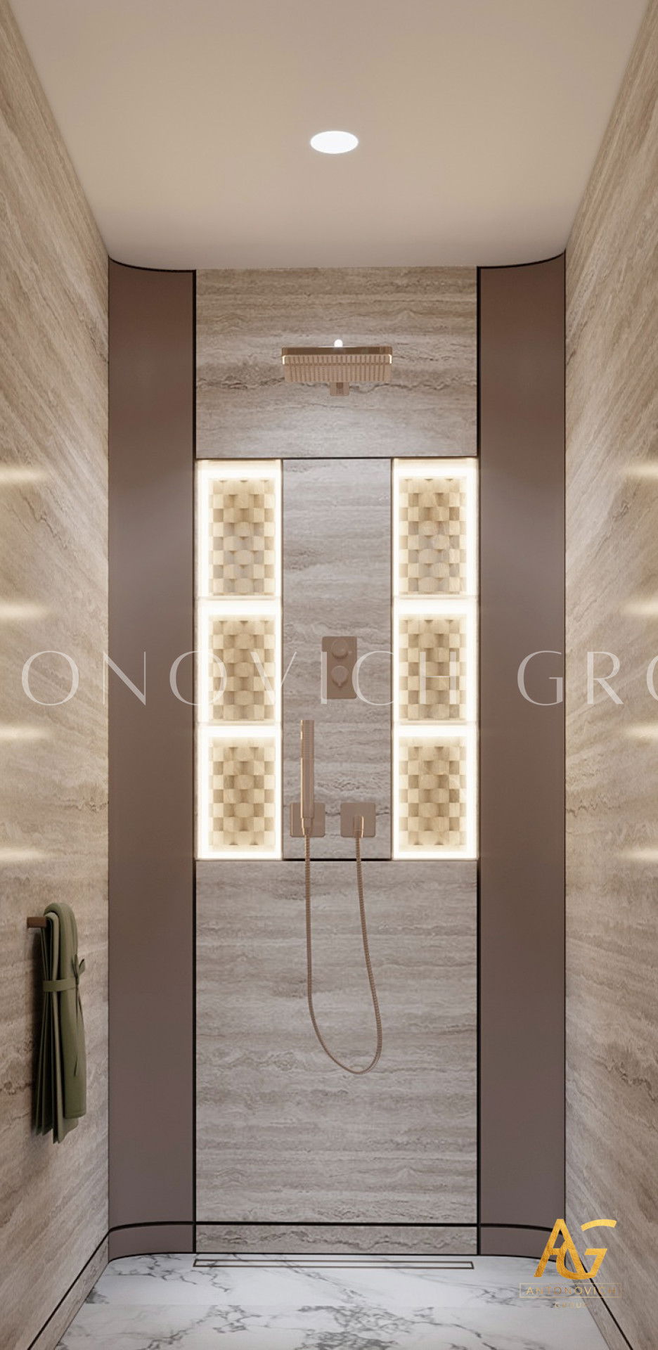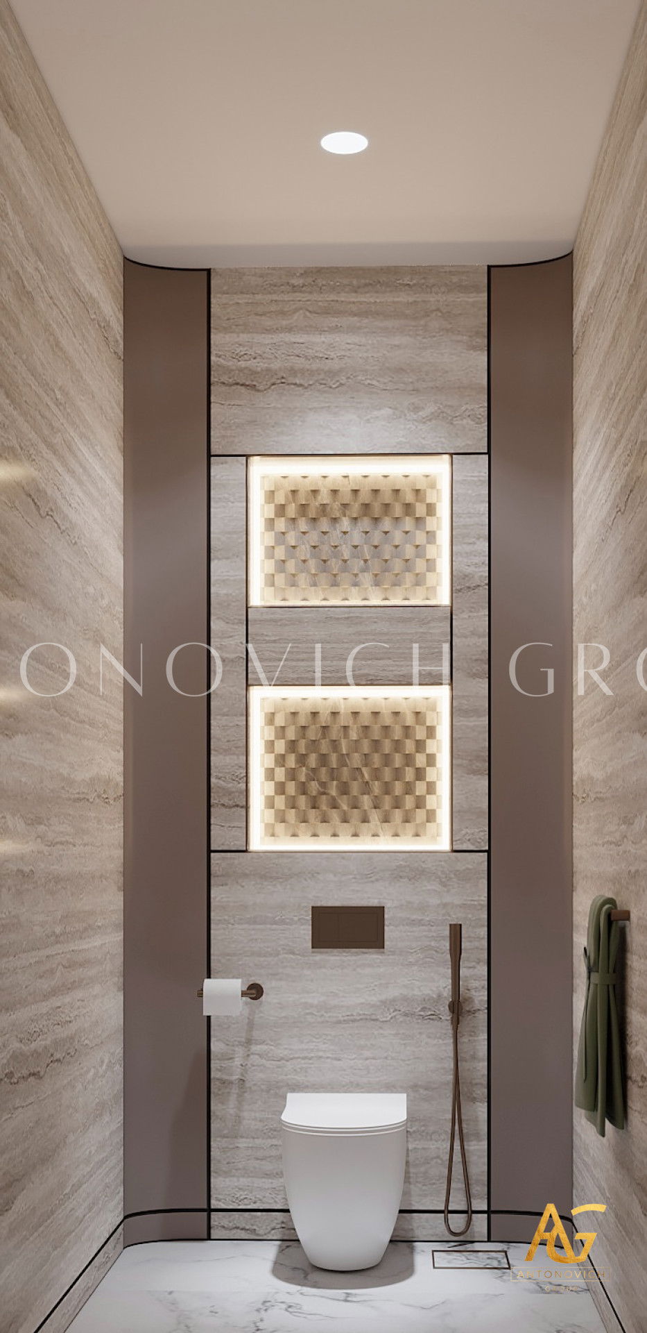 Современный роскошный дизайн интерьера и отделка ванной комнаты от Антонович Групп (Antonovich Group)