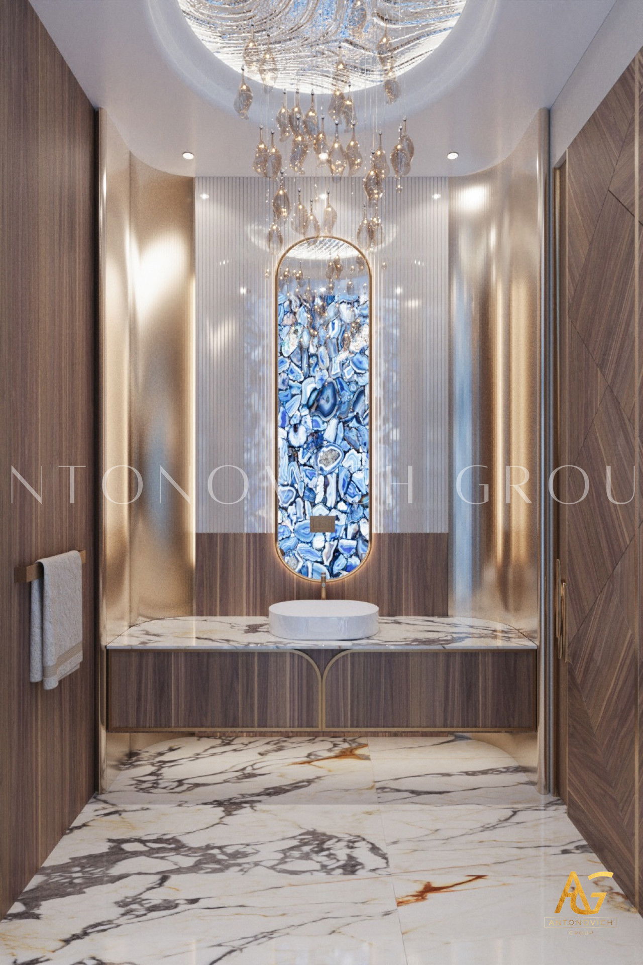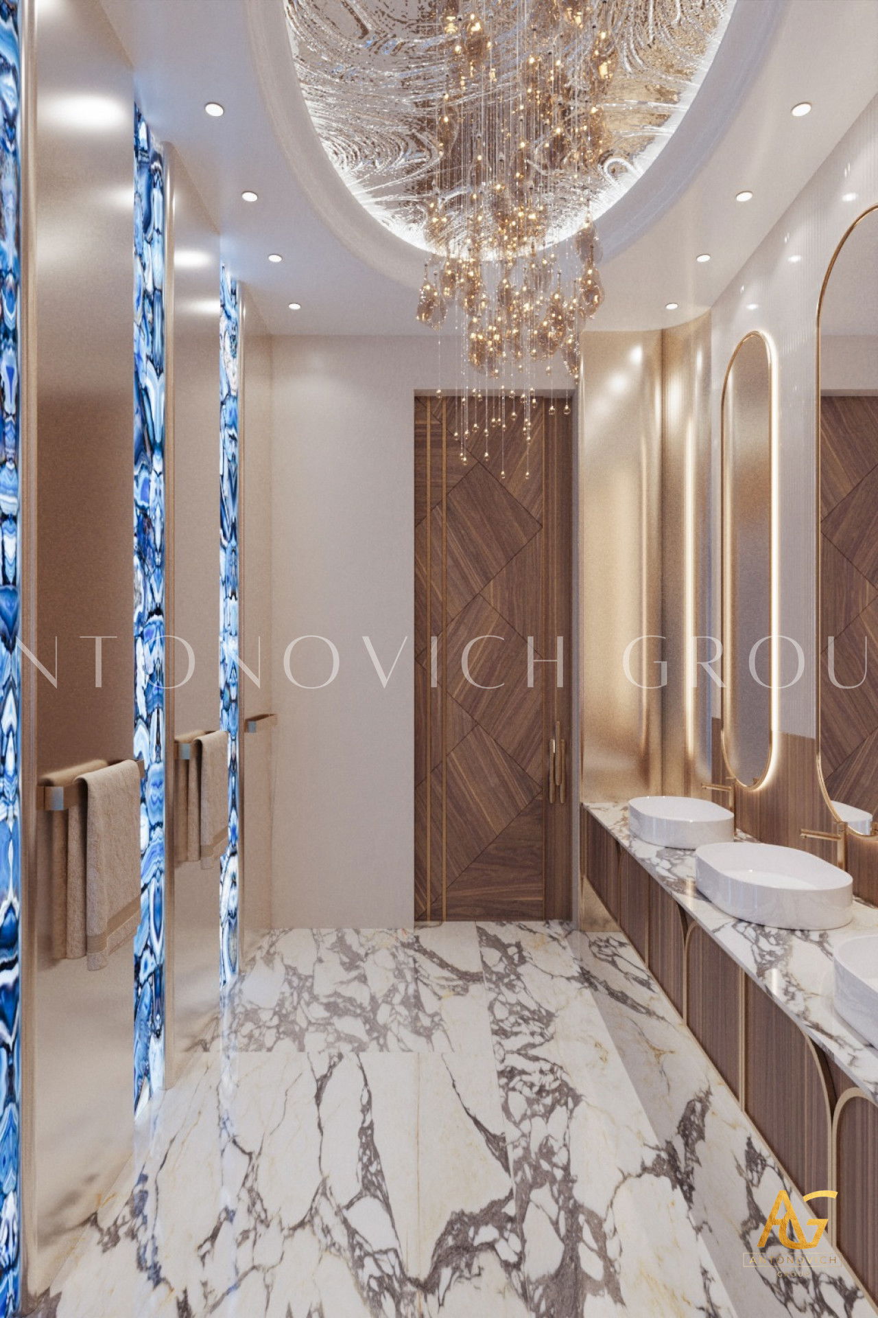 Антонович Дизайн (Antonovich Design) приглашает вас в мир несравненной роскоши, где обычное уступает место изысканности. В этой статье мы рассматриваем искусство роскошного дизайна ванной комнаты и фит-аут ванной комнаты, с особым акцентом на эффектную синюю ониксовую стену. Каждый продуманный штрих раскрывает мастерство и внимание к деталям.