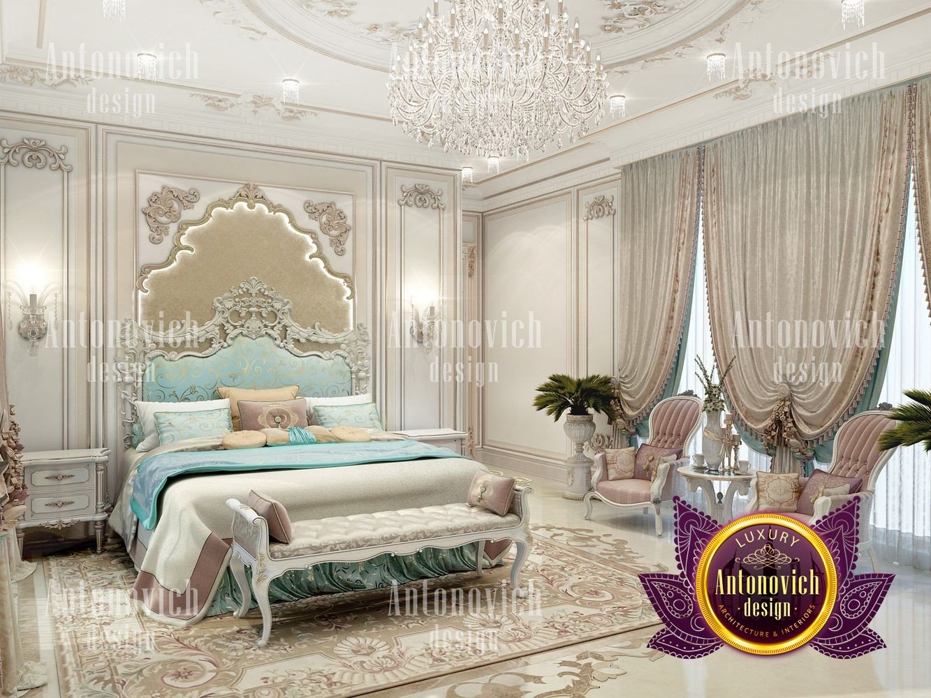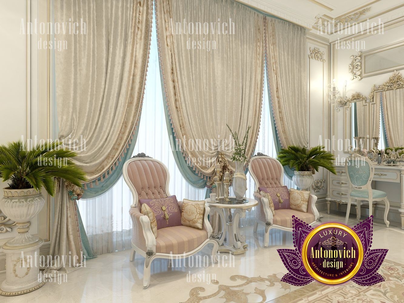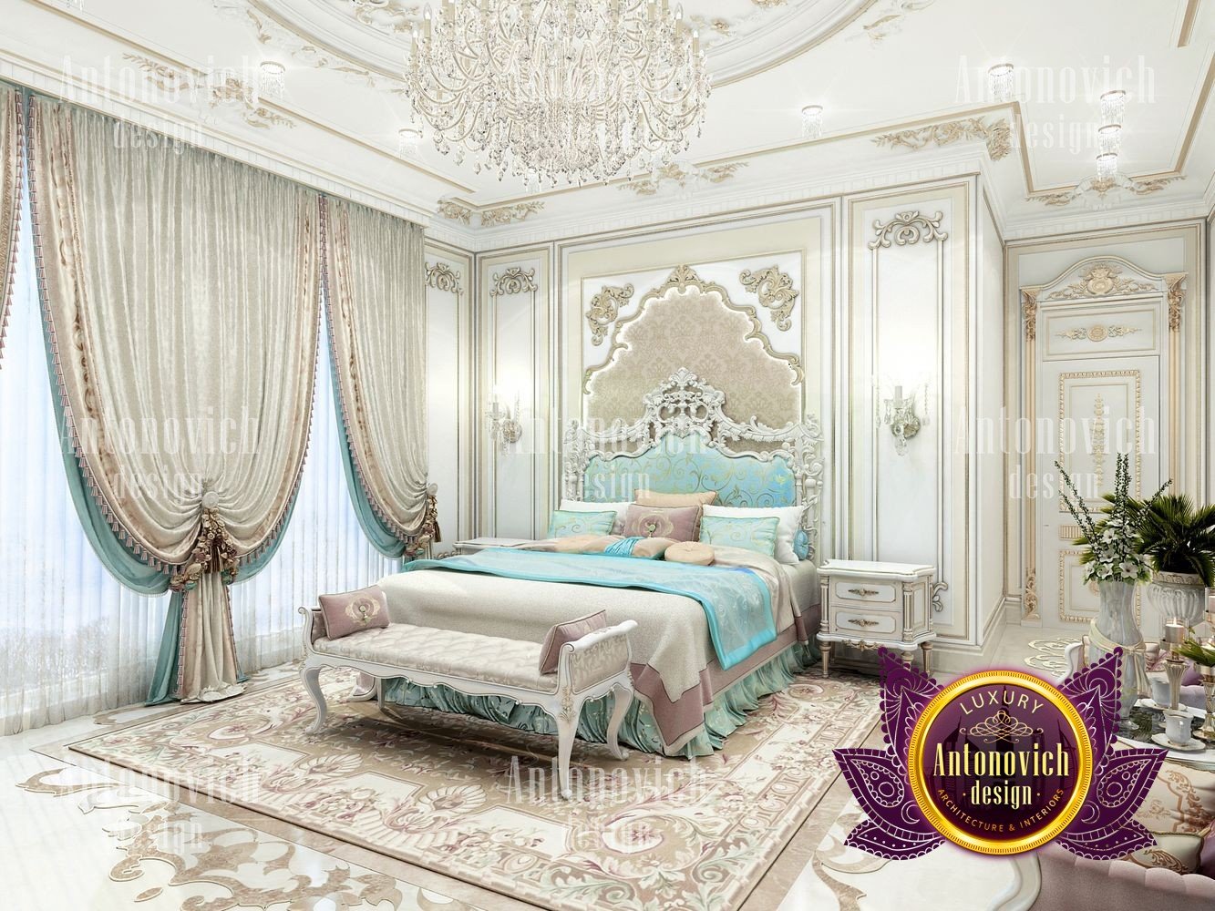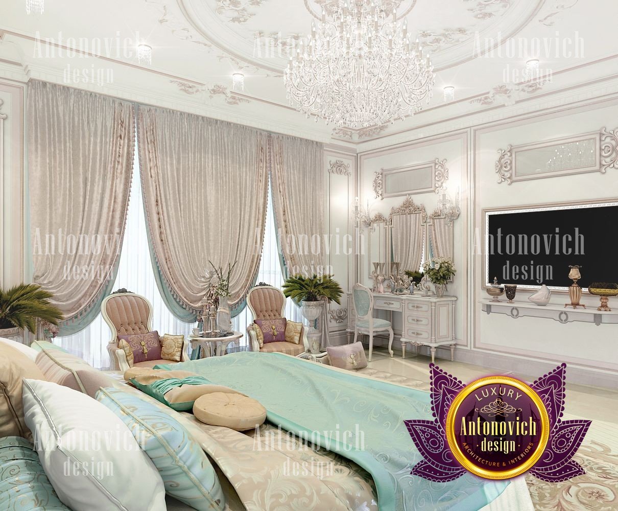 Разрабатывая интерьер элитной квартиры в классическом стиле, дизайнеры Антонович Дизайн (Antonovich Design) учли все нюансы и детали, чтобы каждая комната стала гармоничным продолжением общей концепции. Благородный и аристократический классический стиль позволил создать на кухне очарование дворцовой роскоши. Это наглядный пример того, как относительно небольшое пространство можно превратить в роскошное. Медальон с лепным декором элегантно смотрится в оформлении потолка, украшенного красивой люстрой в классическом стиле. Глубокая ниша с мягкой линией подсветки визуально увеличивает высоту потолка и делает интерьер более изящным и лёгким. Шторы сыграли важную роль в оформлении кухни: роскошные ткани серебристо-голубого оттенка с золотым орнаментом собраны в мягкие драпировки. Мягкие подхваты с крупными кистями изящно дополнили композицию, как и белые занавеси. Интерьер излучает торжественное настроение также благодаря небольшой обеденной зоне в центре кухни. Белый прямоугольный стол с тонкой позолотой окружён мягкими стульями с благородной посадкой. Они обиты тканями той же цветовой гаммы, что и шторы. Производители мебели и тканей используют материалы со специальной пропиткой, устойчивые к загрязнениям и не впитывающие запахи. Одна из стен украшена элитными шелковыми обоями перламутрового оттенка. Кухонная мебель с резным декором оснащена современной техникой и новейшими системами хранения. Многие приёмы проекта применимы и к спальне: дизайн интерьера спальни в классическом стиле, роскошный дизайн спальни небольшой площади, интерьер спальни с лепниной и люстрой. Ткани и отделка подходят для текстиль для спальни серебристо-голубого оттенка и проекты маленьких роскошных спален. Для организации вещей используются современные системы хранения в спальне. Если интересуют планировки, обратите внимание на планировка четырехкомнатного бунгало и планировка дома с четырьмя спальнями. Также в материале представлены примеры элитный дизайн квартиры в классике, дизайн кухни в классическом стиле и интерьер кухни с обеденной зоной, кухня с нишей и подсветкой