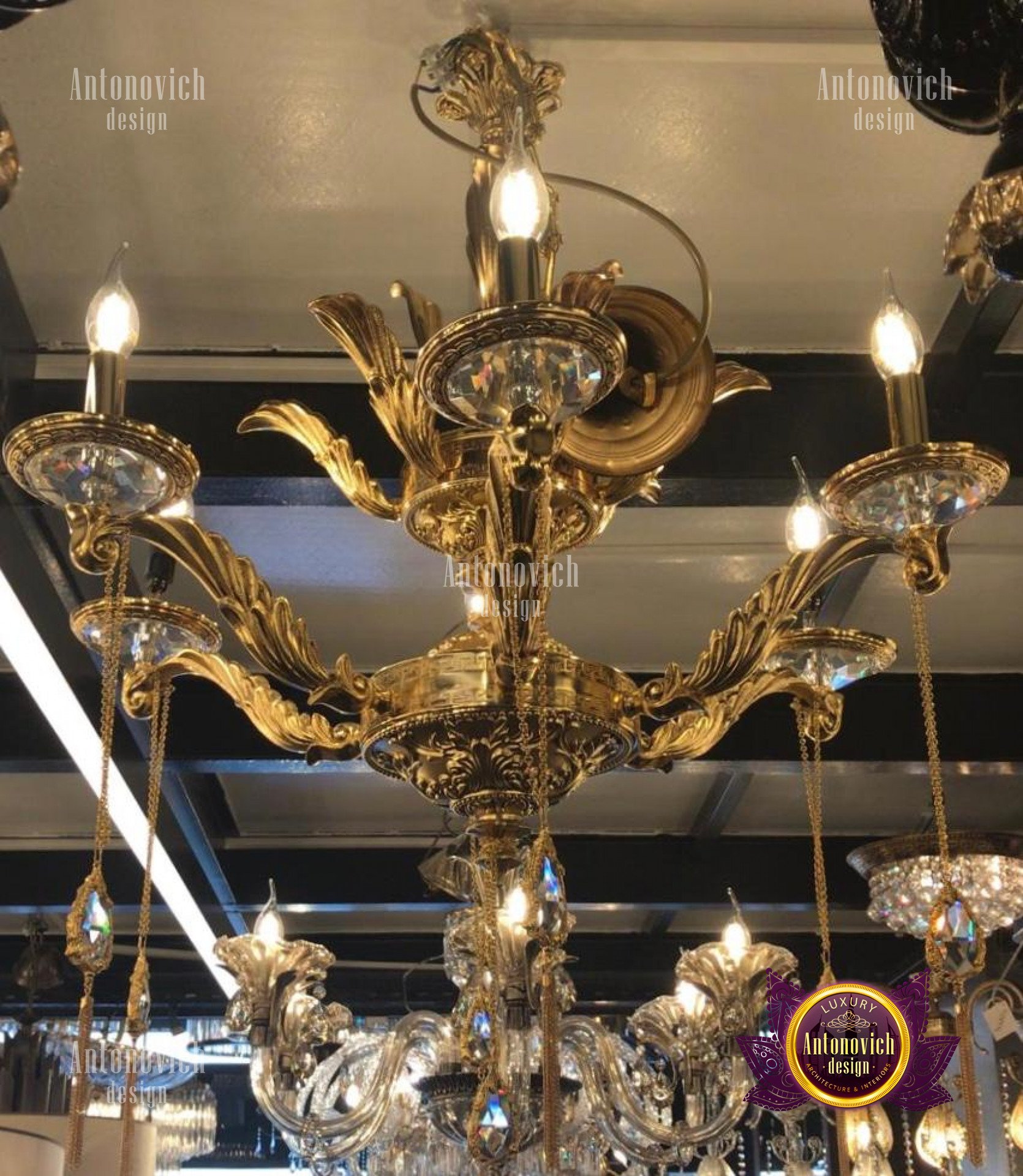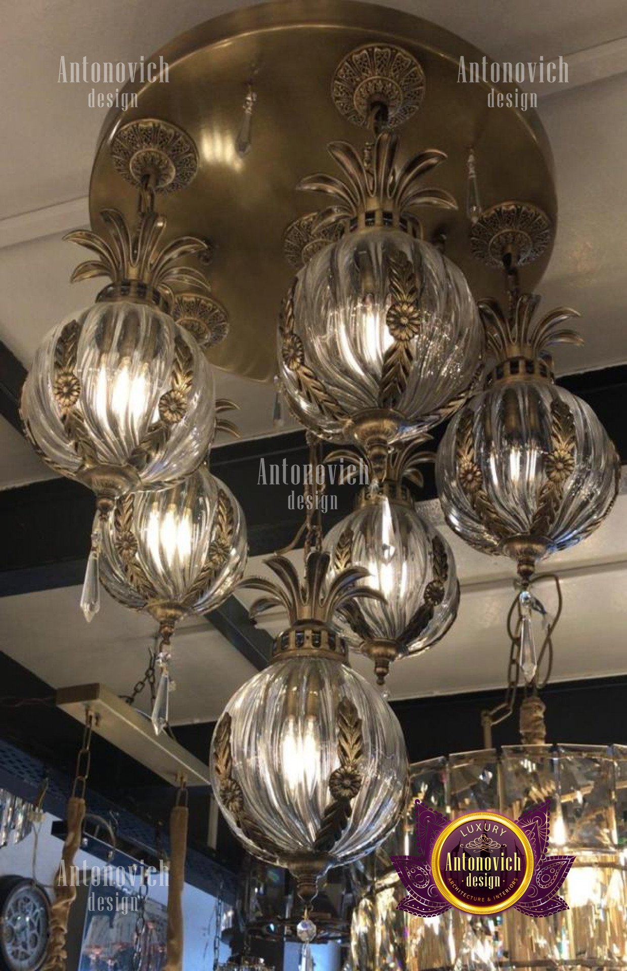 Коллекция включает ретро люстры из латуни и бронзы для исторических интерьеров и изящные подвесные люстры для высокого потолка, адаптированные по длине и массе крепления.